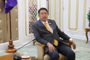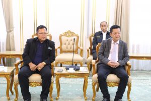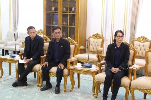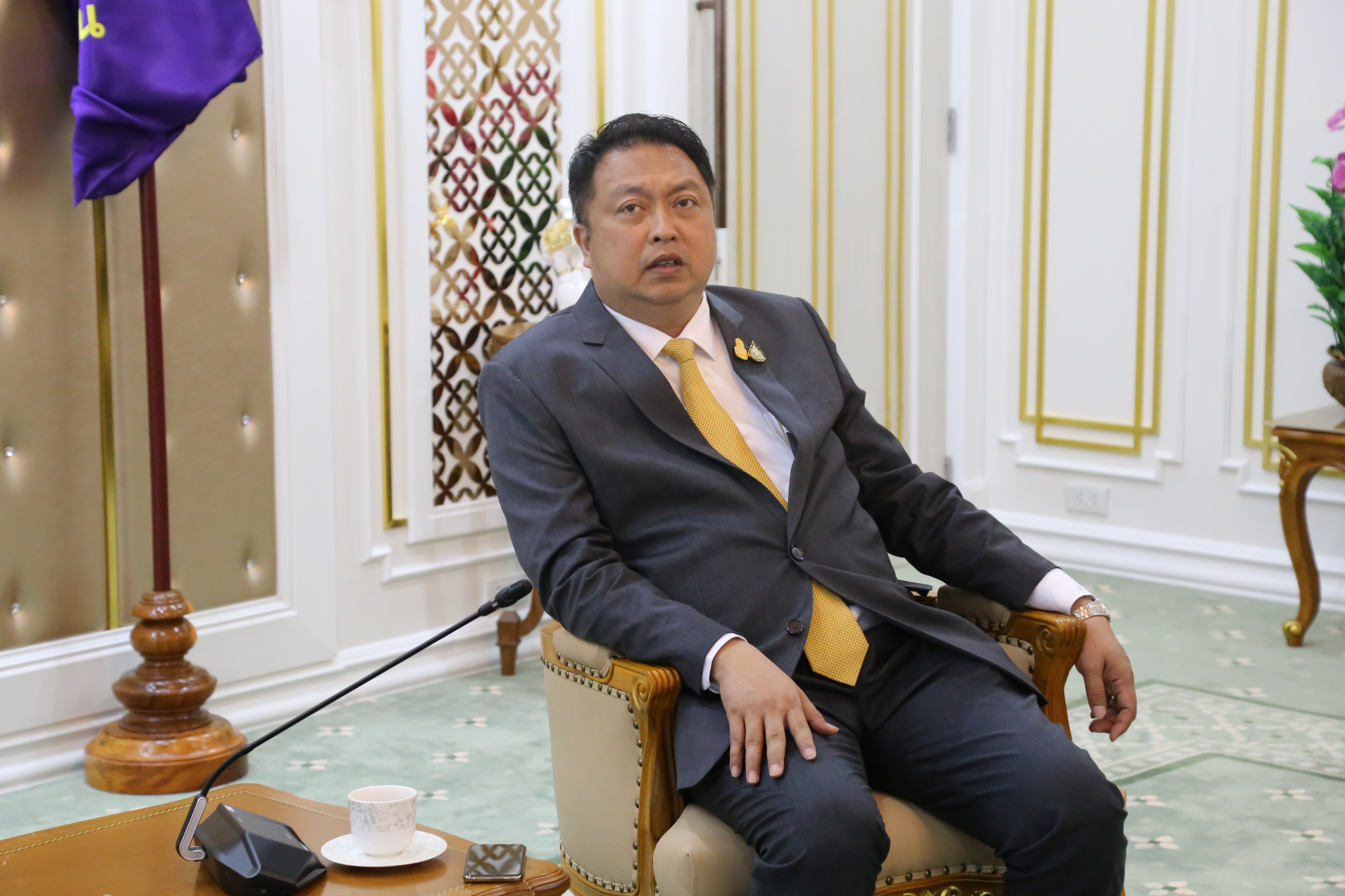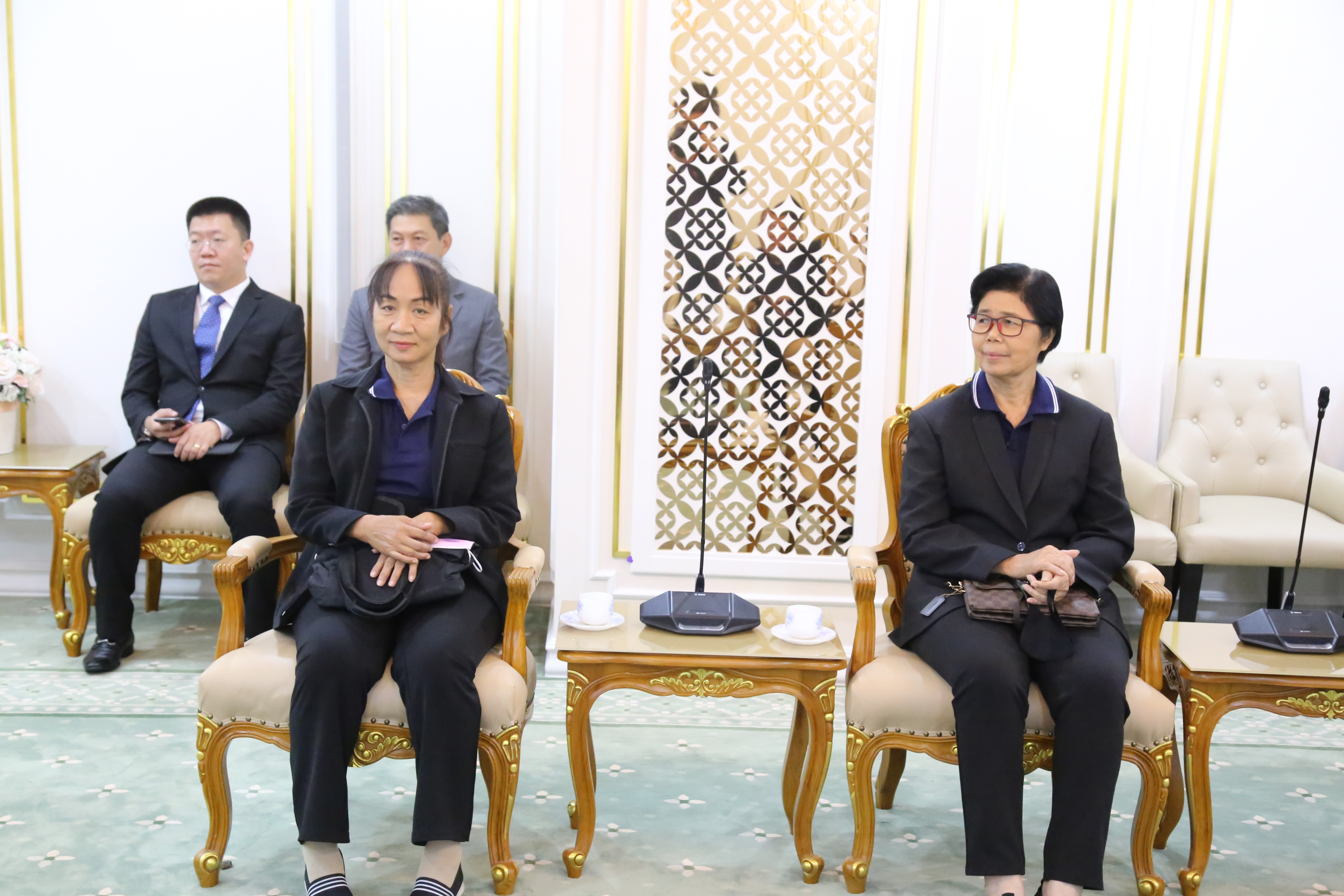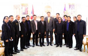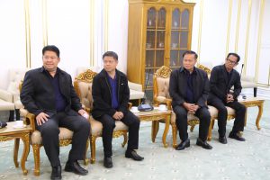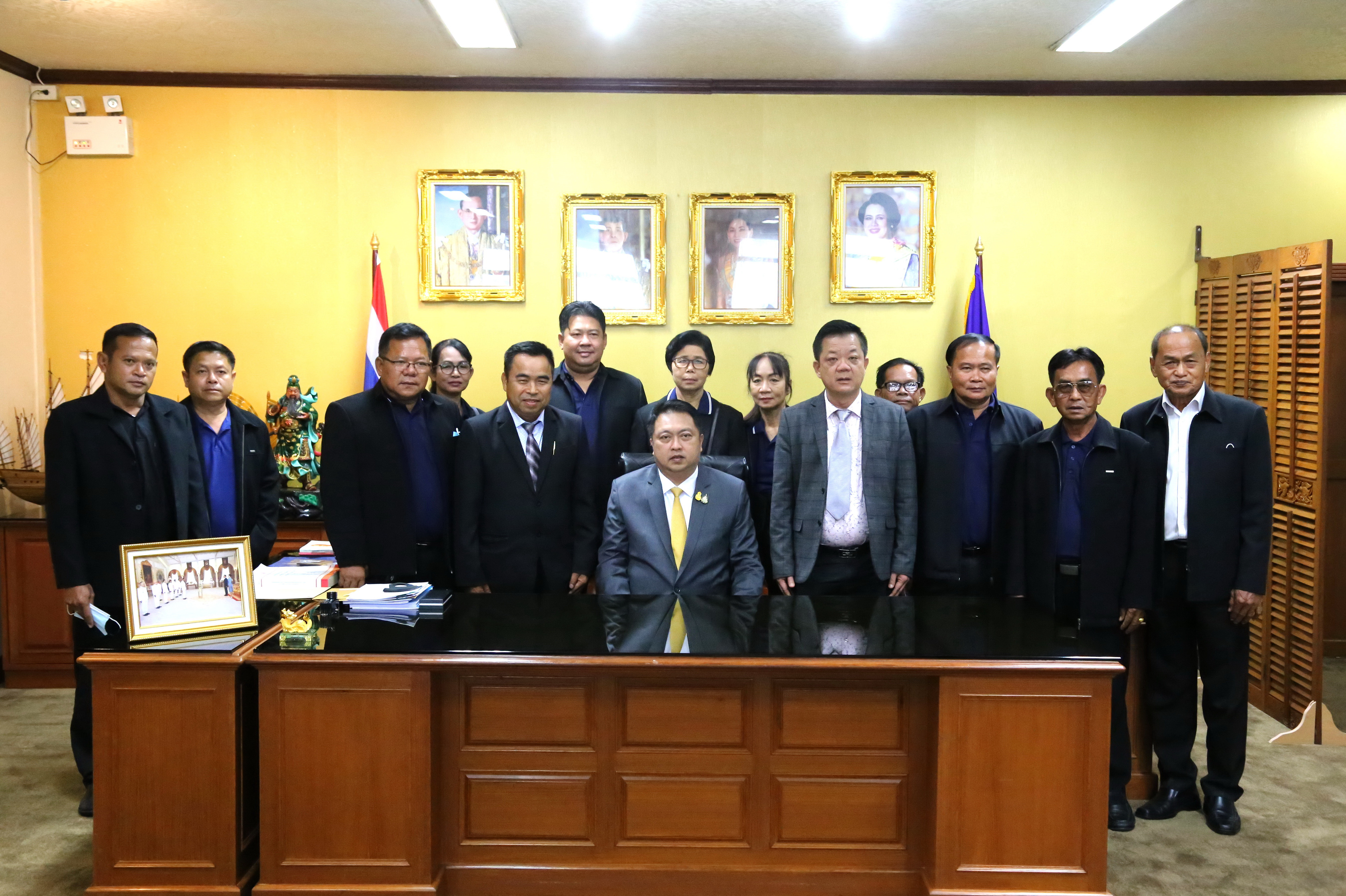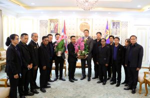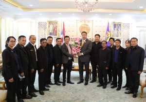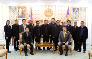 On September 11, 2020, at 11.30 hours, Labour Minister Mr. Suchart Chomklin welcomed the Chairman of Nong Hiang Subdistrict Administrative Organization Mr. Mongkon Niyom, and the committee met to congratulate him on the occasion of taking his position as Labour Minister and to discuss labour issues. The meeting took place at the Jatumongkol Room, 6th floor, Ministry of Labour.