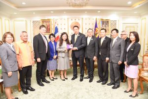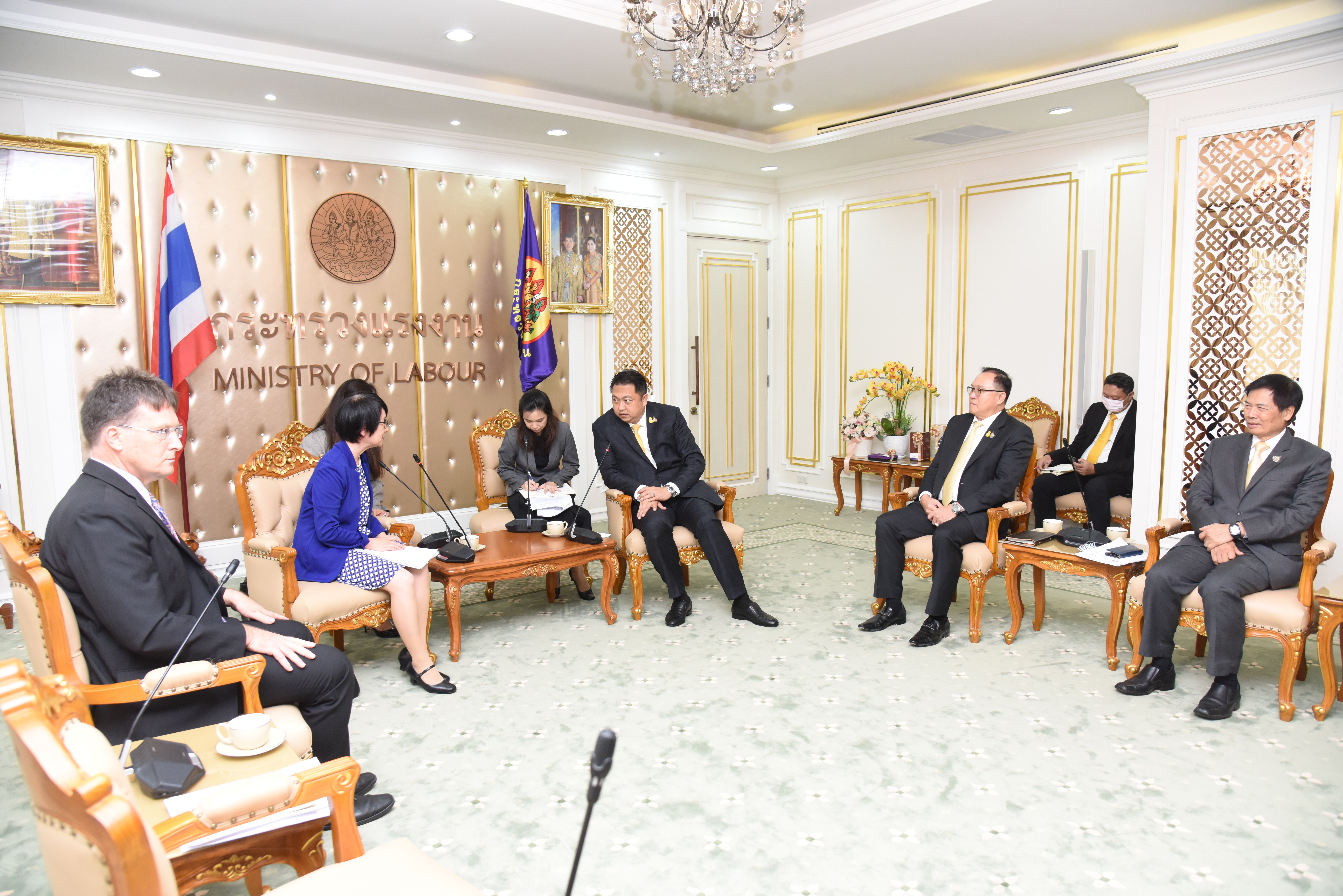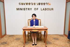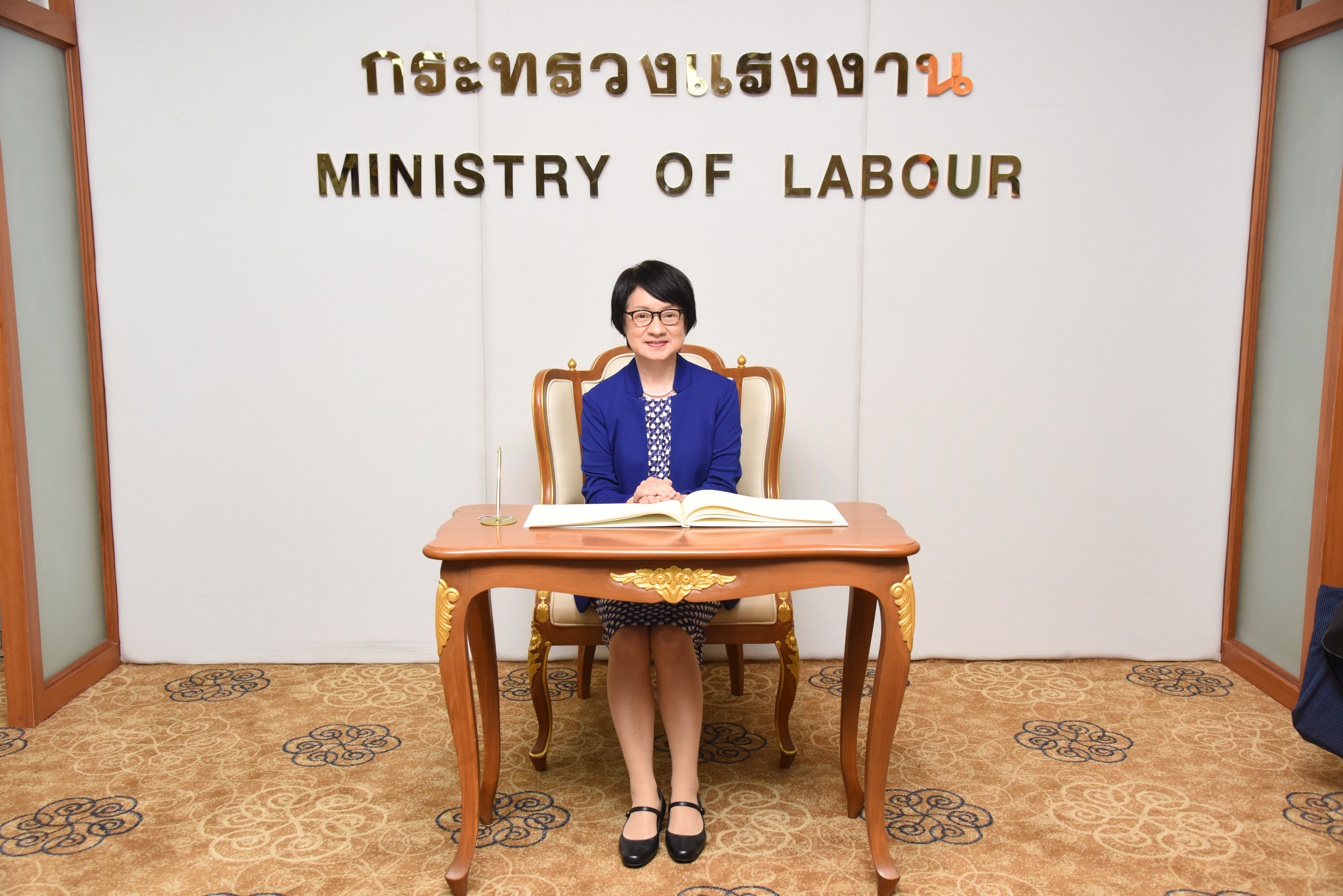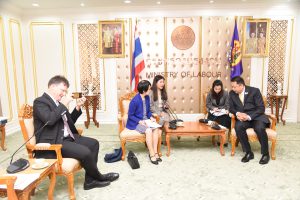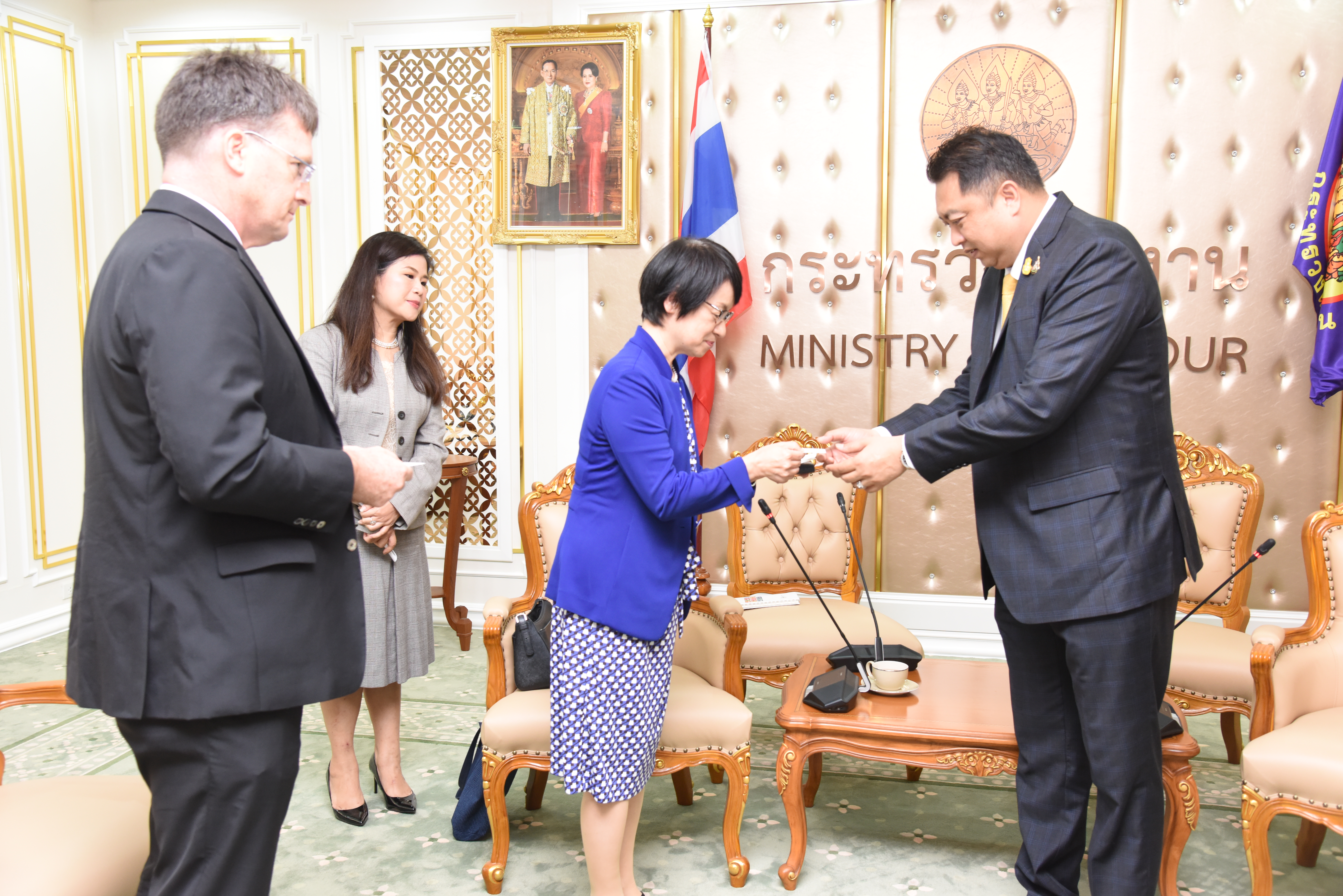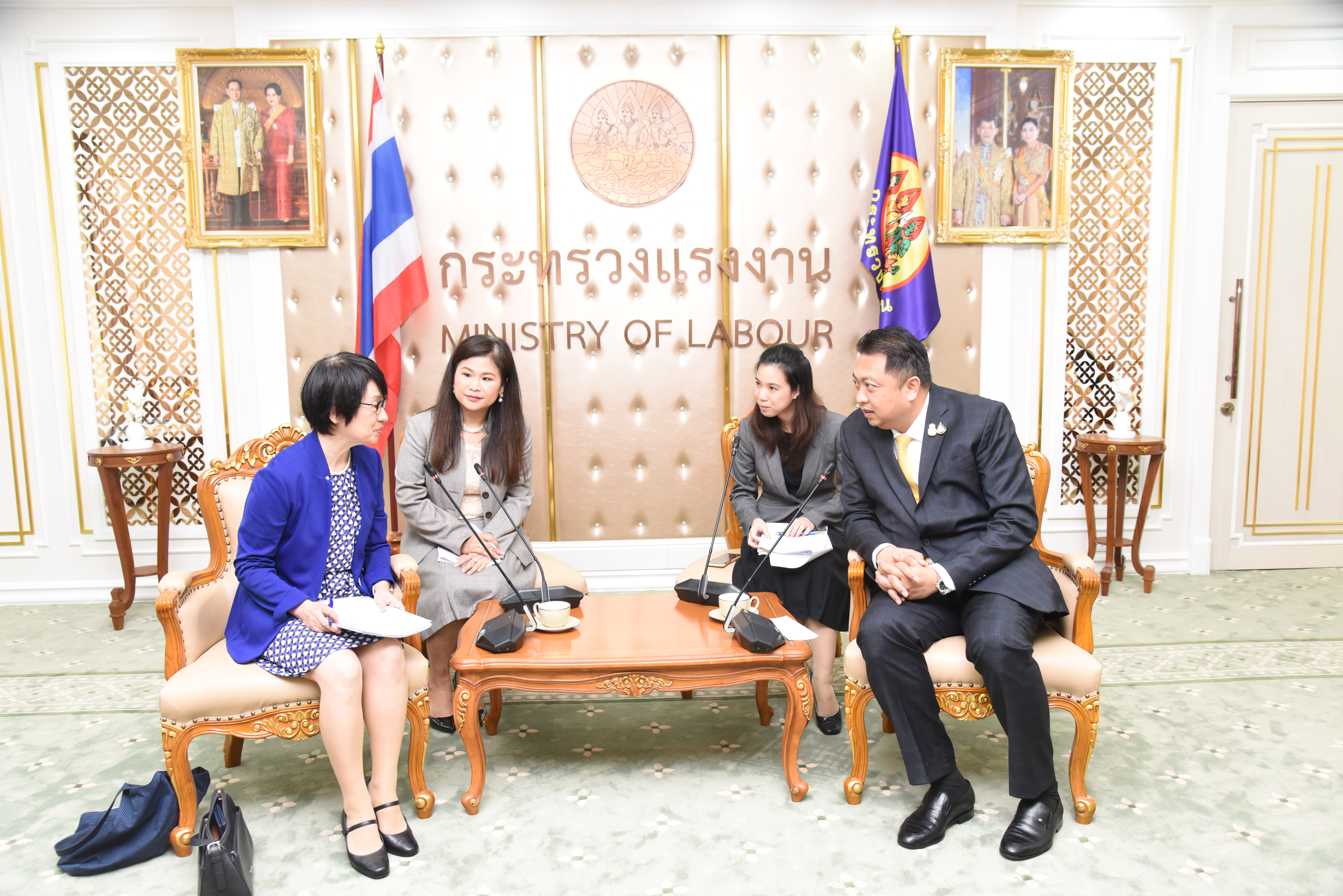 On October 30, 2020, at 14.30 hours, Labour Minister Mr. Suchart Chomklin welcomed Ms. Asada-Miyakawa, Regional Director for the ILO Office for Asia and the Pacific, on a courtesy call and to discuss national programs on decent work in Thailand. The meeting also discussed government remedial measures and employment stimulus plans in the Covid situation, social protection and social security under the circumstances of Covid-19, progress on the ratification of Conventions No. 87 and 98. Assistant to the Labour Minister Mr. Surachai Chaitrakulthong and Permanent Secretary of Labour Mr. Suthi Sukosol joined the reception at the Chatumongkol Room, 6th floor, Ministry of Labour.