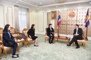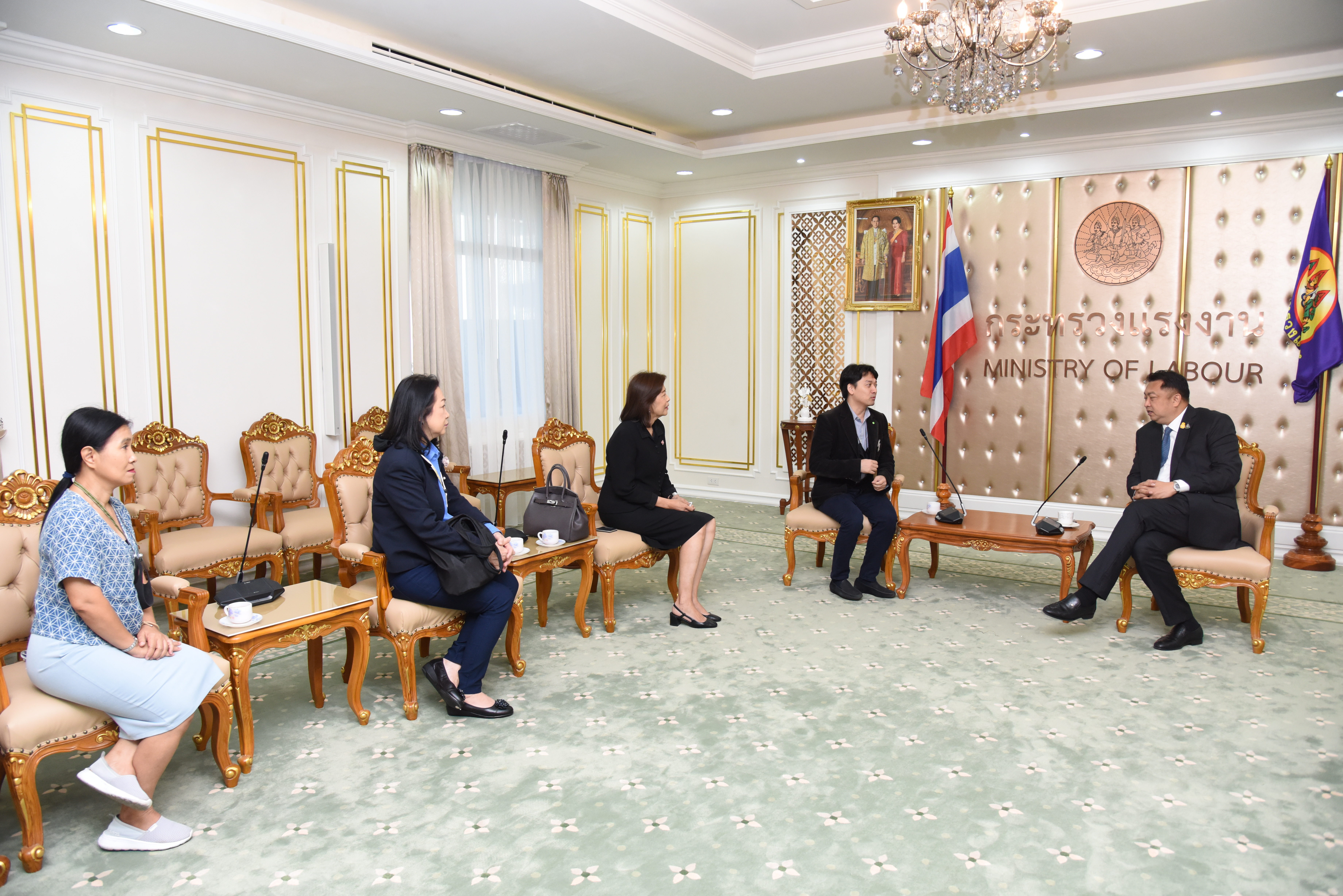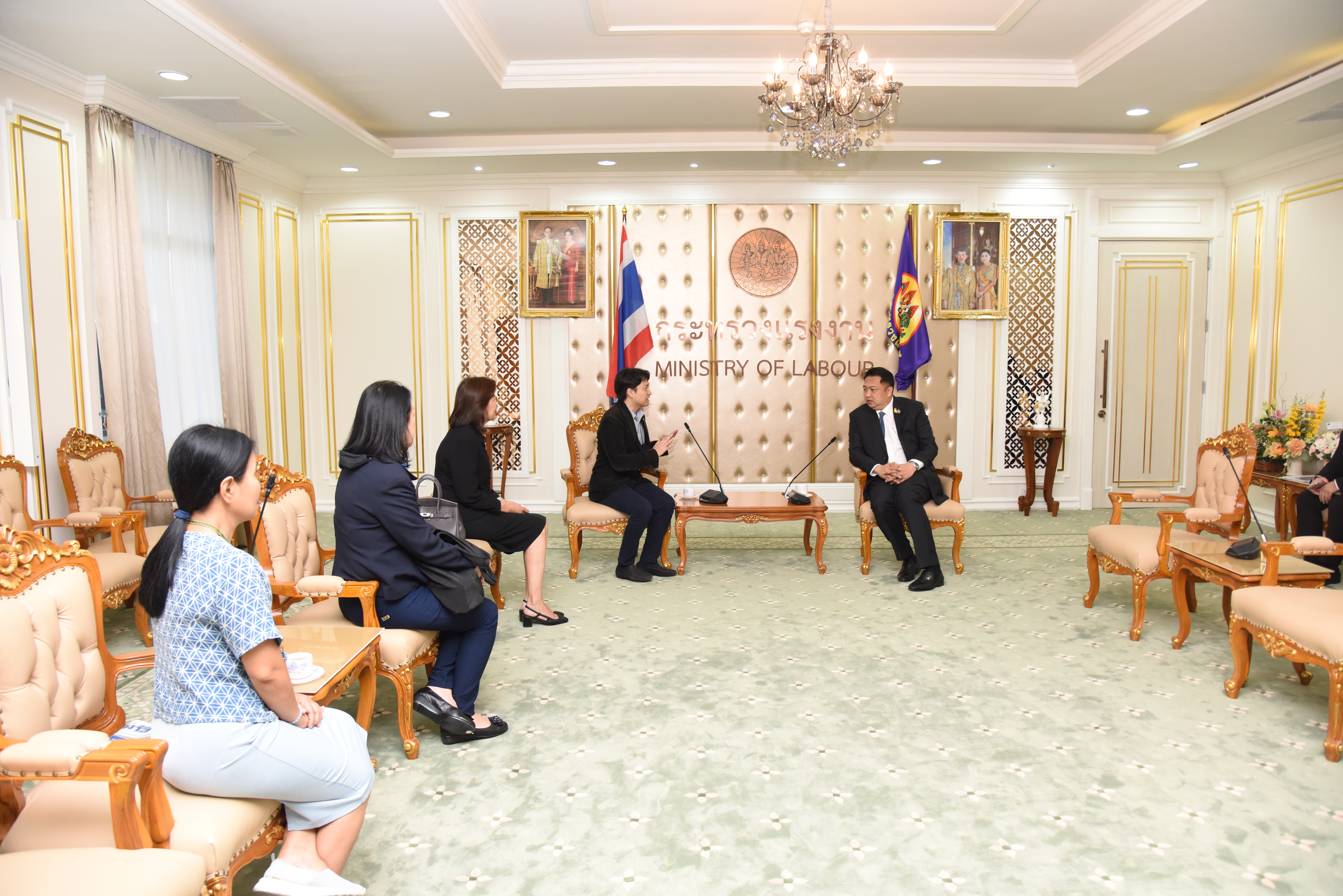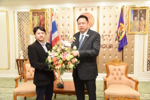On August 26, 2020, at 09.30 hours, Labour Minister Mr. Suchart Chomklin welcomed representatives from Siamrath newspaper who gave a basket of flowers to congratulate him on the occasion of his appointment to Labour Minister. The occasion took place at the Chatumongkol Room, 6th floor, Ministry of Labour.