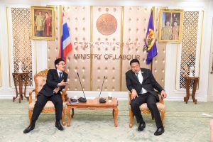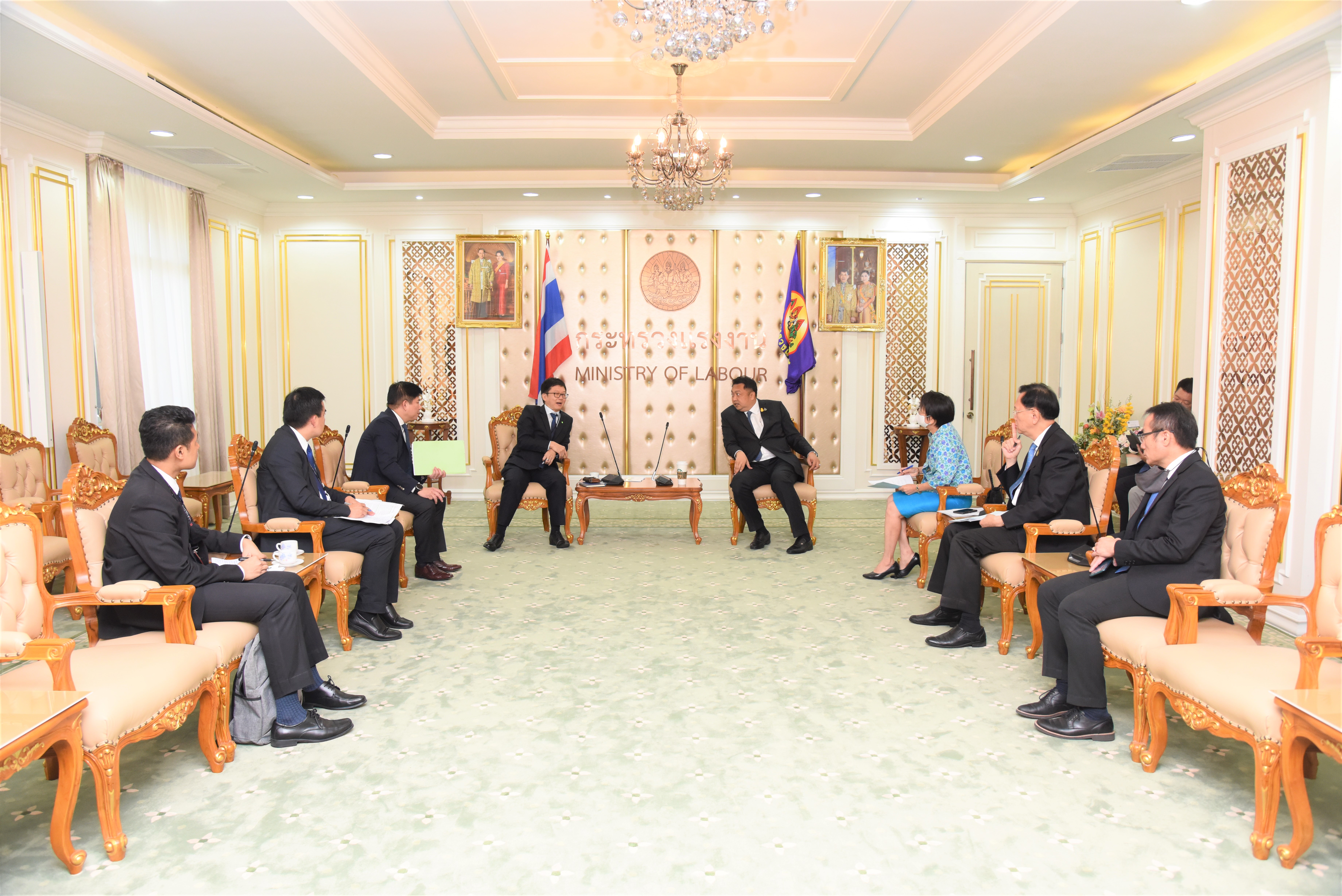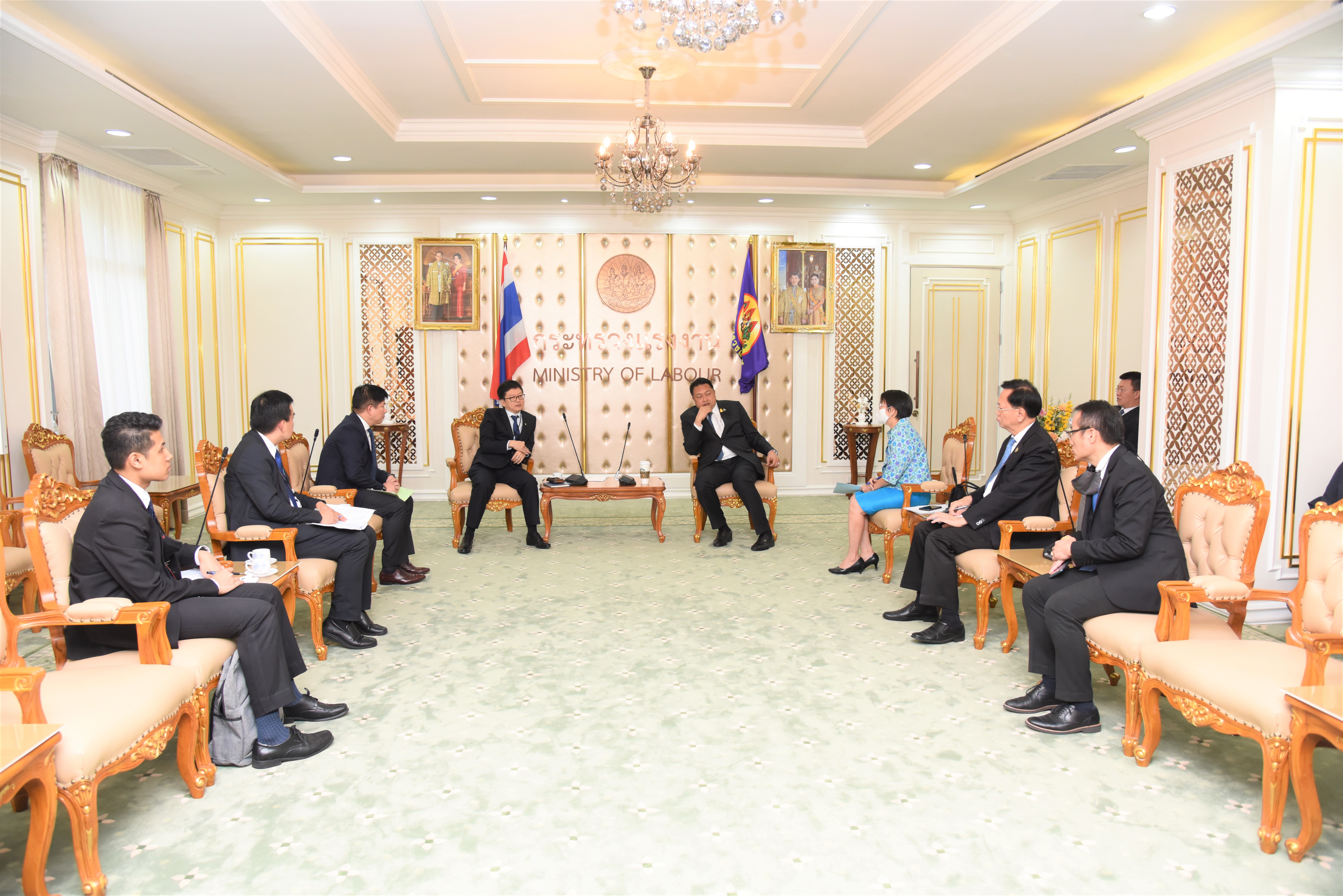 On August 26, 2020, at 14.30 hours, Deputy Labour Minister Mr. Suchart Chomklin welcomed Director-General of the Department of Consular Affairs Mr. Chatree Arachananan and committee to meet and discuss ways to assist the interpreter at the Labour Office in Saudi Arabia (Riyadh), with his illness. Deputy Permanent Secretary of Labour Mrs. Theanrat Nawamawat and the Department of Employment’s Director-General Mr. Suchart Pornchaiwisetkun also joined the discussion at Chatumongkol Room, 6th floor, Ministry of Labour.