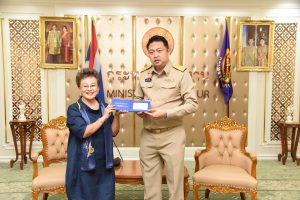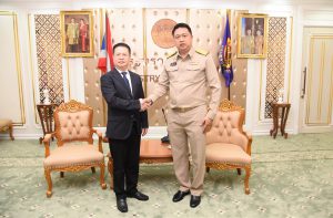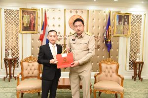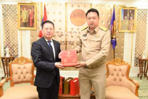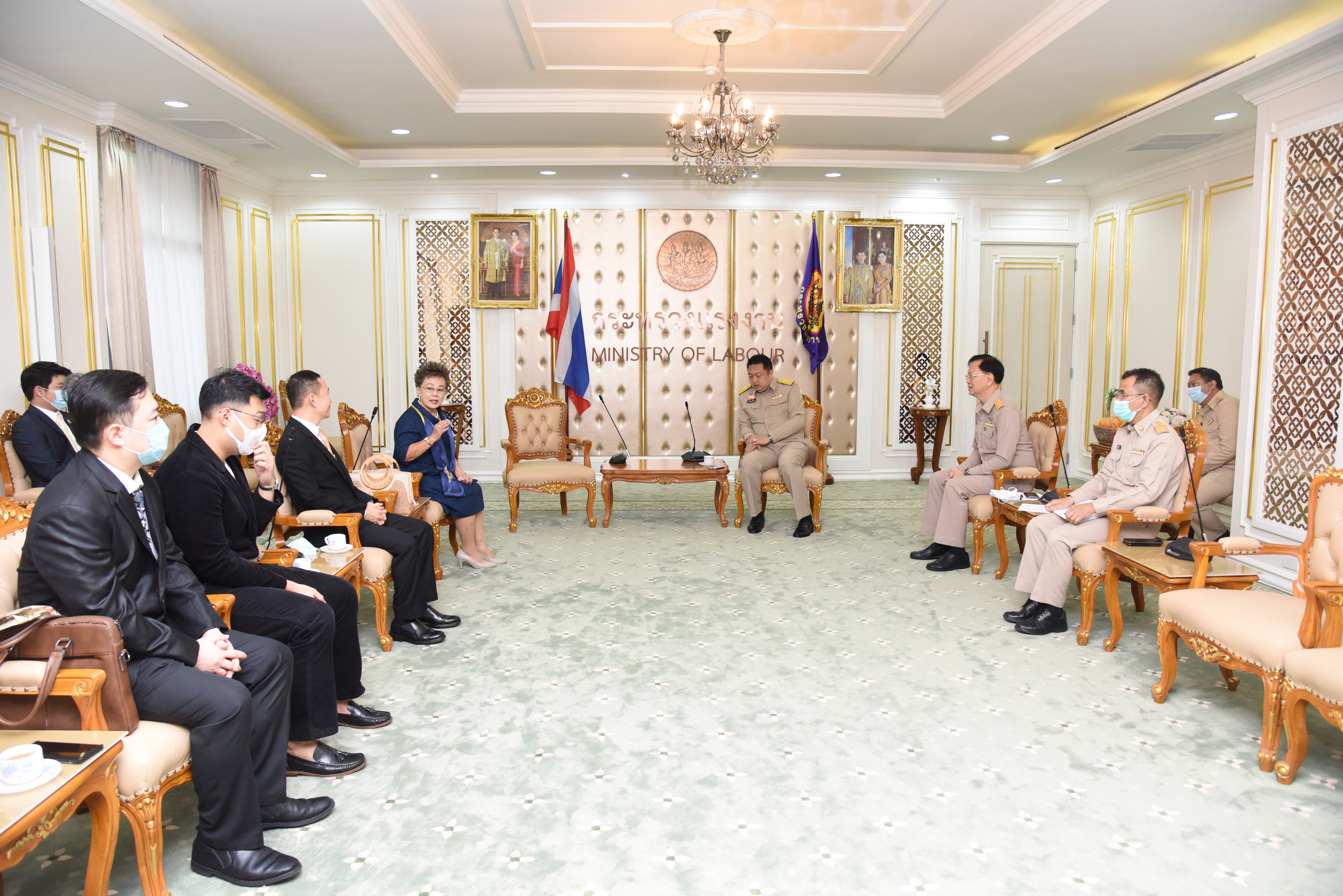 On September 14, 2020, at 09.30 hours, Labour Minister Mr. Suchart Chomklin welcomed President of the Fujian Anxi Thai-Chinese Trade Association, Global Event Co., Ltd., and Absolute Hearth Co., Ltd., on a meeting to congratulate the Labour Minister and discuss policies for foreign workers in Thailand, for the association to implement following Ministry of Labour’s policies. Department of Employment Mr. Suchart Pornchaiwisetkun also joined the welcoming at the Jatumongkol Meeting Room, 6th floor, Ministry of Labour.