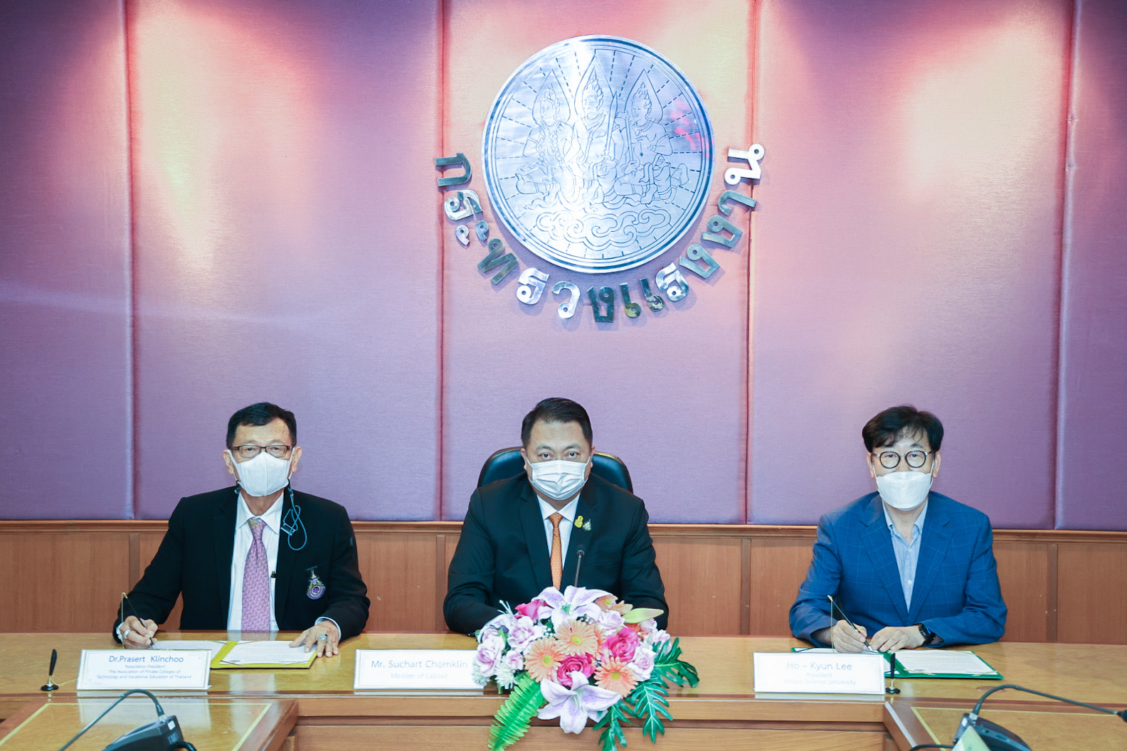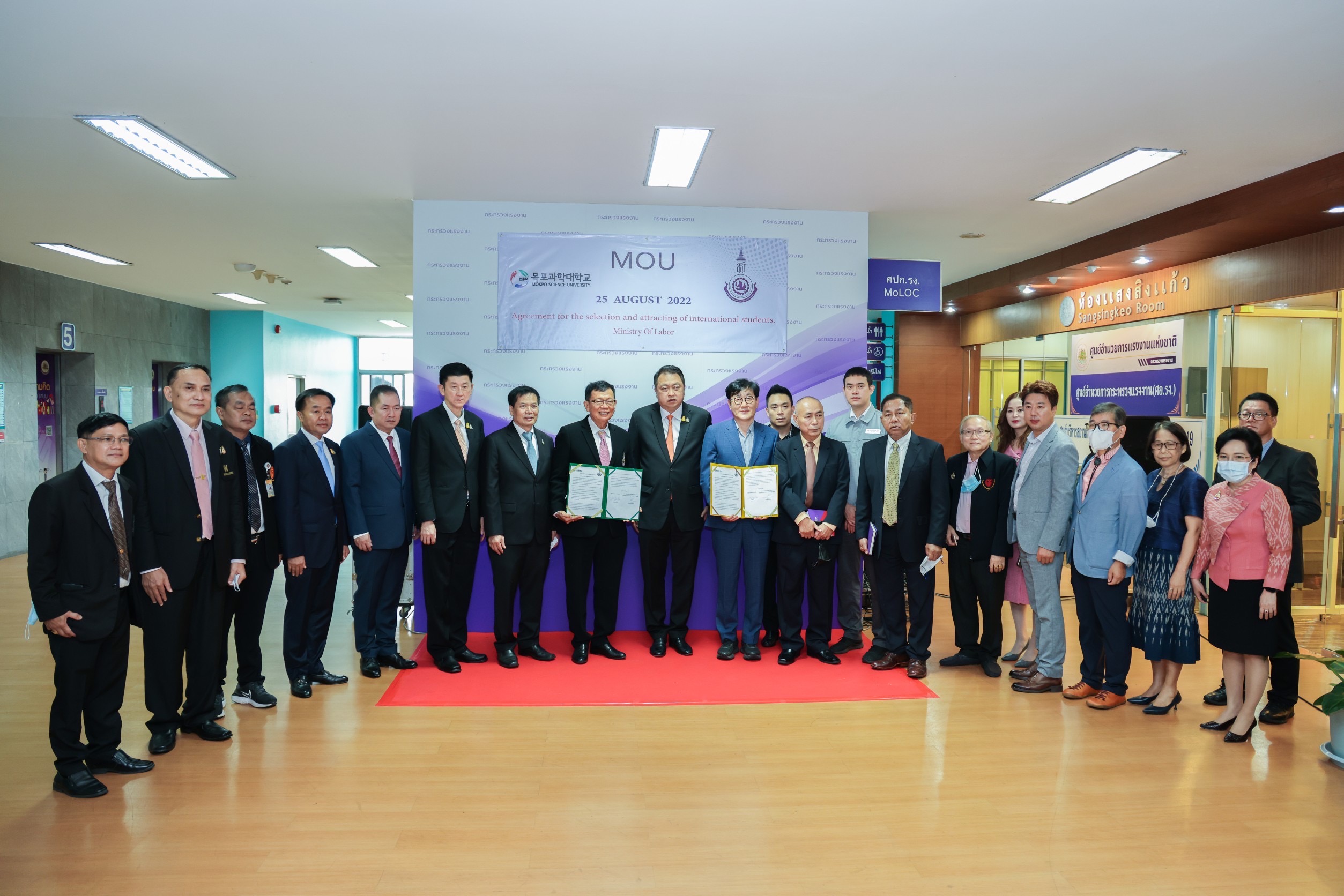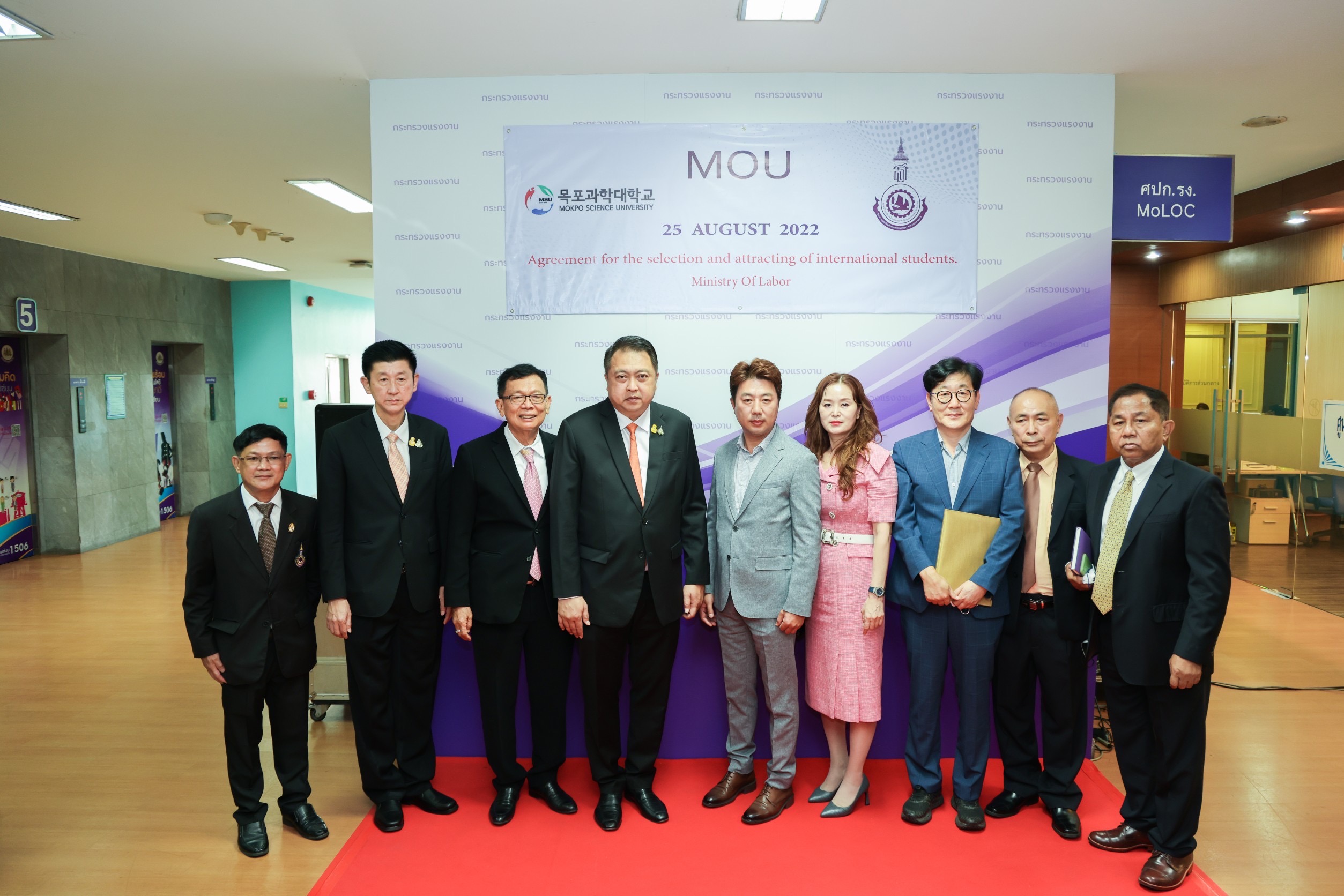 On August 25, 2022, the Labour Minister, Mr. Suchart Chomklin, witnessed the signing ceremony of the Memorandum of Understanding between Mokpo Science University and the Association of Private Colleges of Technology and Vocational Education of Thailand for cooperation in expanding the Thai labour market in the field of technicians in the shipyard industry in South Korea. The occasion took place at the Prasong Rananant Conference Room, 5th floor, Ministry of Labour.