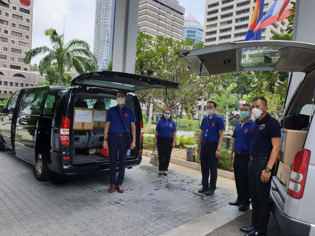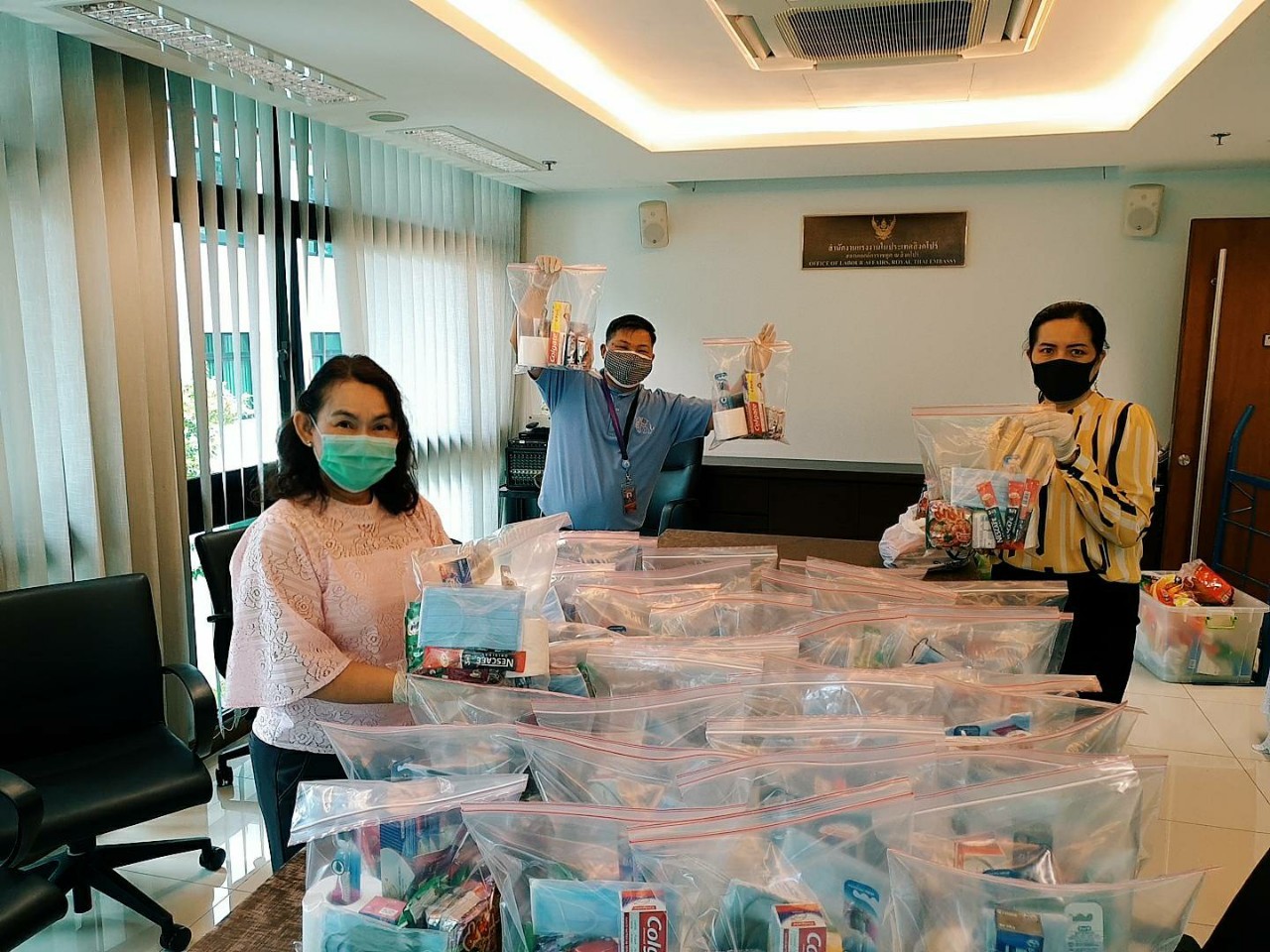 - Public relations measures by Thailand and the Thai embassy in the different countries on the prevention of the COVID-19 virus. The measure also includes the provision of advice on wearing masks, the use of alcohol gels in the event that workers reside in risky areas or suffer from the symptoms of COVID-19, it will provide assistance through the Thai embassy by delivering a survival kit or give away rice for the workers to continue living their lives.