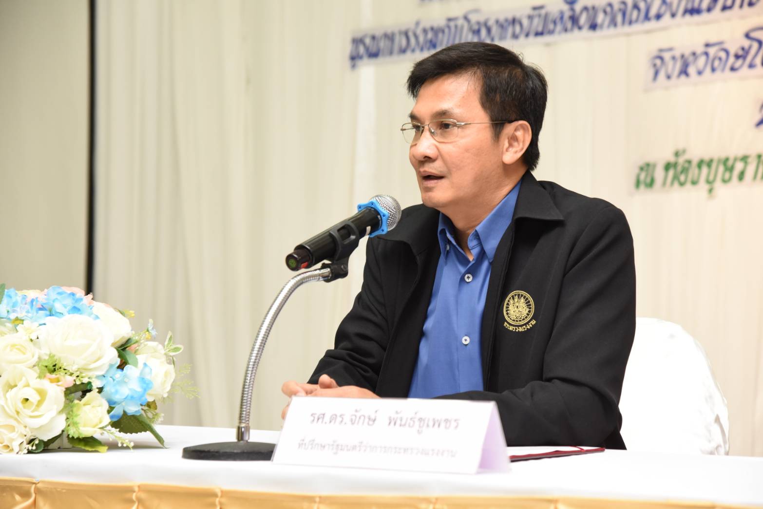 On February 26, 2020, at 11.00 hours, Advisor to the Labour Minister Assoc. Prof. Dr. Jak Punchoopet chaired the opening ceremony of the Labor Volunteer Network Empowerment Project to integrate the Ministry of Labor’s activities. Activity 1 was a workshop to increase knowledge that will be useful to labour volunteers, and Integration with the project to drive the policy mechanism to prevent and resolve human trafficking in labour towards implementation, in Yasothon for 2020. Yasothon Provincial Governor Mr. Nopadon Chongsomchai gave a report on the purpose of the event at the Budarakam Room, JP Emerald Hotel, Yasothon, Muang, Yasothon. The Labour Minister’s Advisor said that the Ministry of Labour plays a key role in promoting employment for the people to have a job and income by developing skills and the potential of the workforce, in order to provide workers with security for a stable life. It, therefore, establishes the vision of “labour as a high potential and a good quality of life” in response to the government’s vision to strive to develop and look after the people by creating sufficient income to reduce inequality. It also promotes for all Thai people of all ages to be ready, in both the principles of morality and ethics and to have the potential to live in the 21st century by the use of participatory public administration and networking, encouraging people to participate in the form of “labour volunteers”, which act as a representative of the Ministry of Labour in coordinating and mediating the provision of labour services to people in the area thoroughly.