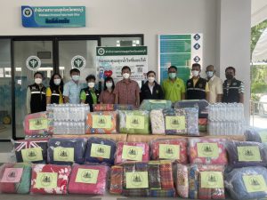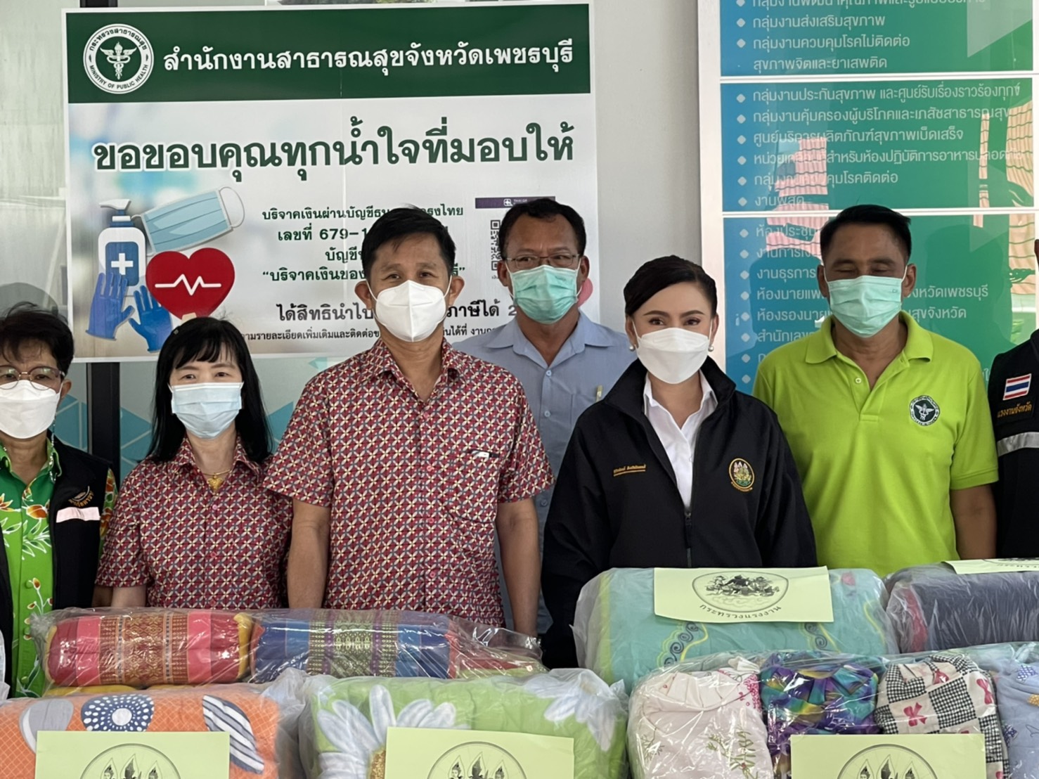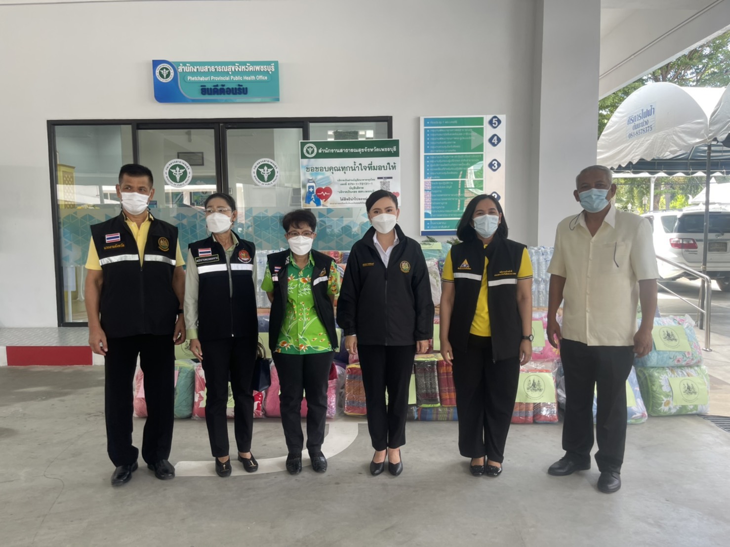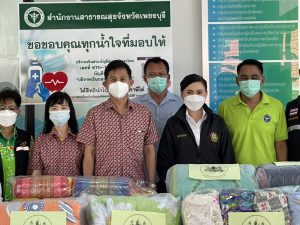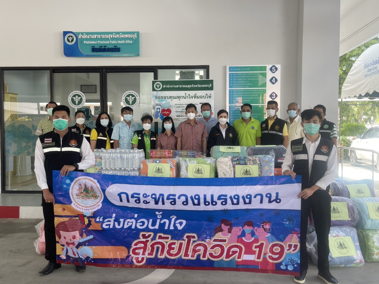 On August 4, 2021, Labour Minister Mr. Suchart Chomlin assigned the Ministry of Labour’s Advisor, Mrs. Thiwalrat Angkinan, to visit the area and donate 100 sets of picnic mattresses and 100 boxes of drinking water to the Phetchaburi Provincial Public Health Office. The Phetchaburi Provincial Public Health Doctor, Dr. Petchreuk Tansawat, was representative in receiving the goods. The heads of government agencies under the Ministry of Labour in Phetchaburi Province also joined the occasion. The donations were delivered for use in local quarantine facilities in Phetchaburi. The occasion took place at the meeting room on the 2nd floor, Phetchaburi Provincial Public Health Office.