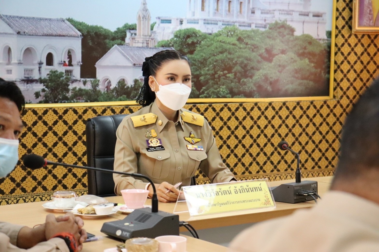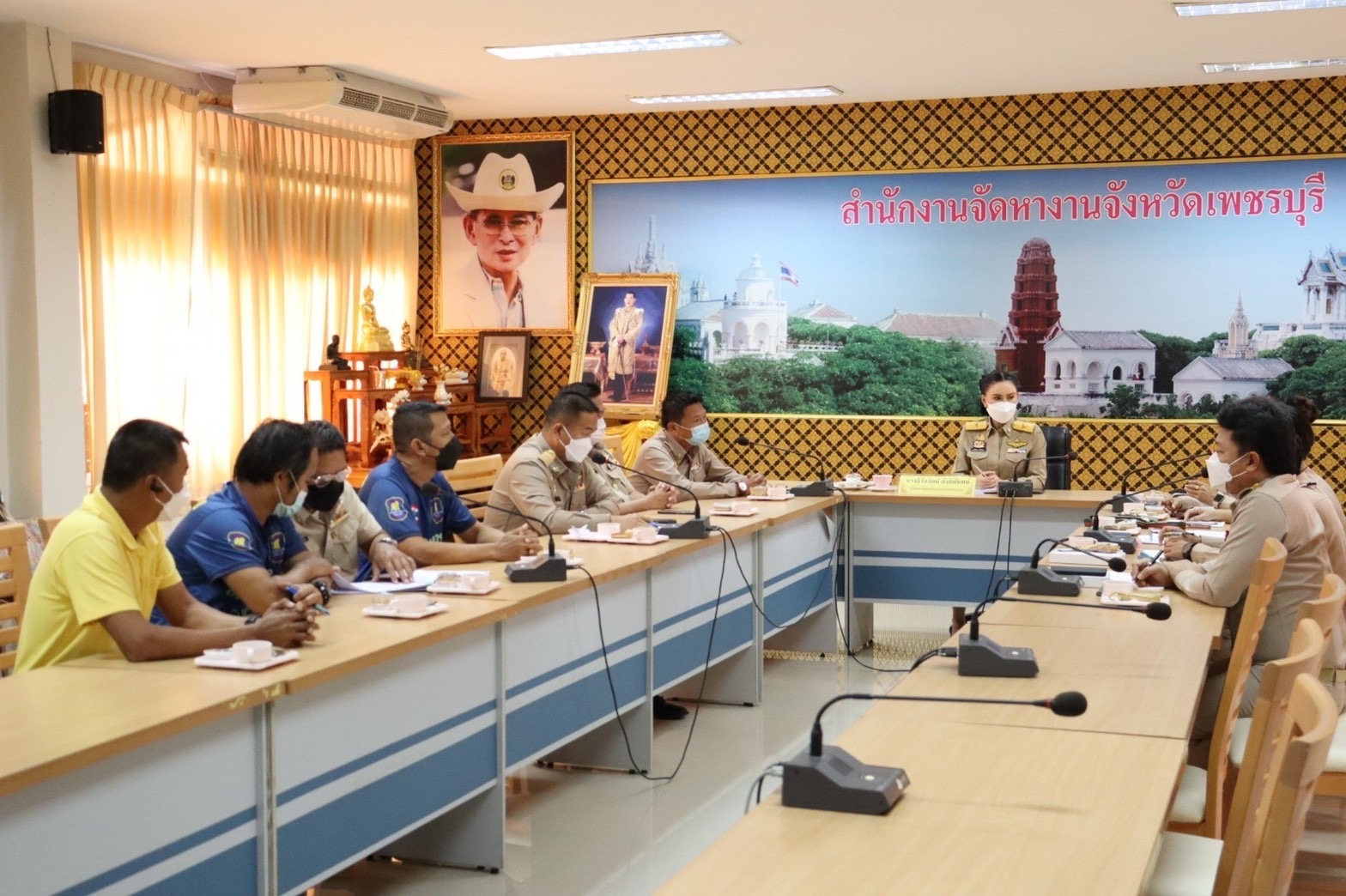 On October 10, 2022, the Labour Minister, Mr. Suchart Chomklin, assigned the Labour Minister’s Advisor, Mrs. Thiwalrat Angkinan, to preside over the meeting to discuss establishing a Myanmar labour group in Khao Yoi District, Phetchaburi Province. The Provincial Employment Officer, the Provincial Labour Office, the Provincial Labour Welfare and Protection Officer, and the community headsman attended the meeting at the meeting room on the 2nd floor, Phetchaburi Provincial Employment Office.