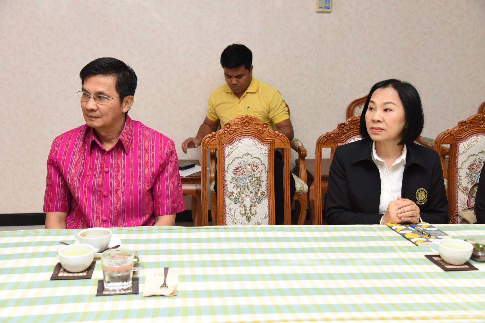 On February 28, 2020, at 09.00 hours, Advisor to the Labour Minister Assoc. Prof. Dr. Jak Punchoopet, the Social Security Office’s Inspector-General Ms. Pailin and heads of governments under the Ministry of Labour in Roi Et, met with Roi Et Provincial Governor Mr. Wanchai Khongkasem to discuss labour issues. The meeting discussed the increase in agricultural employment, quality employment for the elderly, caring for informal workers to have collateral, vocational training following market needs and online sales training in the OTOP group. The meeting also covered the prevention of Covid-19 and the economic condition of the province, which took place at Roi Et’s City Hall lounge, Roi Et City Hall Building.
