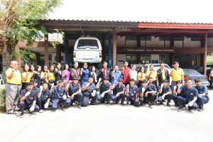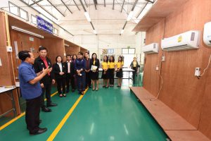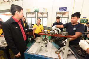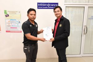 On February 27, 2020, at 11.30 hours, Advisor to the Labour Minister Assoc. Prof. Dr. Jak Punchoopet observed labour standards assessments and pre-employment training in the mechanical branch and provided certificates of competence for 5 trainees in the building electrician field, who completed the training. The Social Security Office’s Inspector-General Ms. Pailin Chindamaneeporn joined the visit with Director of Maha Sarakhram Skill Development Office Mr. Somsak Pengtham who led the visit at the Maha Sarakham Office of Skill Development in Maha Sarakham.