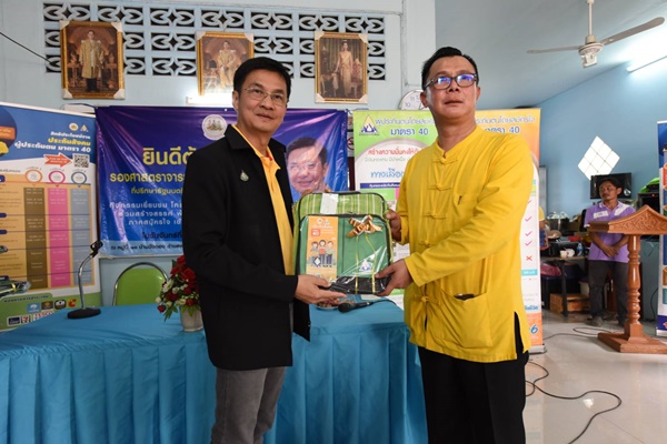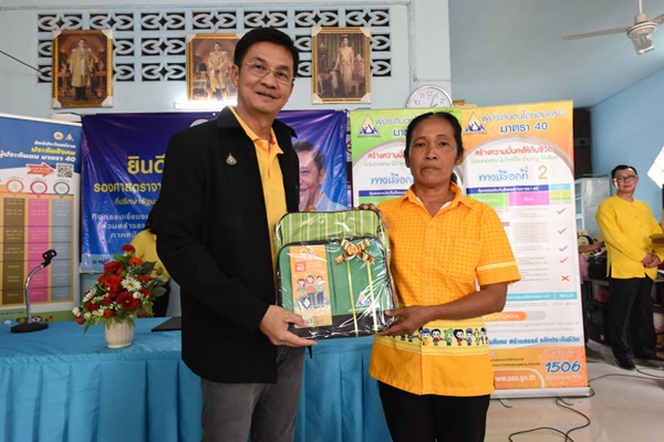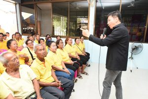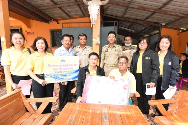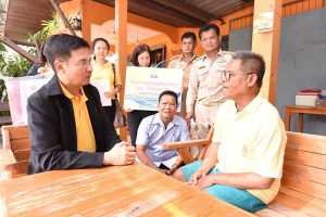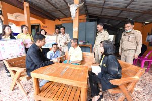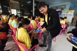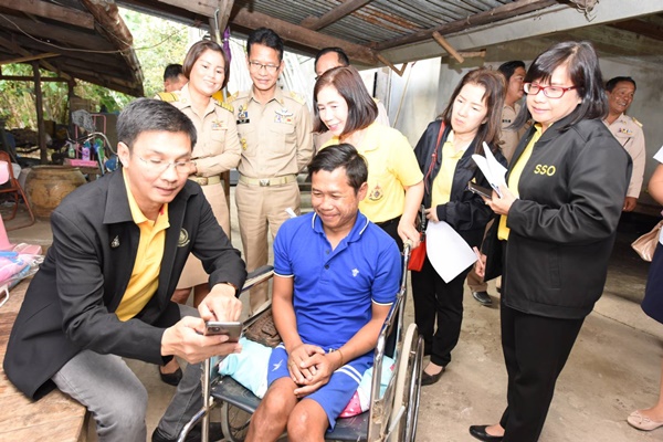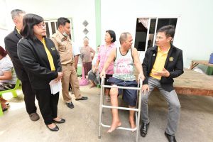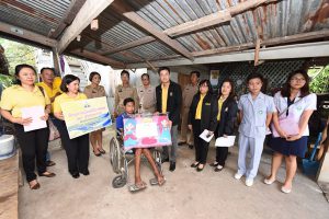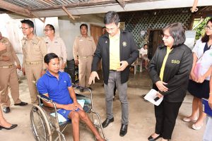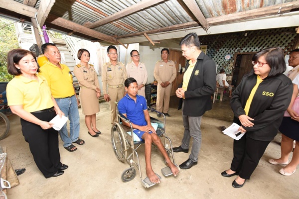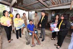 On February 3, 3030, at 13.30 hours, Advisor to the Labour Minister Assoc. Prof. Dr. Jak Punchoopet traveled to Nakhon Sawan to visit, give words of encouragement, and distributed goods to 3 people with disabilities. Nakhon Sawan Labour Officer Mr. Samart Pathamasukhon, Nakhon Sawan Employment Officer Mr. Decha Pruekphattananarak, Director of Nakorn Sawan 8 Skill Development Institute Mrs. Chanyaphat Sunthonphol, Nakhon Sawan Social Security Officer Ms. Wattana Kerdphet, Nakhon Sawan Labour Protection and Welfare Officer Mrs. Malee Narakawat and Director of the District Safety Center Area 6 Mr. Wachin Thippayasothi also joined the occasion.