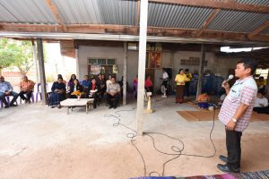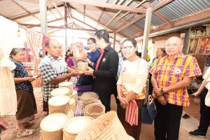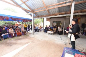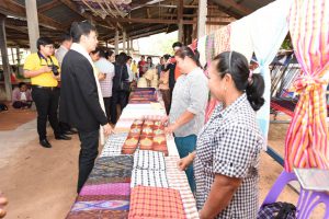 On February 27, 2020, at 15.00 hours, Advisor to the Labour Minister Assoc. Prof. Dr. Jak Punchoopet visited the Ban Phai Lom Silk-Cotton Weaving informal workers group. The Social Security Office’s Inspector-General Ms. Pailin Chindamaneeporn joined the visit, whereby Maha Sarakham Provincial Labour Officer Ms. Wilaiwan Thiangdah and Academic Labour Expert and acting Maha Sarakhram Labour Officer Ms. Nahathai Harntawi led the visit to the informal worker group at No. 83, Non Phiban, Kae Dam, Maha Sarakham.