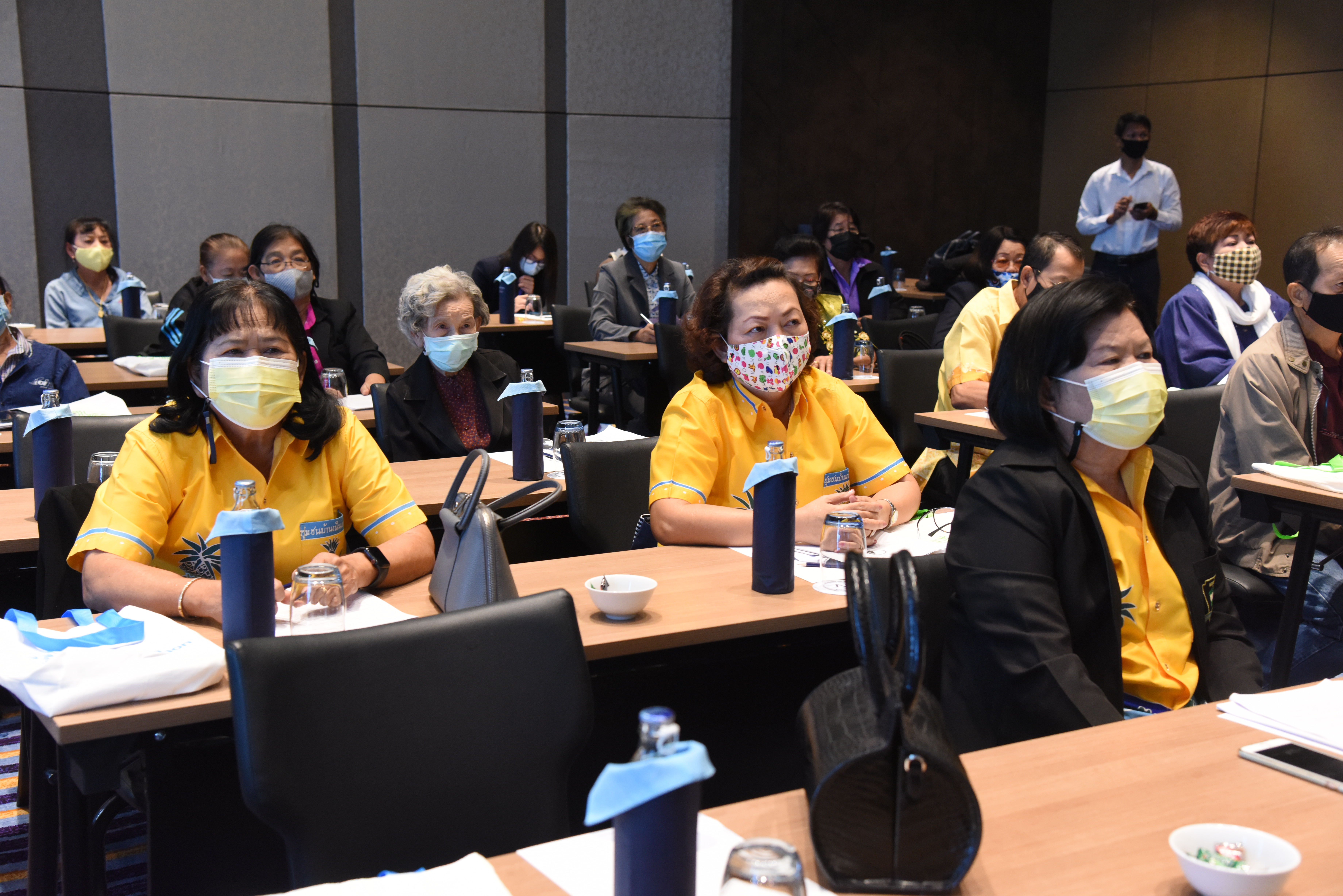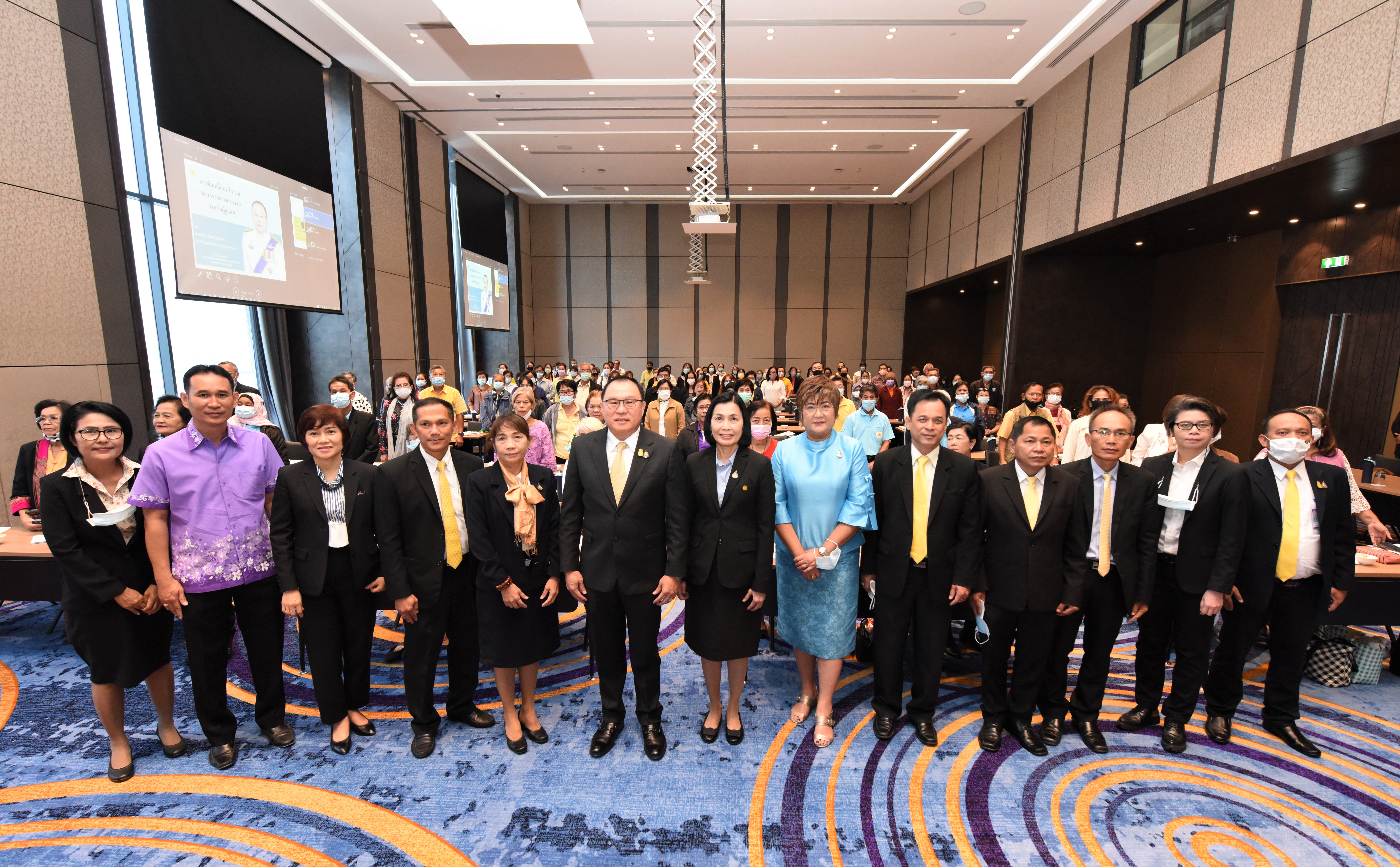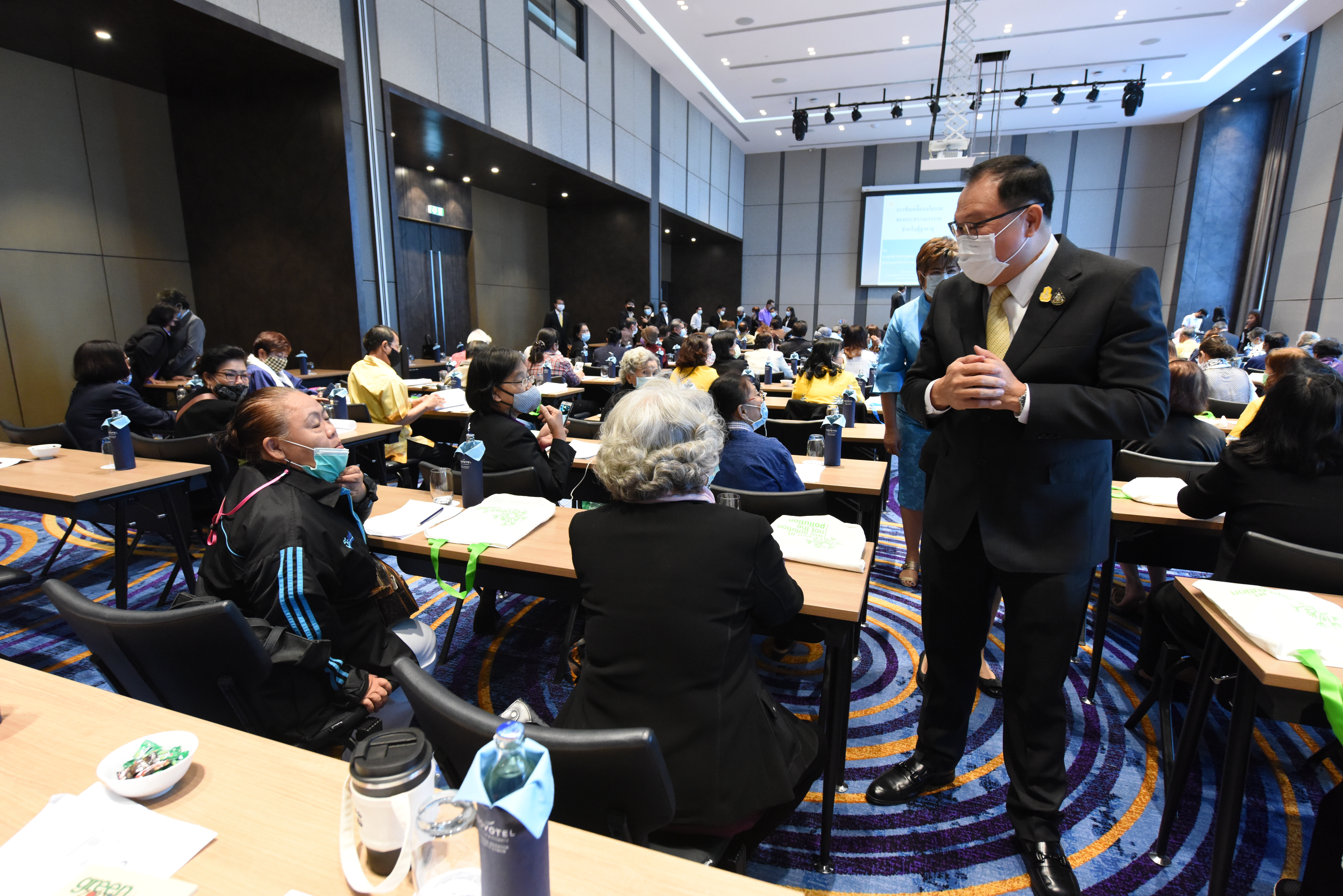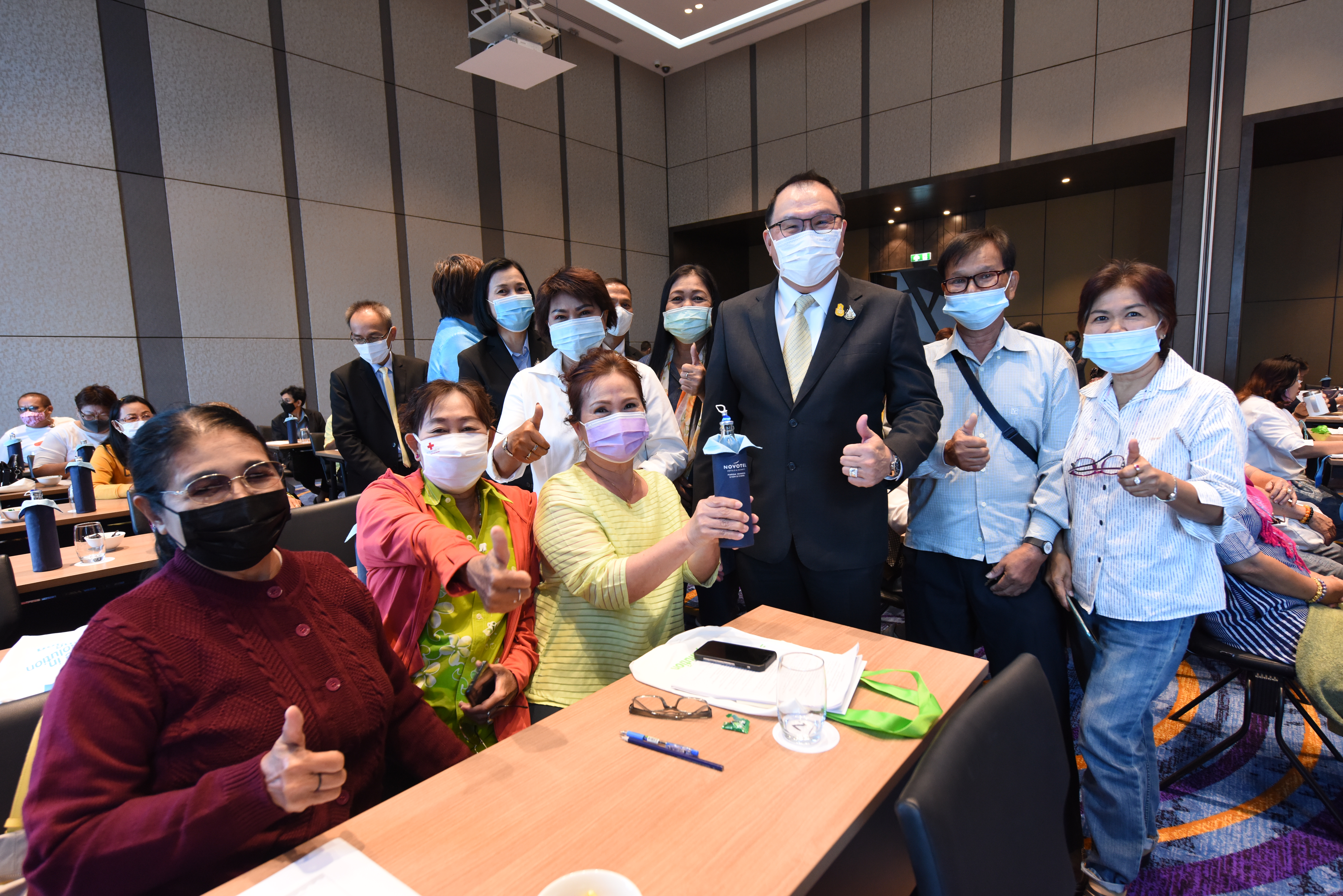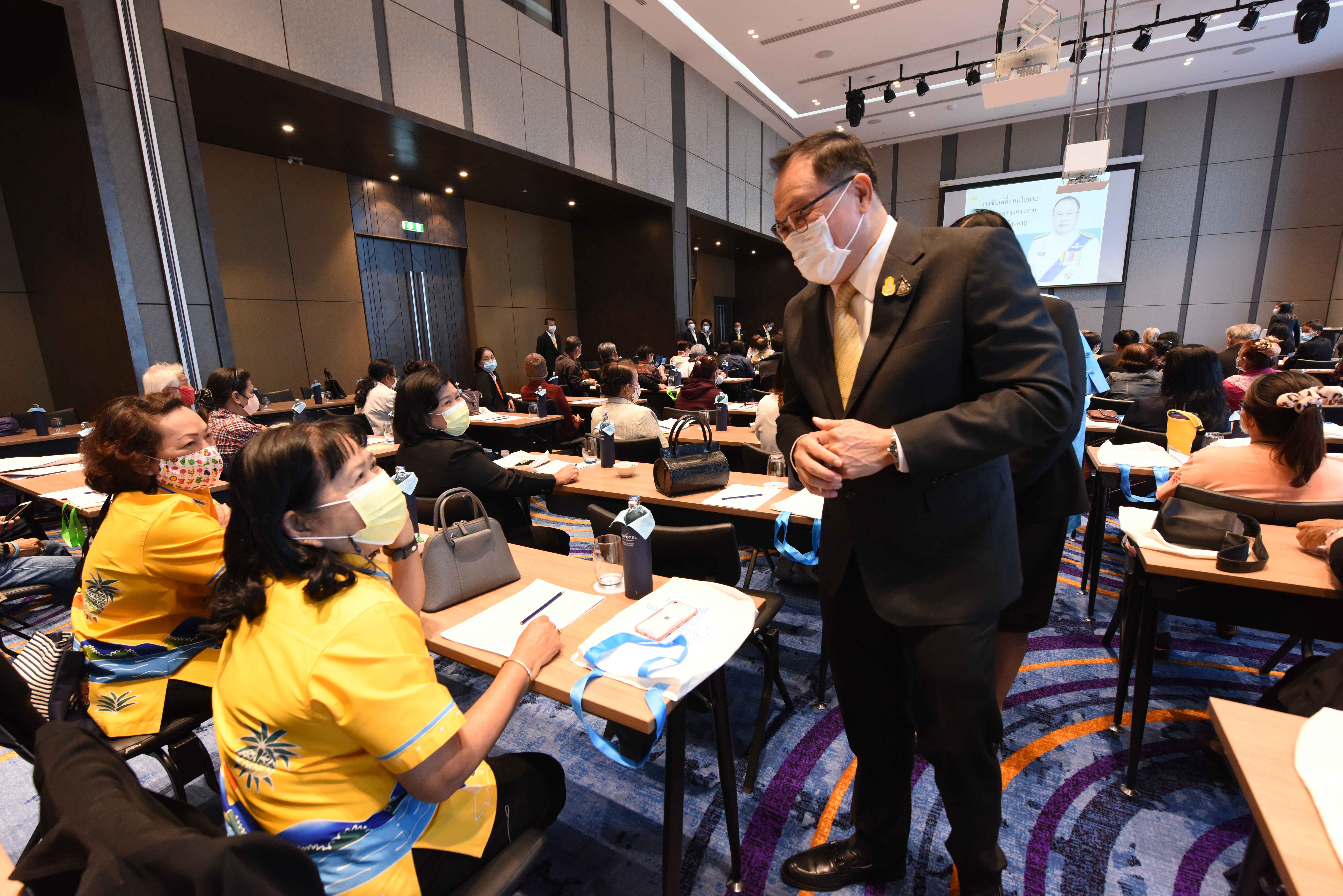 On December 24, 2020, at 09.00 hours, Assistant to the Labour Minister Mr. Surachai Chaitrakulthong chaired the project to create a network to protect informal workers in the aging society. The project aims to enable elderly workers to enter the aging society and reflects on the importance of government agencies in promoting and encouraging elderly workers to form a network. Such networks facilitate the exchange of knowledge and information to strengthen access rights and ensure understanding of relevant laws are covered thoroughly and fairly in preparation to become a valuable elderly society. The event took place at the Novotel Marina Sriracha and Koh Si Chang Hotel, Sriracha District, Chonburi. The Department of Labour Protection and Welfare’s Deputy Director-General Mrs. Udomlak Sonsarn, gave a report. Most of the elderly are self-employed, intending to supplement income or work as hobbies, careers, or less strenuous activity, not working full-time. Such workers are not protected by law and have no social security. Moreover, most informal workers lack a proper understanding of labour laws, occupational safety, health and environment laws, and relevant legislation. This training includes informal workers, elderly groups (60 years and over) in Chonburi Province, whereby 110 people attended the training. The project’s duration is two days, which will benefit the trainees in their occupation and life, promoting group relationship activities to build relationships with the elderly to create and form networks.