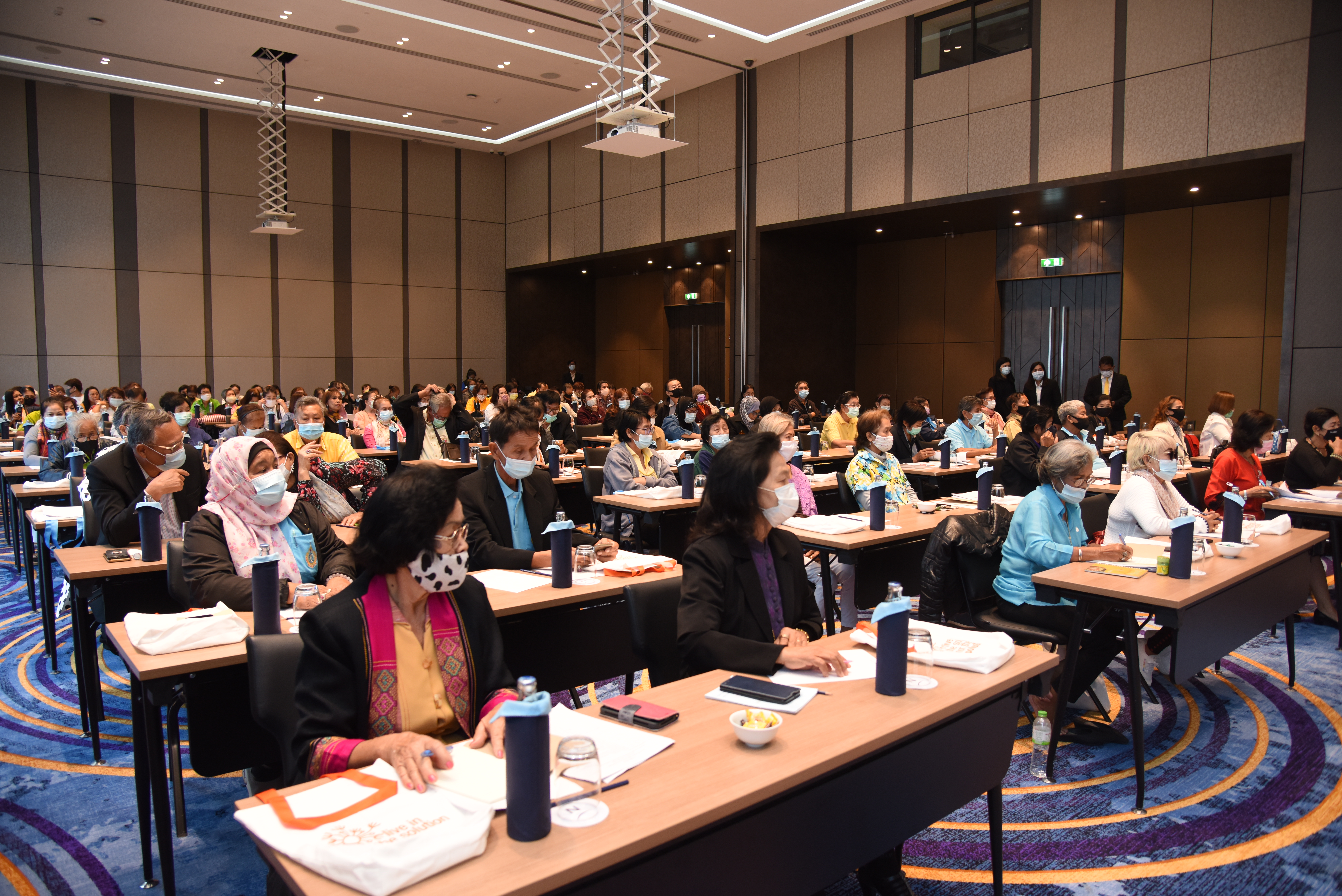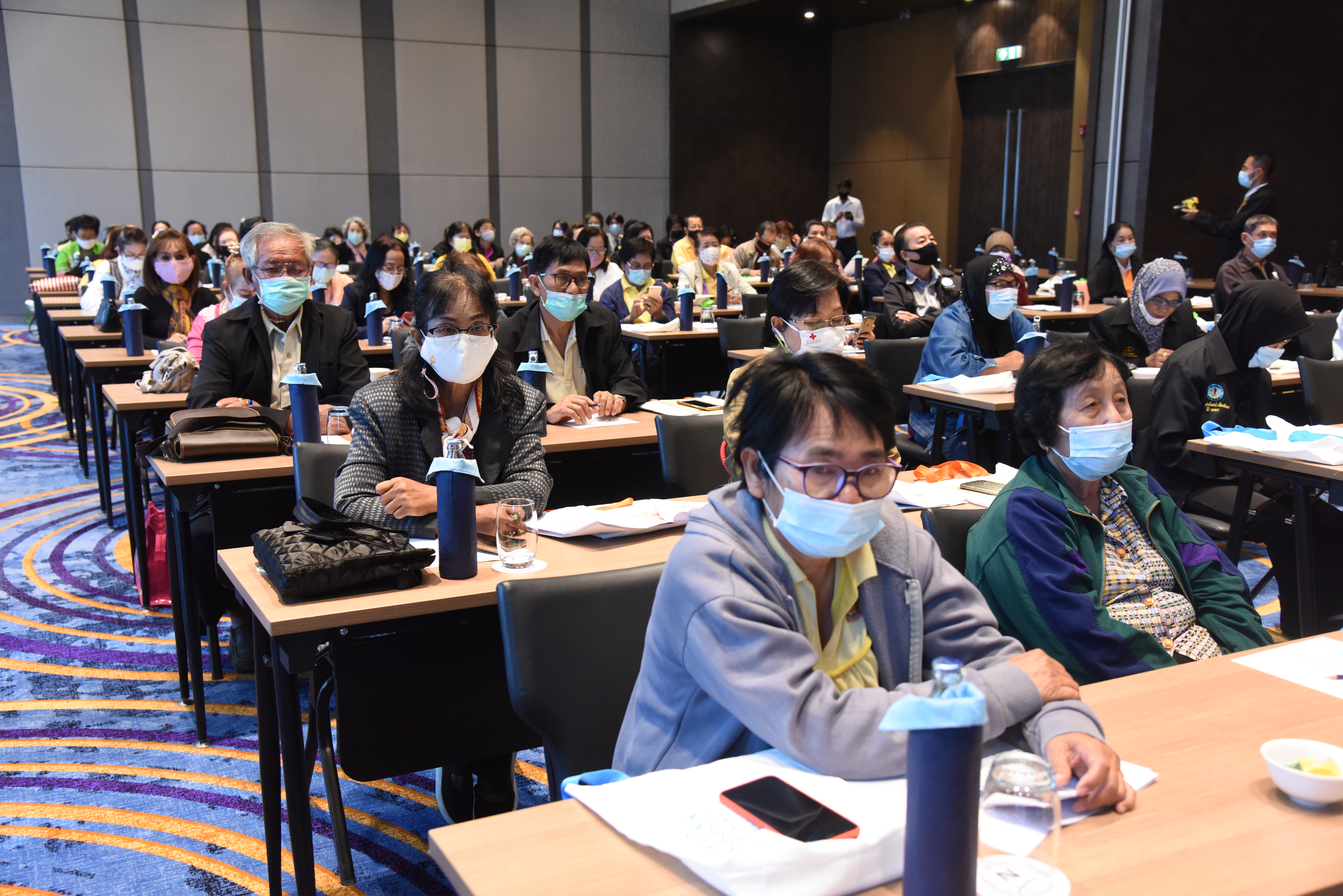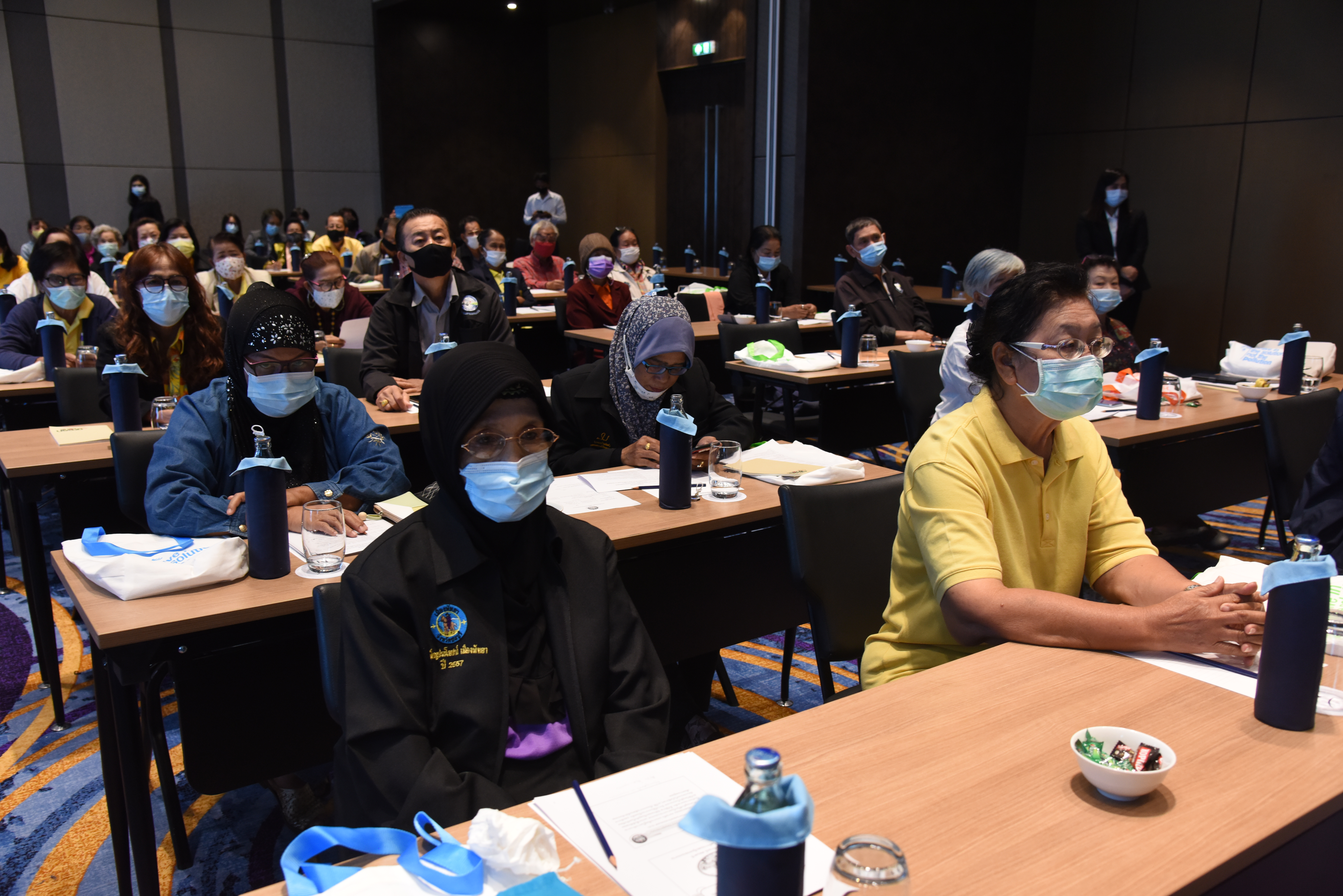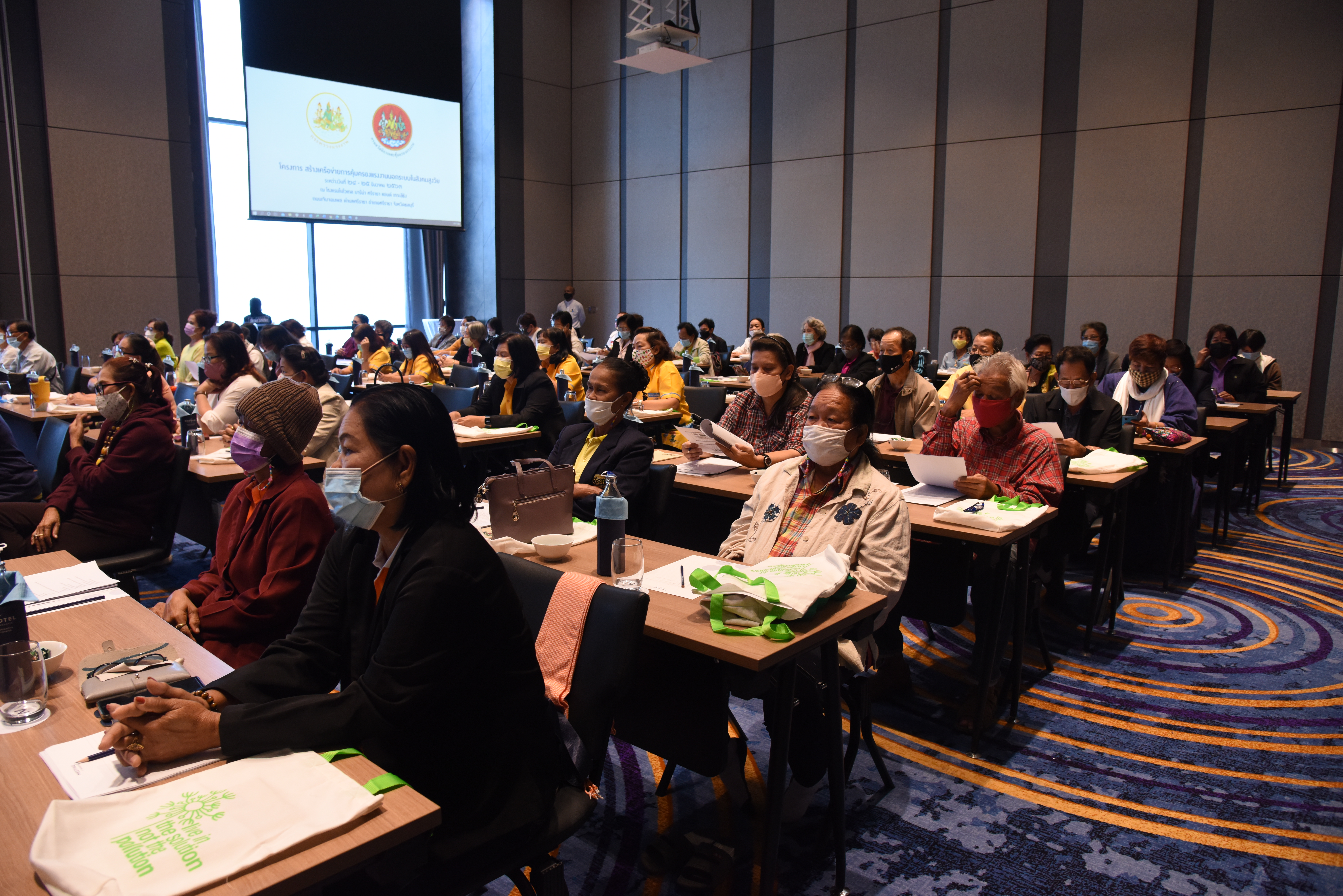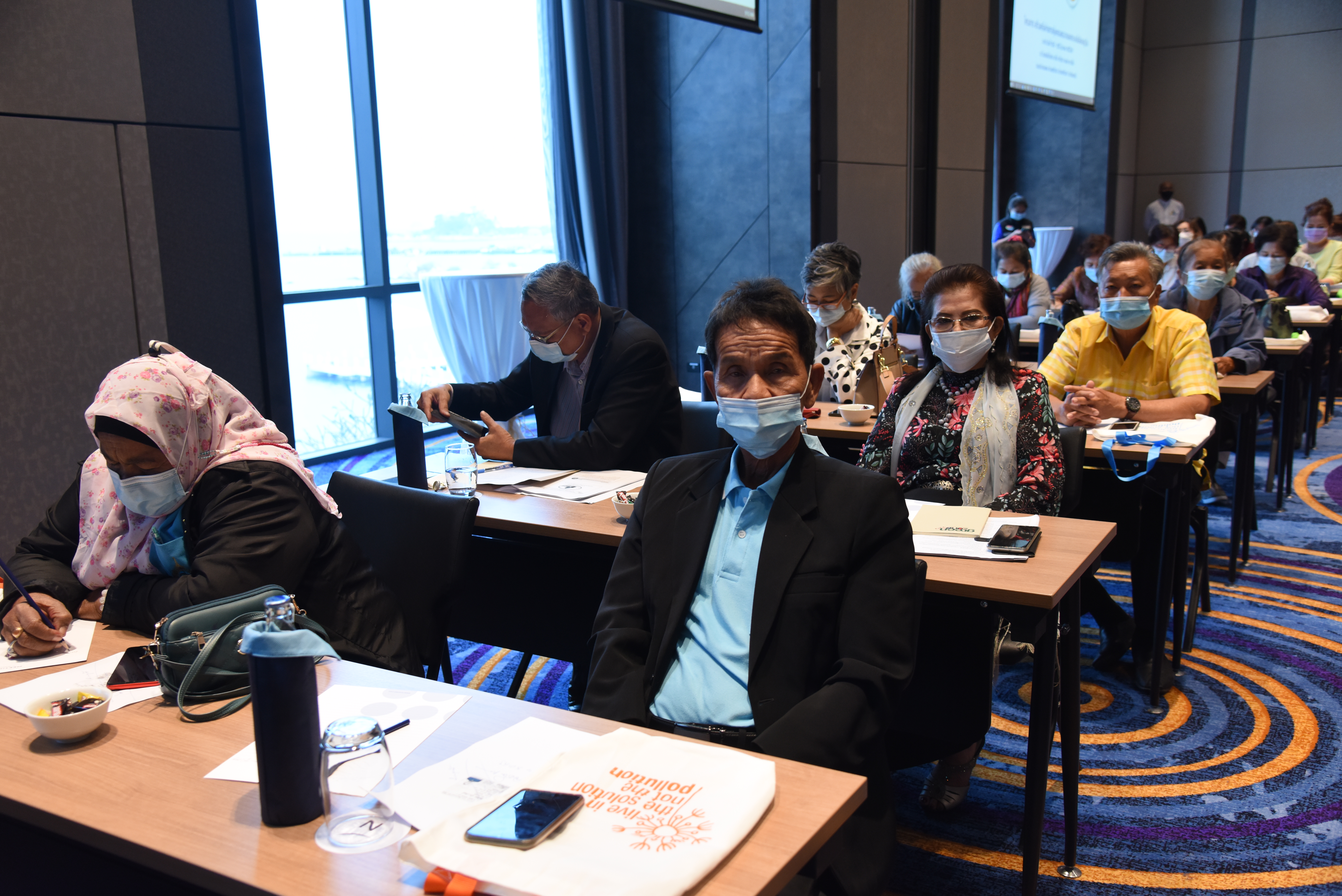 On December 24, 2020, at 09.00 hours, Assistant to the Labour Minister Mr. Surachai Chaitrakulthong chaired the project to create a network to protect informal workers in the aging society. The project aims to enable elderly workers to enter the aging society and reflects on the importance of government agencies in promoting and encouraging elderly workers to form a network. Such networks facilitate the exchange of knowledge and information to strengthen access rights and ensure understanding of relevant laws are covered thoroughly and fairly in preparation to become a valuable elderly society. The event took place at the Novotel Marina Sriracha and Koh Si Chang Hotel, Sriracha District, Chonburi. The Department of Labour Protection and Welfare’s Deputy Director-General Mrs. Udomlak Sonsarn, gave a report. Most of the elderly are self-employed, intending to supplement income or work as hobbies, careers, or less strenuous activity, not working full-time. Such workers are not protected by law and have no social security. Moreover, most informal workers lack a proper understanding of labour laws, occupational safety, health and environment laws, and relevant legislation. This training includes informal workers, elderly groups (60 years and over) in Chonburi Province, whereby 110 people attended the training. The project’s duration is two days, which will benefit the trainees in their occupation and life, promoting group relationship activities to build relationships with the elderly to create and form networks.
