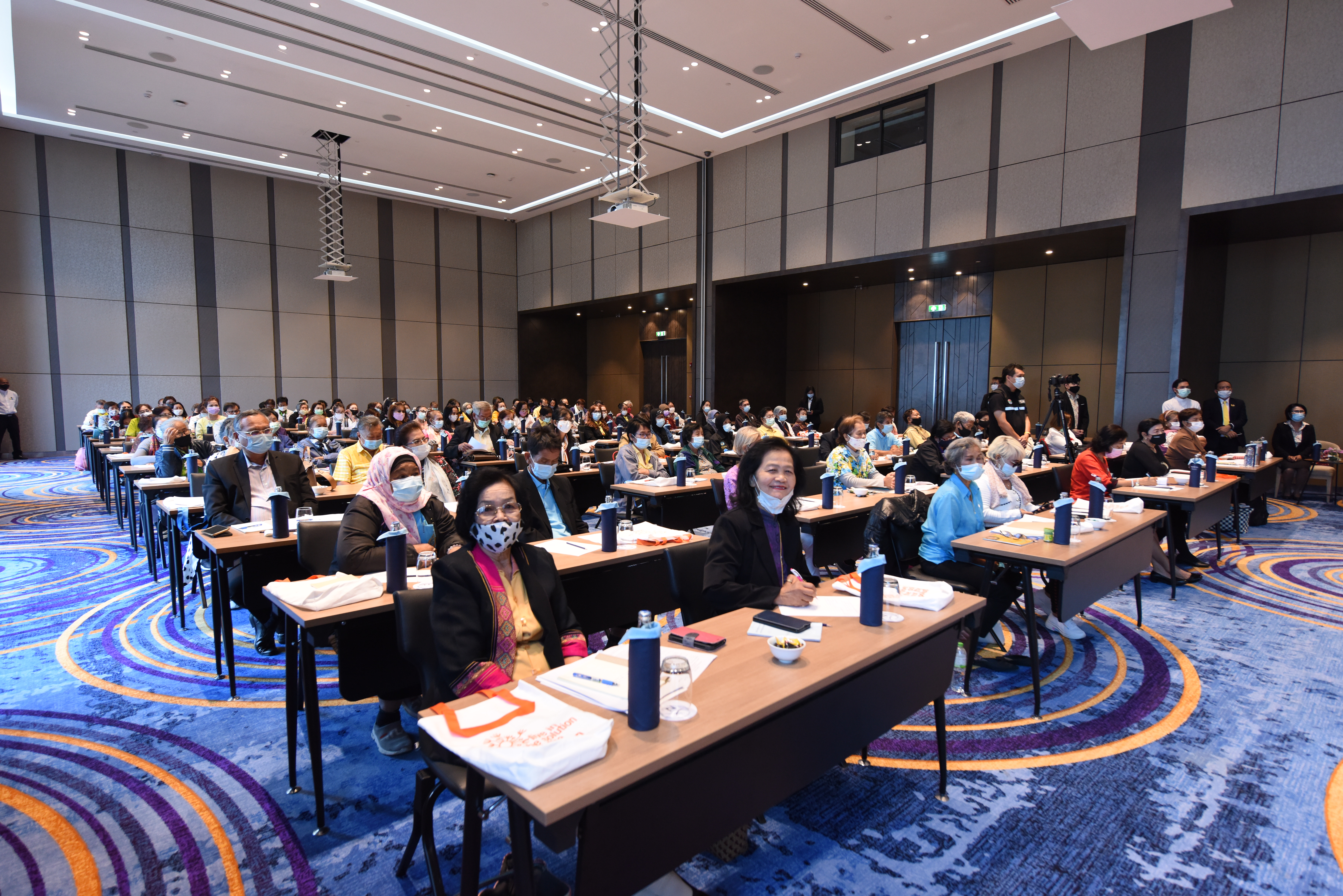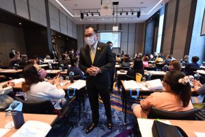 Mr. Surachai said that the Ministry of Labour’s Department of Labour Protection and Welfare’s main mission is to protect employers and employees, including formal and informal workers, to have a good quality of life. It aims to promote employment conditions and a safe working environment, giving importance to the aging workforce on an increasing trend. Therefore, the training was conducted today to provide informal workers who are the elderly the knowledge and understanding of informal workers’ protection. The participants are informed of important labour situations, including the rights to protect workers thoroughly and fairly without being taken advantage of by employers. The training had lectures on various topics that benefit the elderly. There is also a group relationship activity for the elderly to get to know each other, build relationships, and exchange experiences with each other, promoting a network for them to help each other become valuable elderly groups in society.