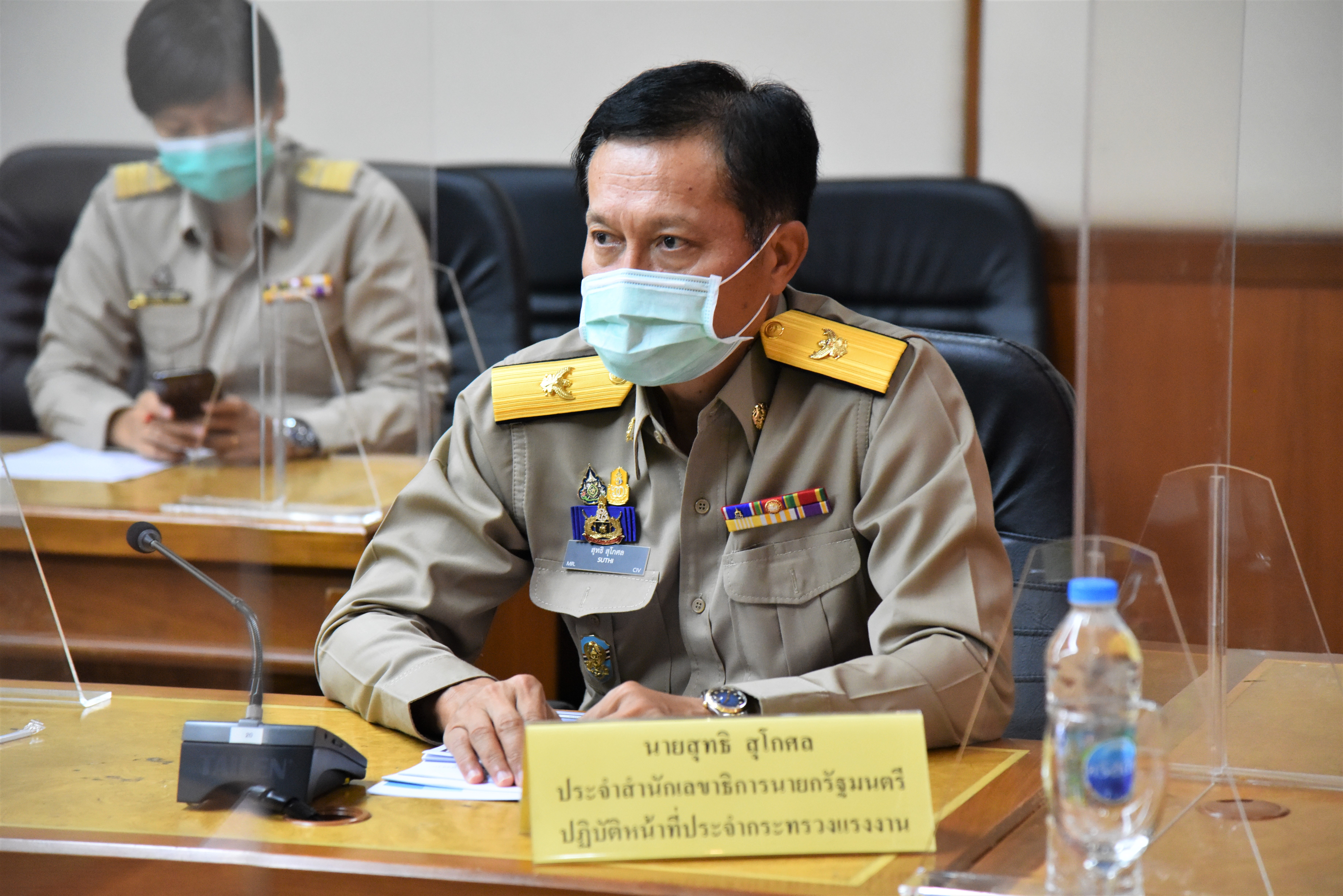 On June 6, 2022, at 13.30 hours, Assistant to the Labour Minister Mr. Surachai Chaitrakulthong presided over the meeting to follow up on the Labour Minister’s (Mr. Suchart Chomklin) orders No. 4/2022. Assistant Minister from the Prime Minister’s Office performing duties for the Ministry of Labour, Mr. Suthi Sukosol, and the Ministry of Labour’s executives join the meeting at the Prasong Rananant meeting room, 5th floor, Ministry of Labour.