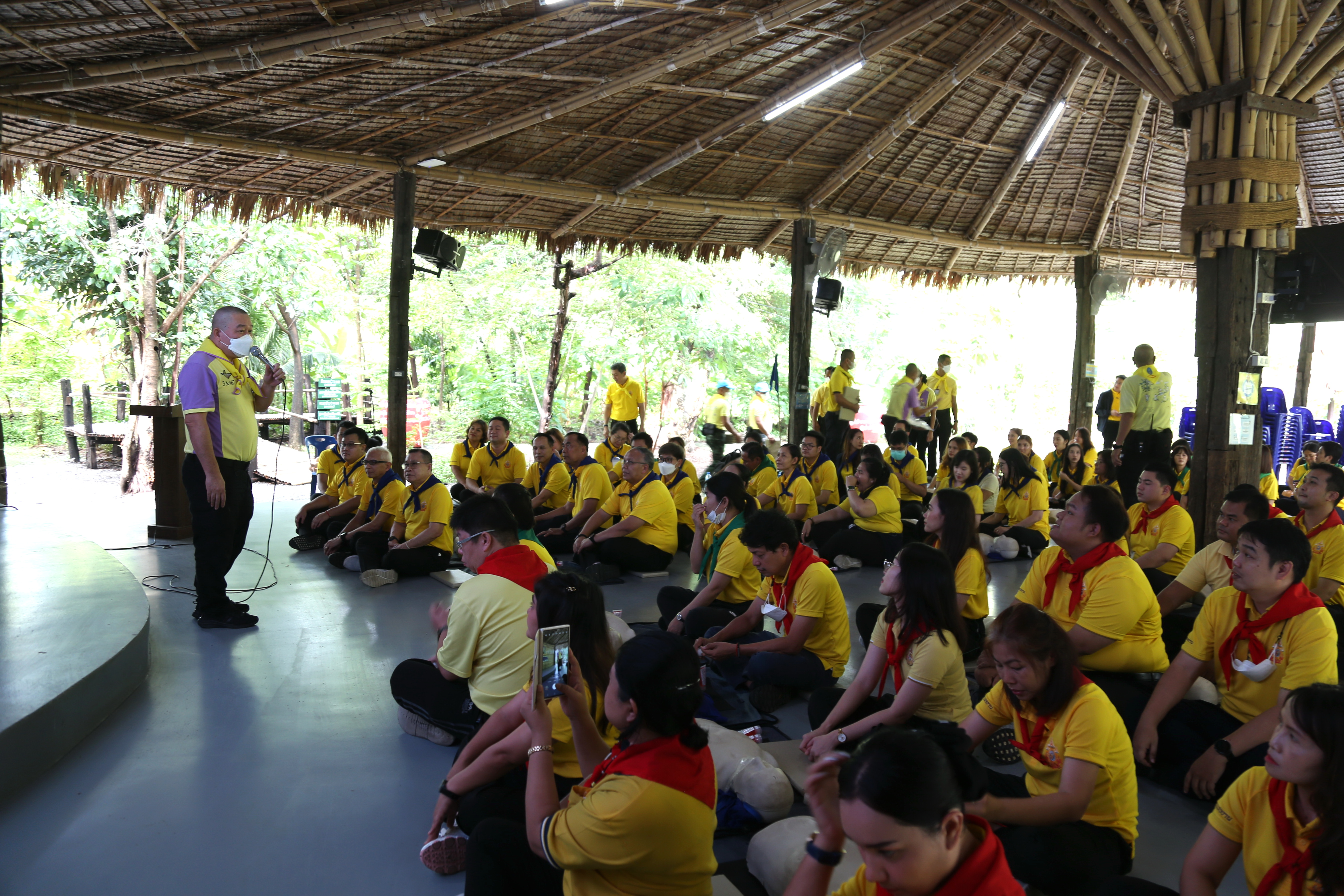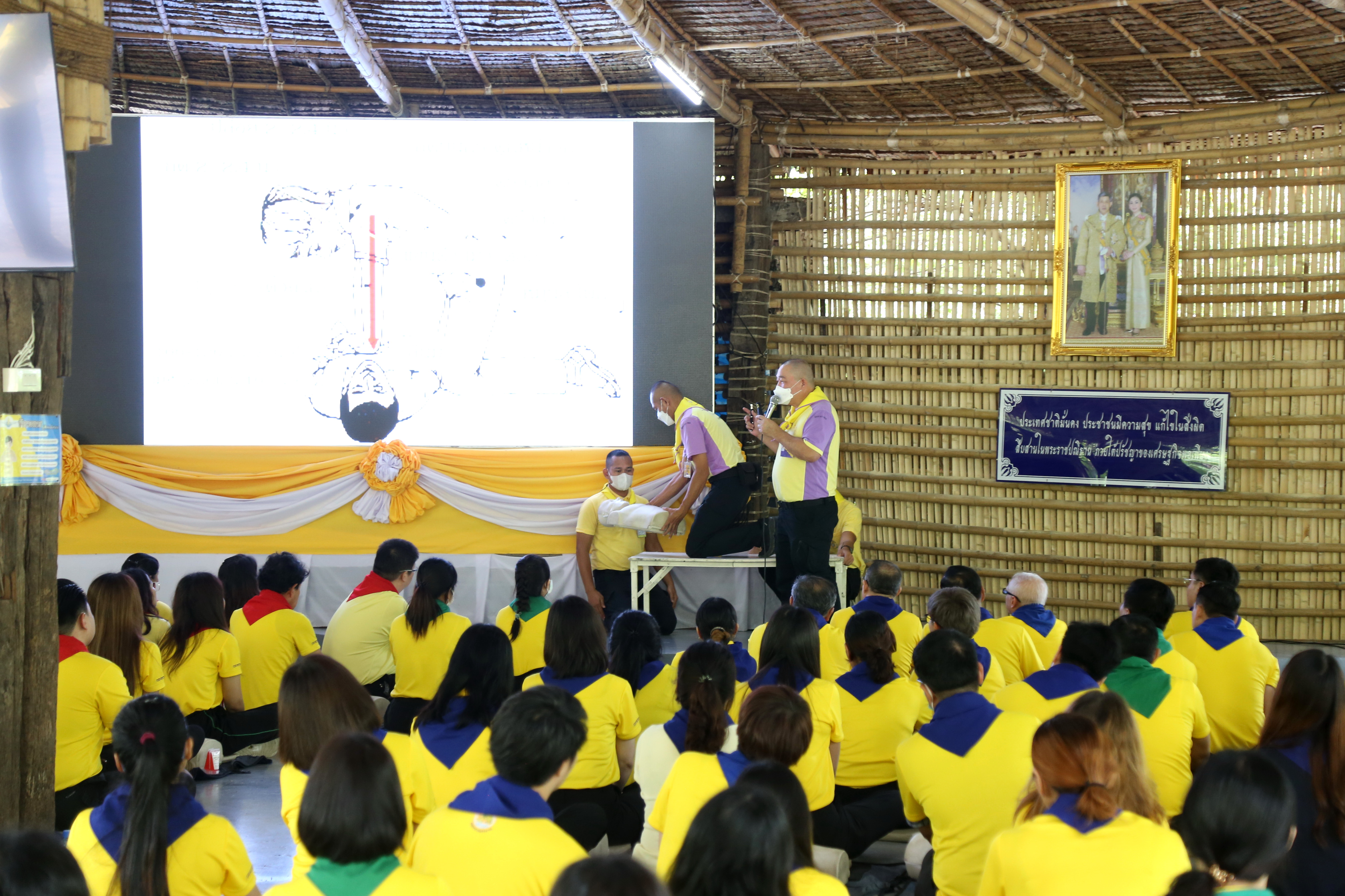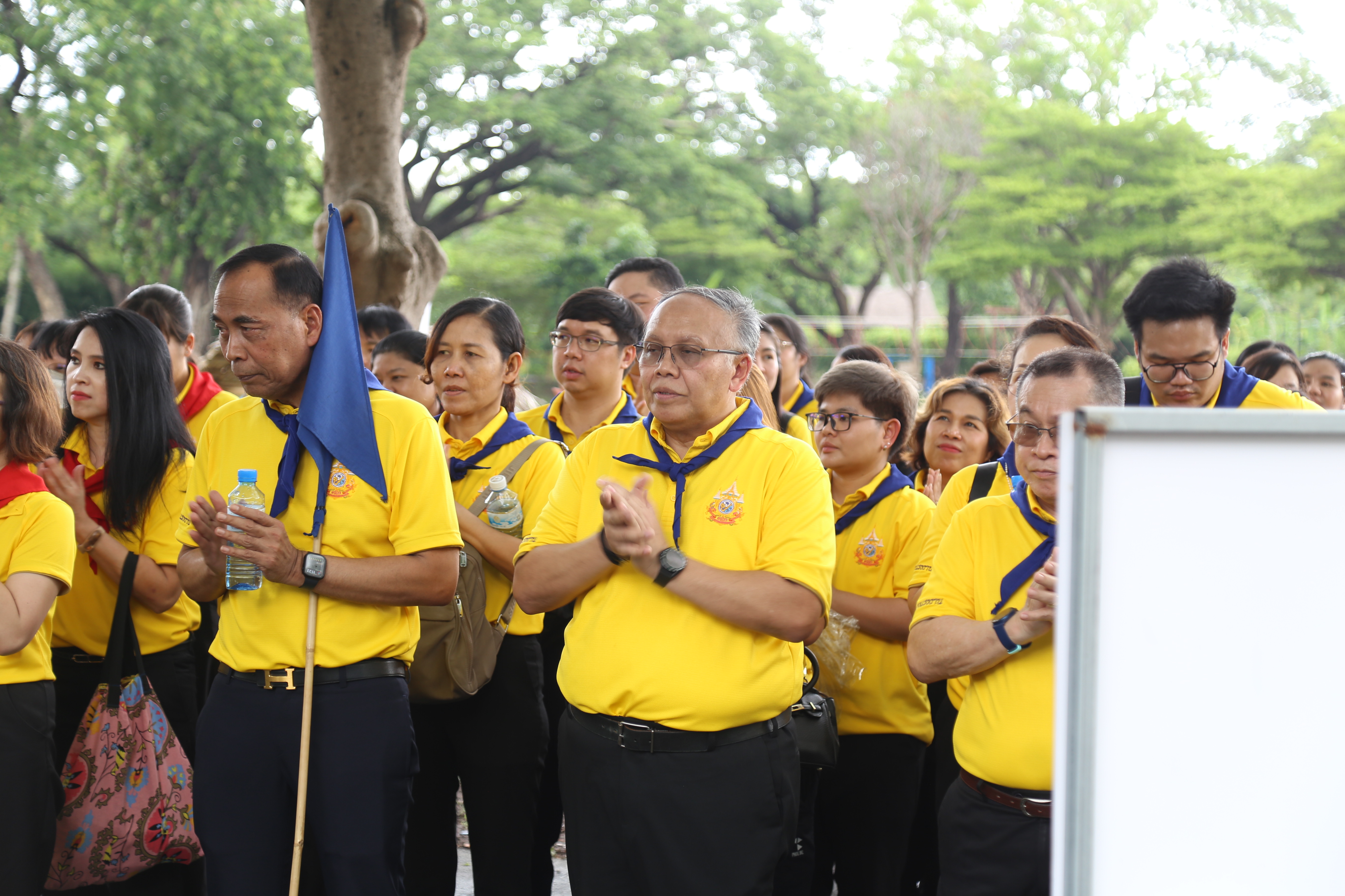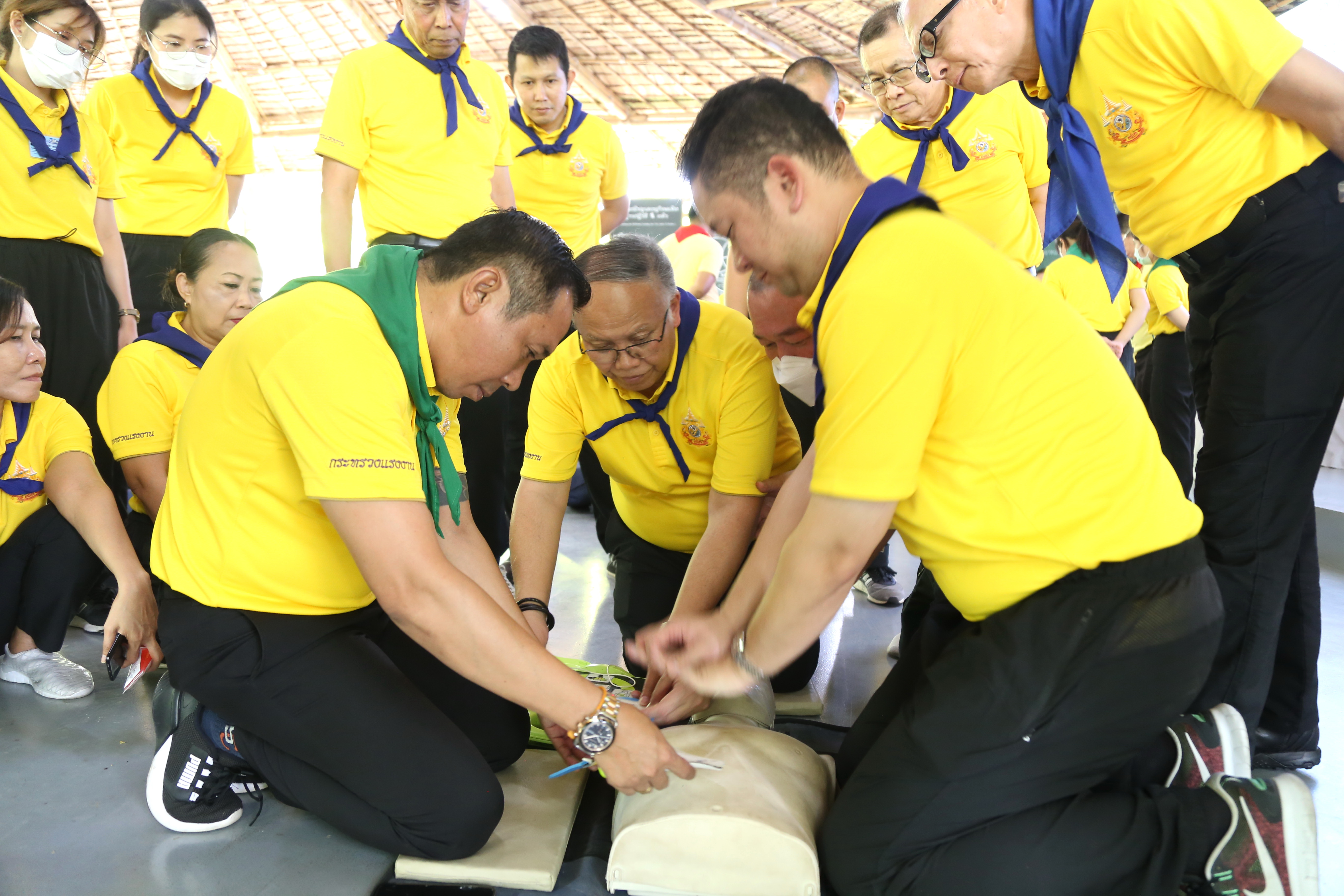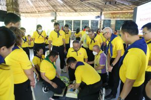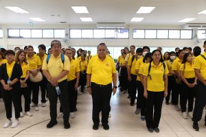 On July 5, 2024, at 07.00 hours, the Assistant to the Labour Minister, Mr. Siraphop Duangsodsri, and the Assistant to the Permanent Secretary of Labour, Mr. Sakdinart Sonthisakyotin, led civil servants and officials under the Ministry of Labour to participate in a project to strengthen morality and ethics according to the Sufficiency Economy Philosophy for personnel under the Ministry of Labour. The effort aims to create good people with good conscience and honour His Majesty the King on the auspicious occasion of His Majesty the King’s 72nd birthday. The occasion took place at the Volunteer School Training Center 904 (Bang Khen), Bangkok.