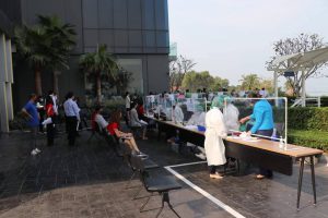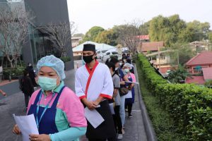 The proactive Covid-19 screening today has received good cooperation from workplaces, department stores, shops factories, and hotels in Si Racha and Mueang districts, which is considered to be an integration of collaboration between the Chonburi Provincial Administration, Social Security Office, and hospitals in the entire network, including Phyathai Hospital and Vibharam Laemchabang Hospital, in sending medical teams, nurses and staff to provide proactive Covid-19 screening to insured persons under Section 33.