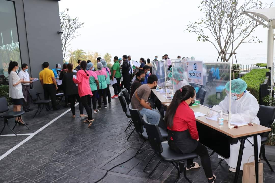 On January 27, 2021, Assistant to the Labour Minister Mr. Surachai Chaitrakulthong visited high-risk areas in Chonburi to carry out proactive Covid-19 screening in the workplace for insured employees under Section 33. The proactive Covid-19 screening for employees in the workplace follows the Labour Minister’s policy. The occasion provided screening at the Novotel and Koh Si Chang hotels for 200 people.