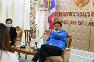 Today (December 29, 2020) at 14.30 hours, at the Chatumongkol Room, 6th floor, Ministry of Labour, Labour Minister Mr. Suchart Chomklin gave an interview with the media on the labour economy the Job Expo Thailand 2020 and managing foreign workers in Thailand amid the Covid-19 situation.