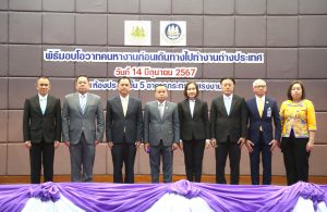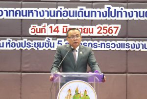 The Secretariat to the Labour Minister, Mr. Aree Krainara, said that working abroad legally creates opportunities for Thai workers to gain experience, have a stable income, and improve their quality of life. Before traveling to work abroad, there must be training for the Thai workers to equip them with knowledge and understanding so that they know the terms and conditions of the employment contract, employment conditions, customs, cultures, and traditions, as well as the channels for requesting help. Workers will understand their entitlements and protection according to the law, which will enable them to work with confidence and be prepared to work. Today, 298 Thai workers received training to prepare them to travel to work in Taiwan; 291 were construction workers and Japanese metal production workers, and seven were agricultural workers or machine parts production workers. The employment agency delivered all workers.