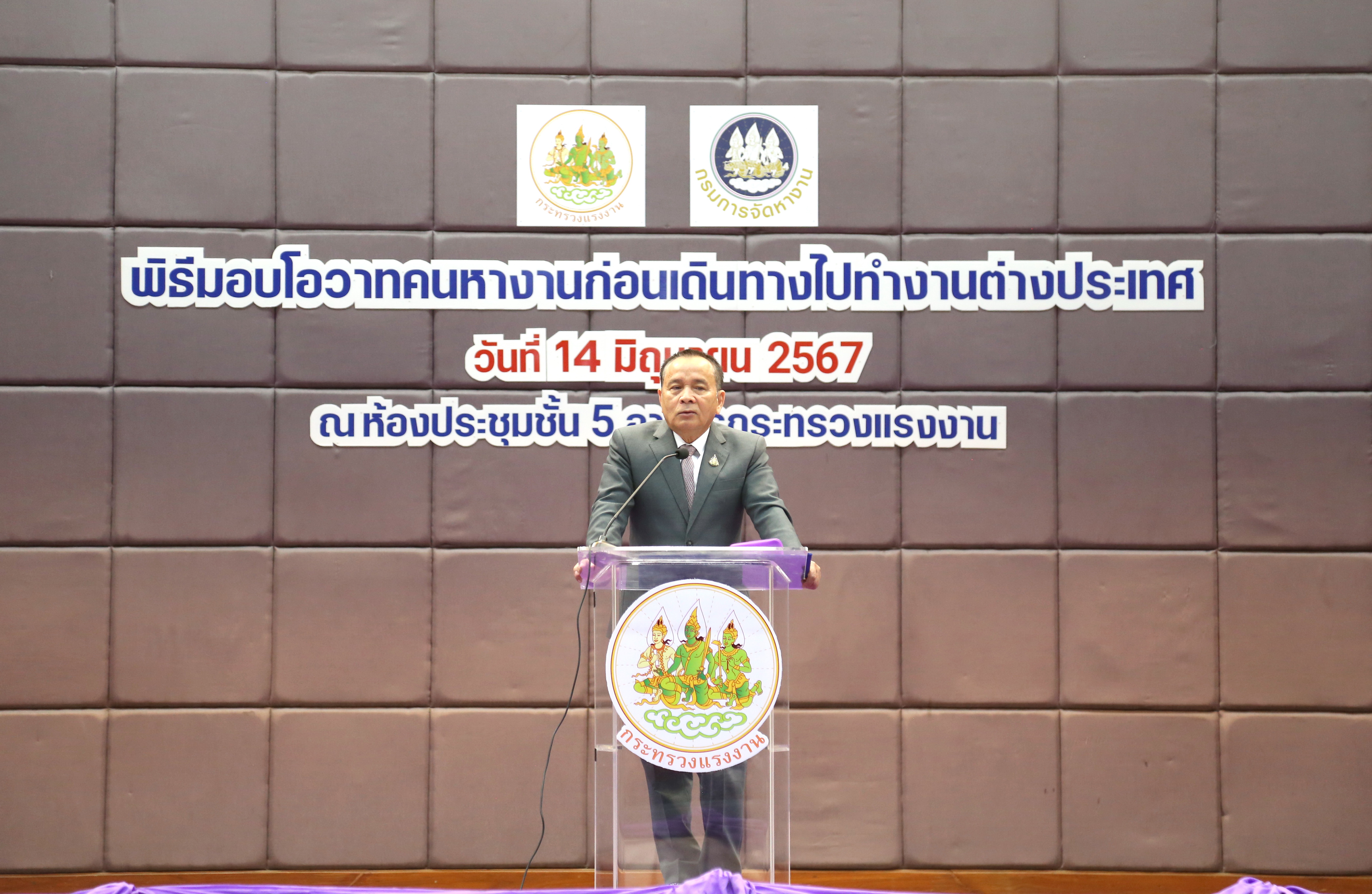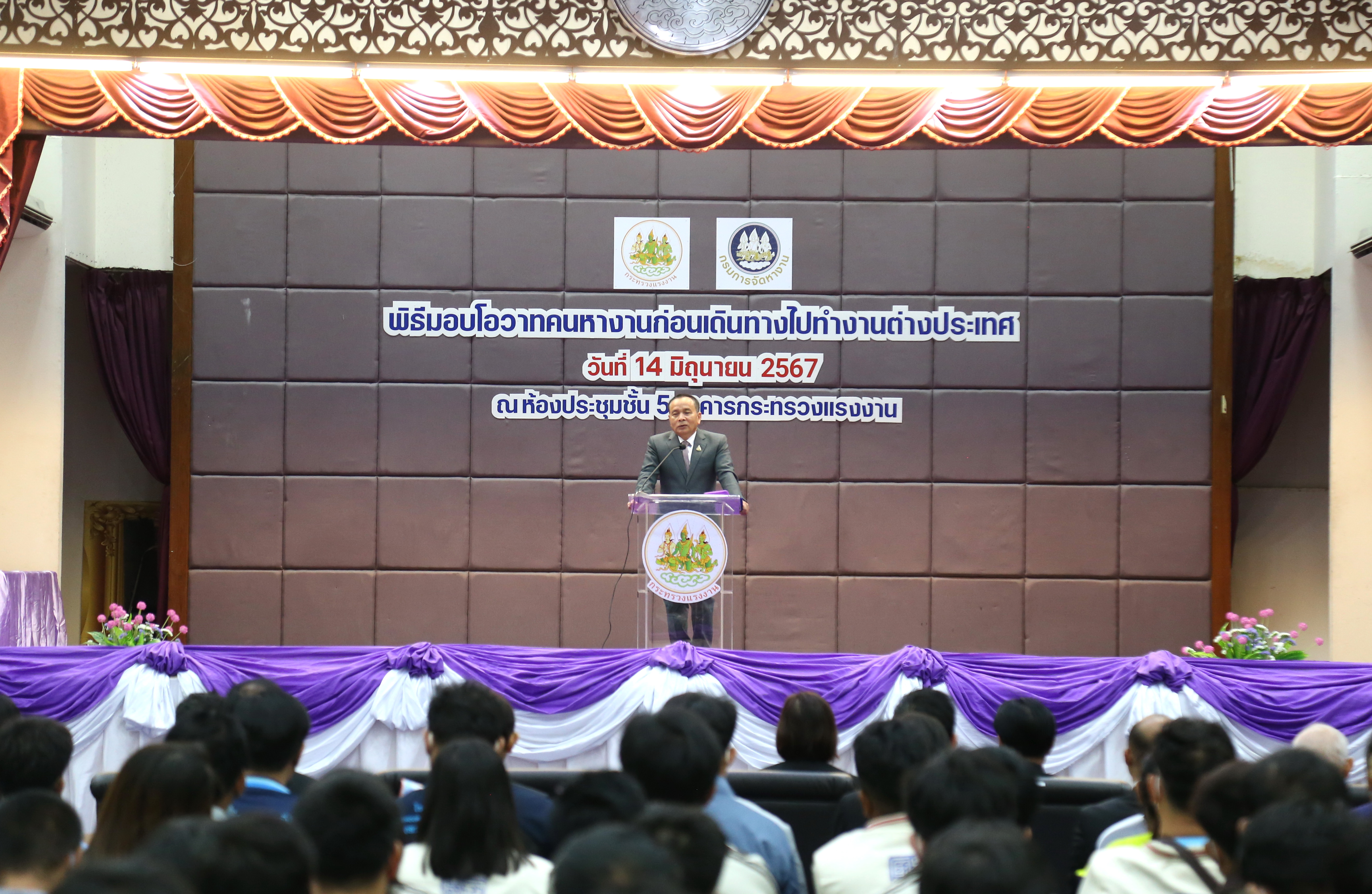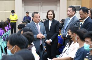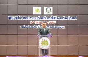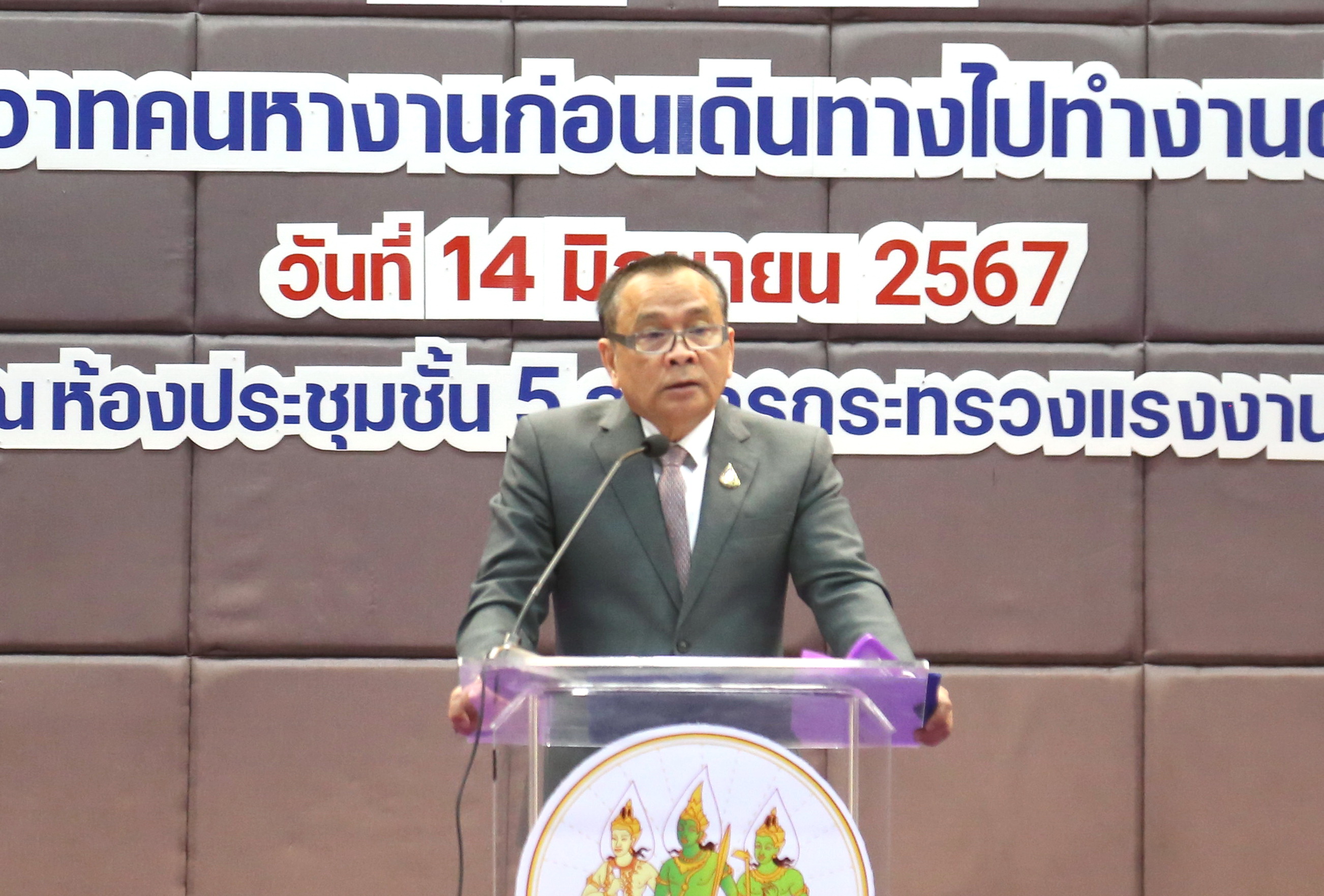 On June 14, 2024, the Labour Minister, Mr. Phiphat Ratchakitprakarn, assigned the Secretariat to the Labour Minister, Mr. Aree Krainara, to pay a visit to give encouragement and advice to 305 Thai workers who received training before traveling to work in Taiwan and Japan. The Ministry of Labour’s Inspector-General, Mrs. Marasri Jairangsi, participated in the visit to give encouragement. The Department of Employment’s Deputy Director-General, Mr. Sibmuenchai Phothisin, gave a report. The Ministry of Labour’s executives and trainees attended the ceremony in the conference room on the 5th floor of the Ministry of Labour.