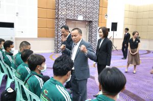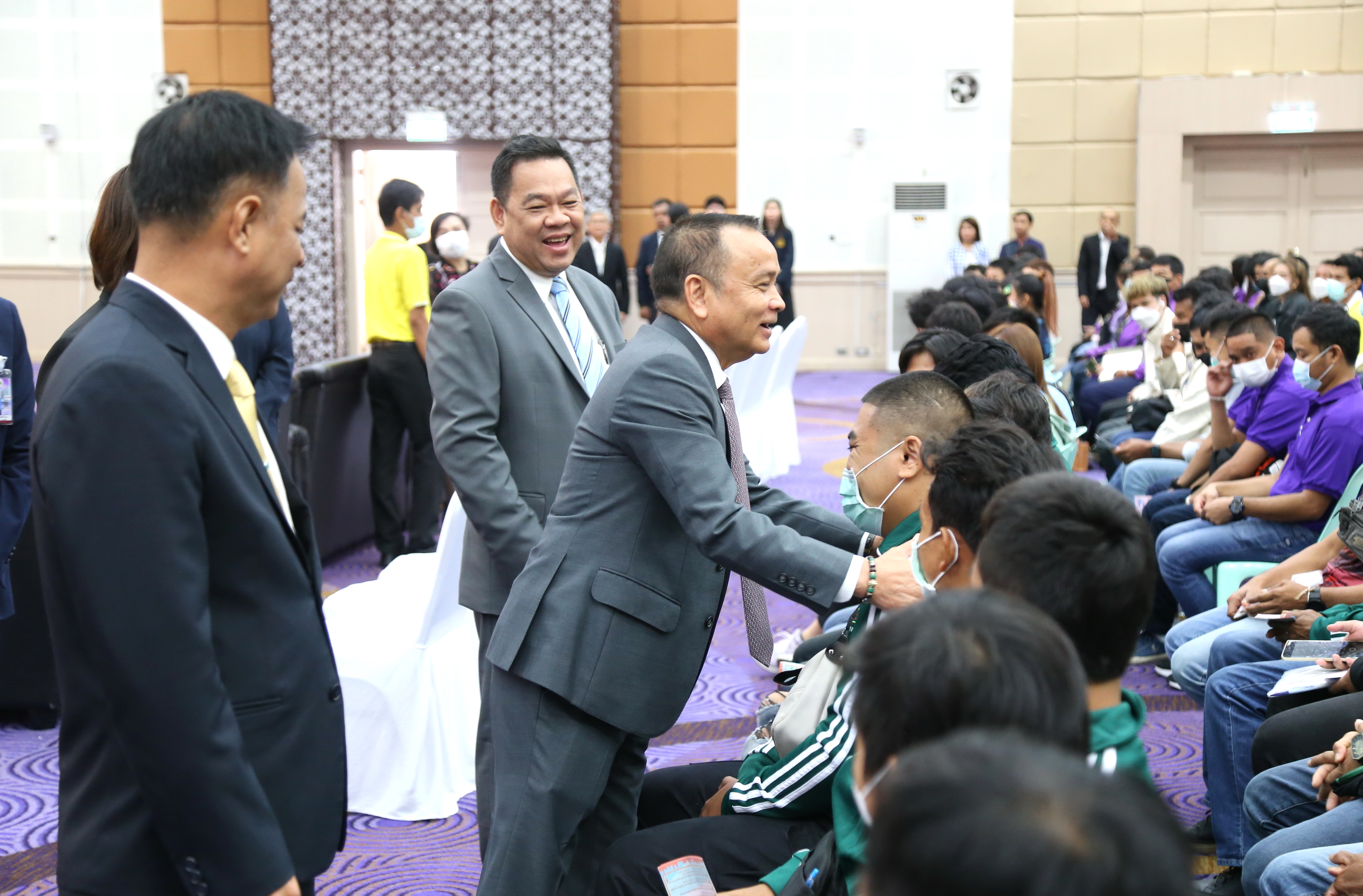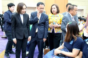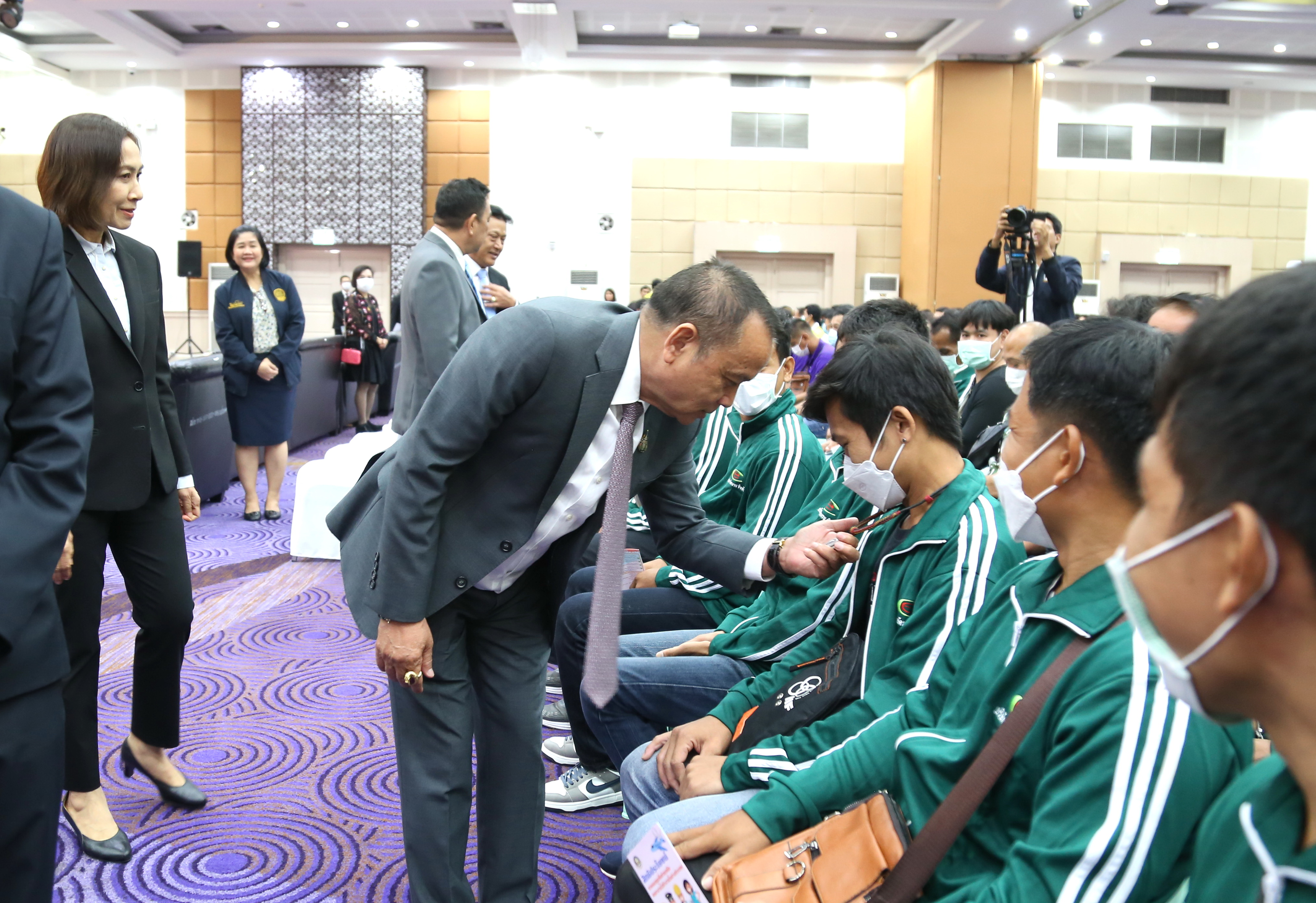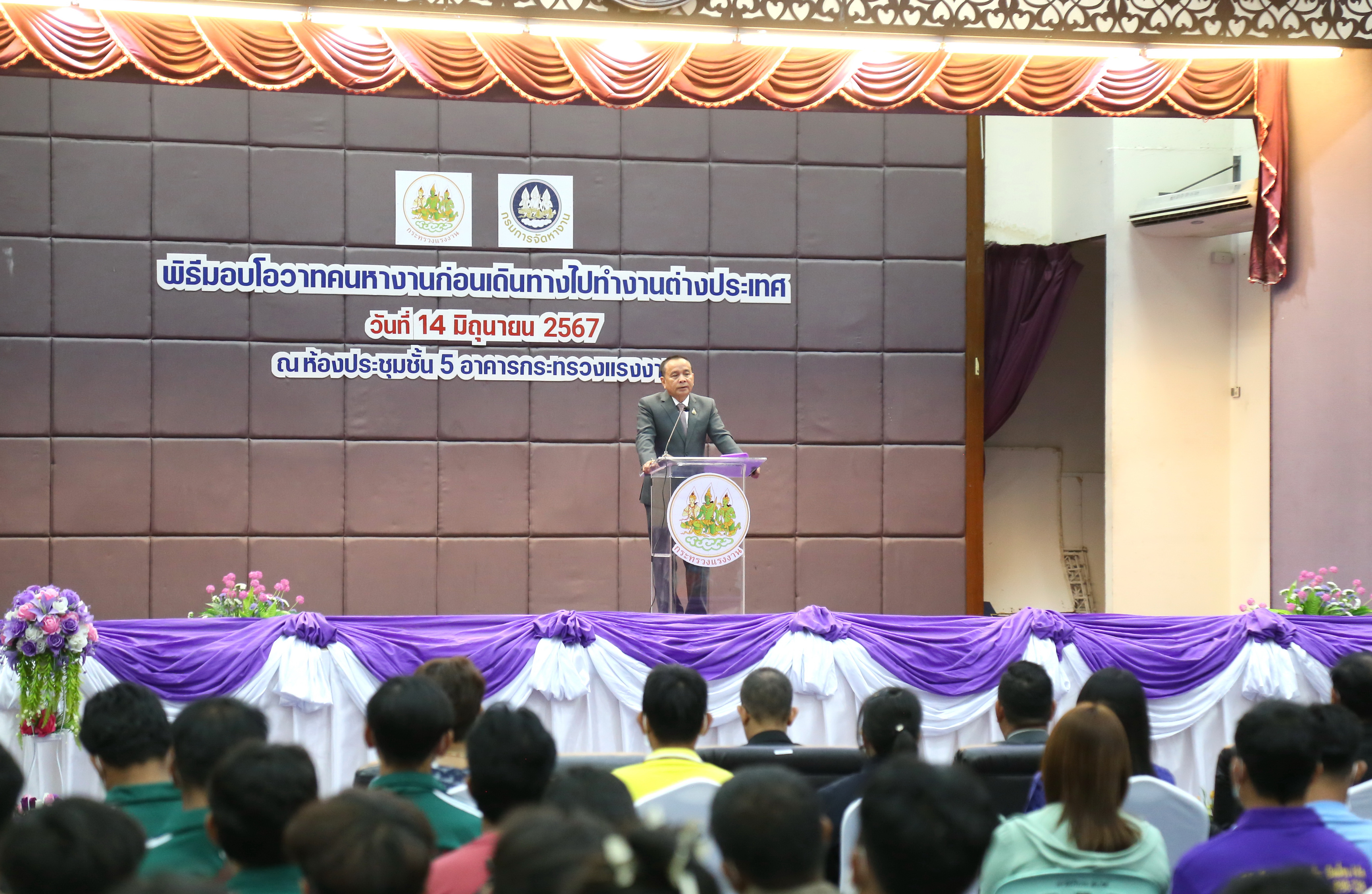 On June 14, 2024, the Labour Minister, Mr. Phiphat Ratchakitprakarn, assigned the Secretariat to the Labour Minister, Mr. Aree Krainara, to pay a visit to give encouragement and advice to 305 Thai workers who received training before traveling to work in Taiwan and Japan. The Ministry of Labour’s Inspector-General, Mrs. Marasri Jairangsi, participated in the visit to give encouragement. The Department of Employment’s Deputy Director-General, Mr. Sibmuenchai Phothisin, gave a report. The Ministry of Labour’s executives and trainees attended the ceremony in the conference room on the 5th floor of the Ministry of Labour.