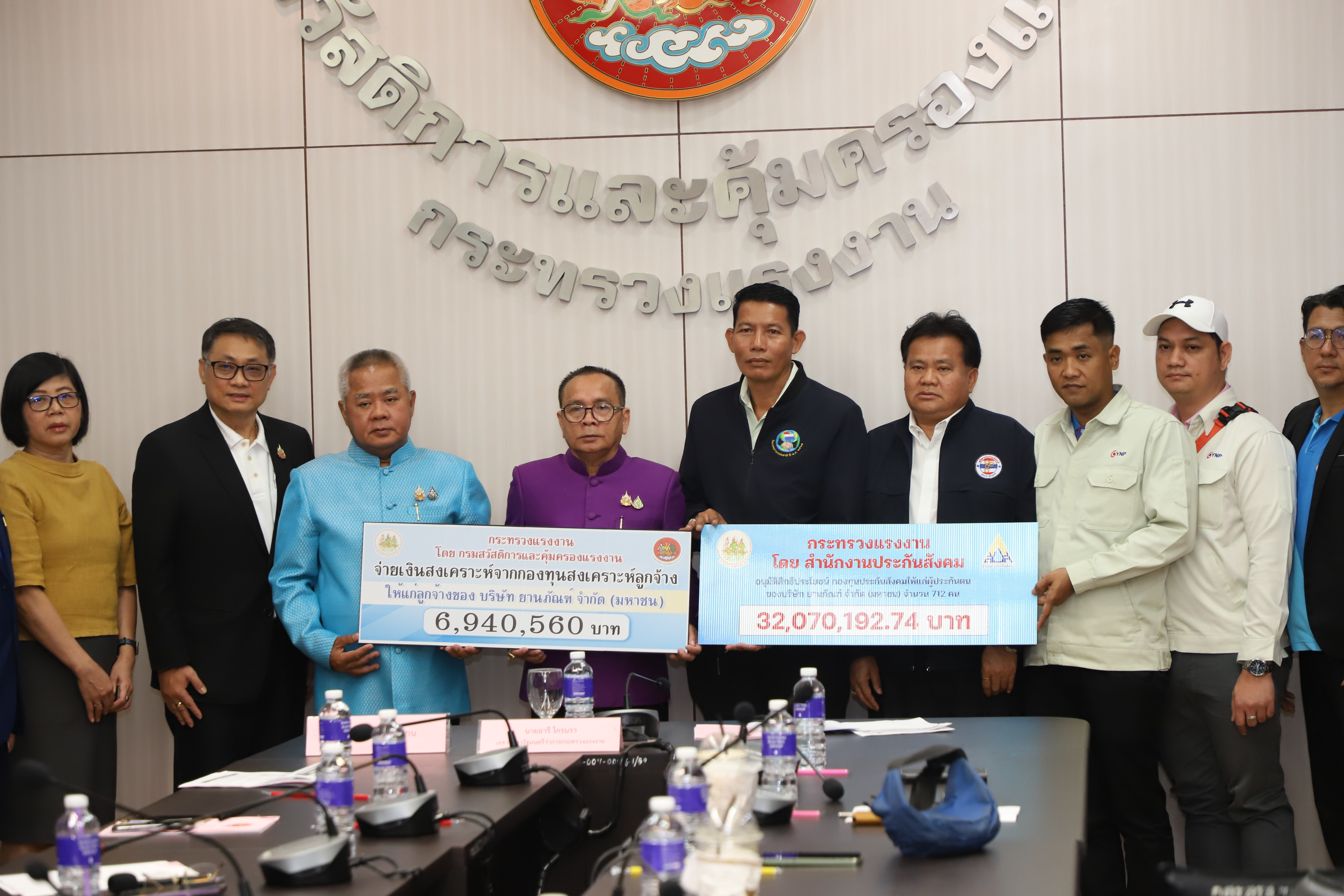 On January 24, 2025, at 09.00 hours, Mr. Phiphat Ratchakitprakarn, Minister of Labour, showed concern for workers being laid off and urged agencies under the Ministry of Labour to support affected workers to enable them to continue their livelihood after being laid off and to monitor the mass layoffs of companies, so that if layoffs occur, they can provide timely assistance and compensation to employees. The Labour Minister assigned Mr. Aree Krainara, the Secretariat to the Labour Minister, to present welfare compensation from the Employee Welfare Fund and unemployment benefits to employees of Yarnapund Company Limited (Public Company). Mr. Boonsong Thapchaiyut, the Permanent Secretary of Labour, Lieutenant Commander Saroj Khomkhai, the Director-General of the Department of Labour Protection and Welfare, executives of the Department of Labour Protection and Welfare, the Social Security Office, the Department of Employment, employee representatives of Yarnapund Company Limited (Public Company), the Chairman of the Council, Advisors and the Executive Board of the Automotive Labour Organization Council of Thailand, joined the occasion at the Labour Relations Committee Meeting Room, 1st Floor, Ministry of Labour.