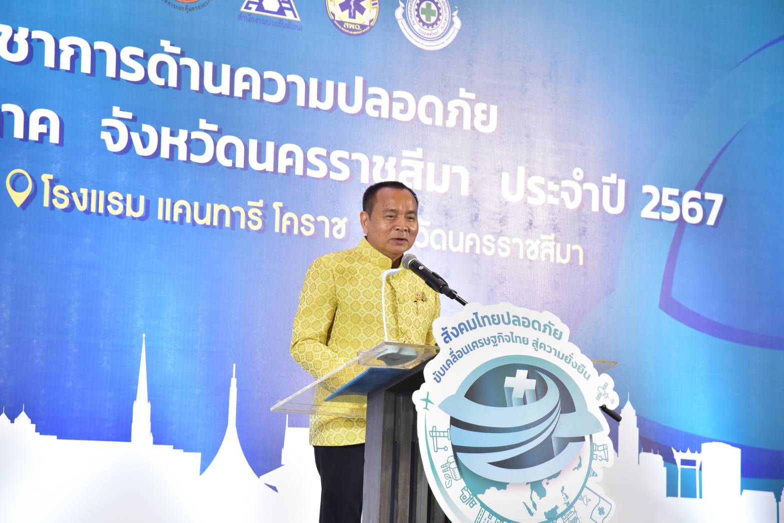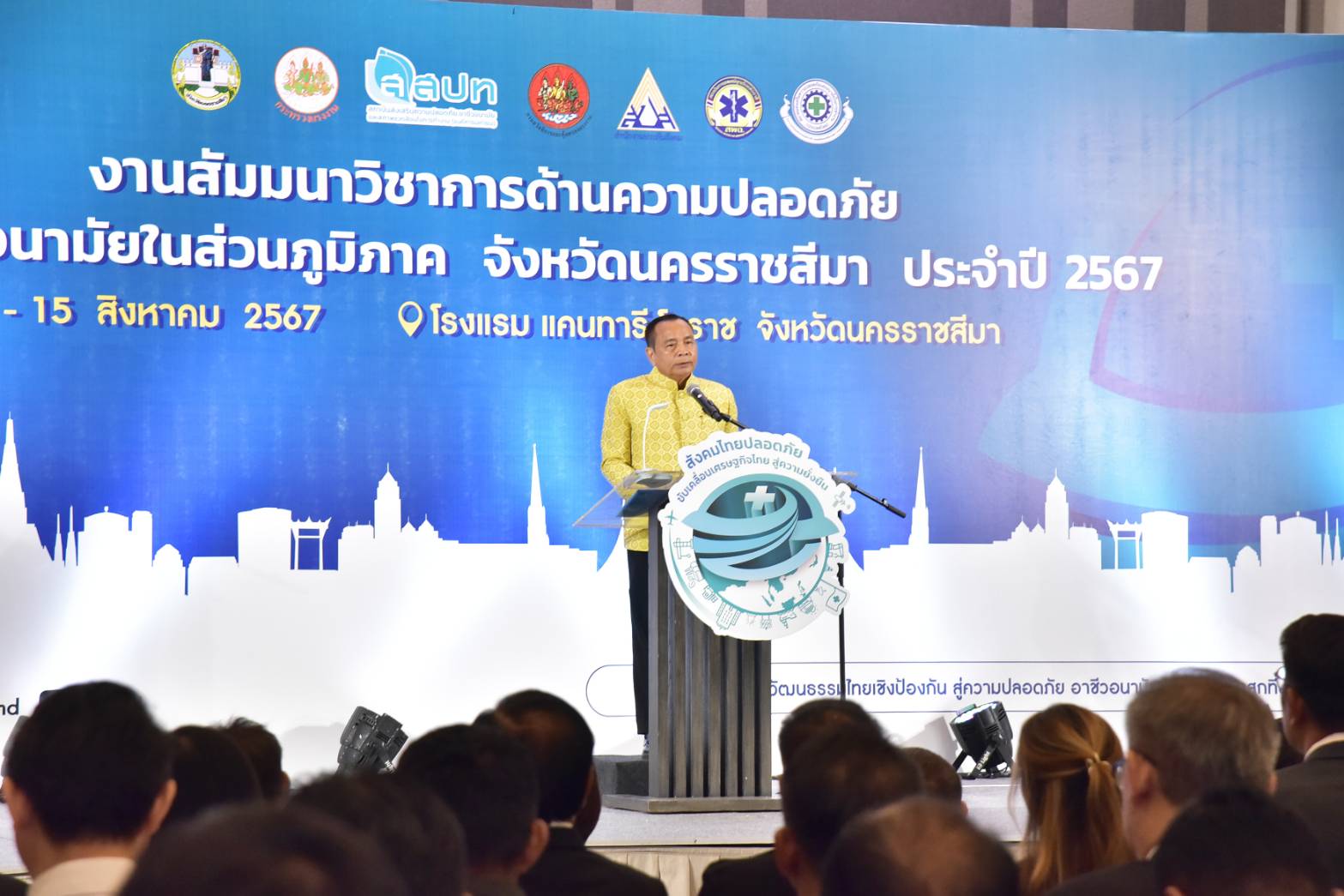 The Labour Minister, Mr. Phiphat Ratchakitprakarn, assigned the Secretariat to the Labour Minister, Mr. Aree Krainara, who commence the academic seminar on occupational health and safety in the region in Nakhon Ratchasima Province, for 2024. The occasion took place at Lam Takong Room, Kantary Hotel, Korat, Nakhon Ratchasima Province. The Deputy Governor of Nakhon Ratchasima Province, Mr. Suraphan Silpasuwan, gave a welcoming speech. The Director of the Thailand Institute Of Occupational Safety And Health (Public Organization), Mr. Nantachai Panyasurarit, reported the event’s objectives. The heads of government agencies under the Ministry of Labour in Nakhon Ratchasima Province joined in giving a welcome, emphasizing that workplaces must strictly control workplace safety at all levels.