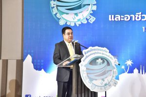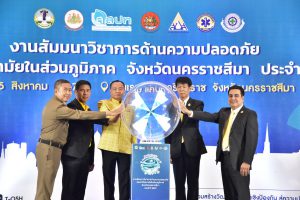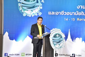 The Secretariat to the Labour Minister, Mr. Aree Krainara, was interviewed by the media on the issue of workplace safety. He said that the northeastern region, namely Nakhon Ratchasima and Khon Kaen Provinces, is currently constructing an elevated railway through the city to accommodate the expansion of the town. Therefore, in organizing the seminar on occupational health and safety in the region in Nakhon Ratchasima Province, TOSH focuses on the seminar topic of “construction safety,” including guidelines on the rights of all workers, which will make everyone safe 24 hours a day, because safety does not only happen in the factory but can happen anywhere.