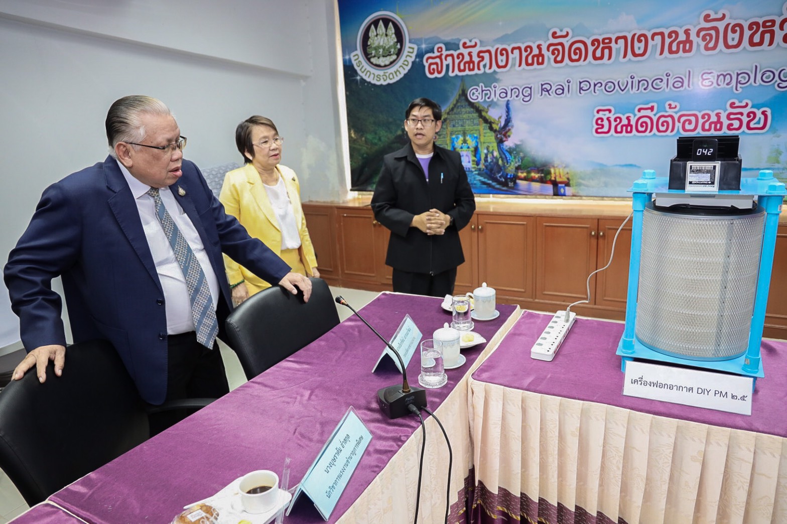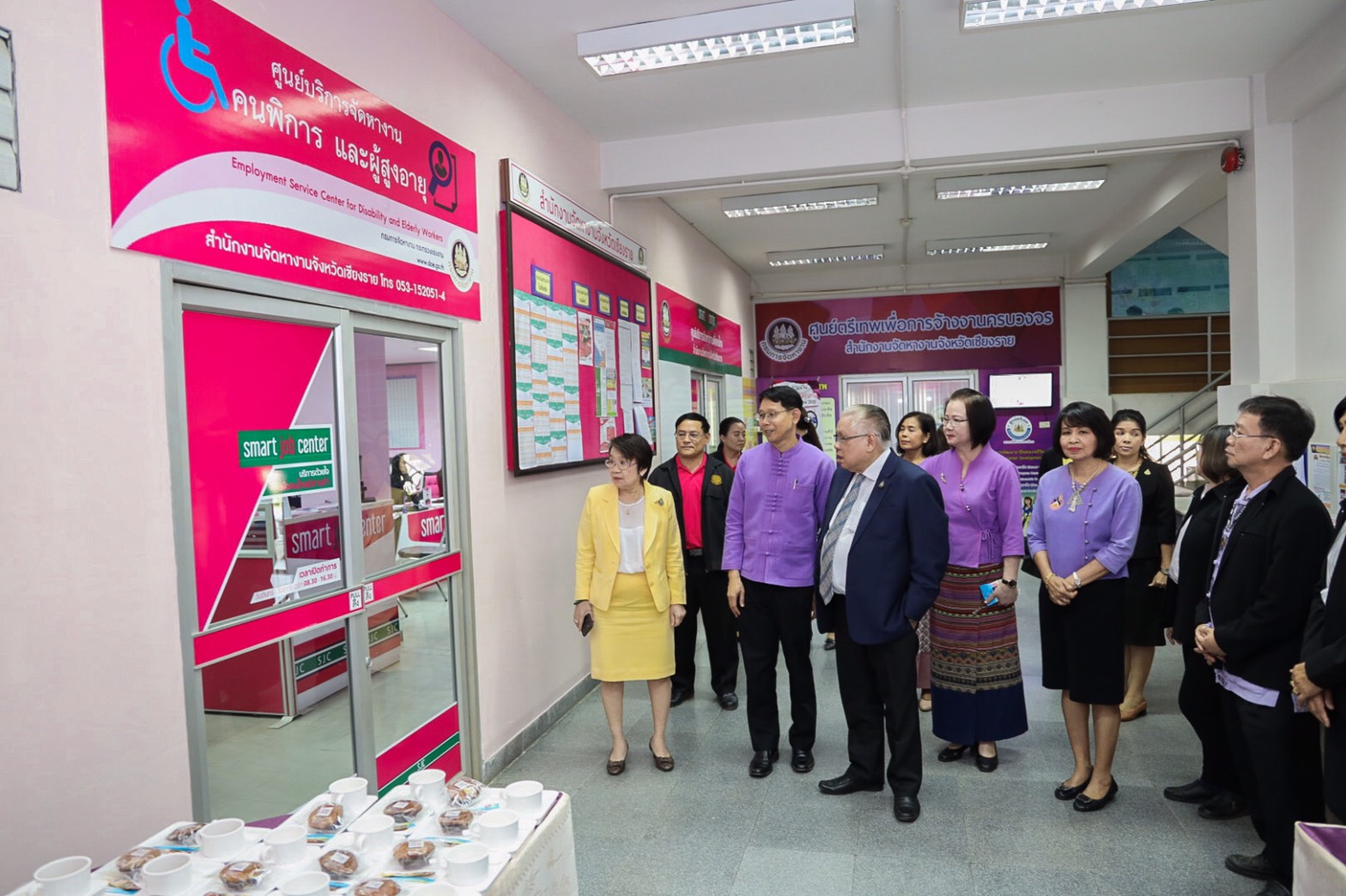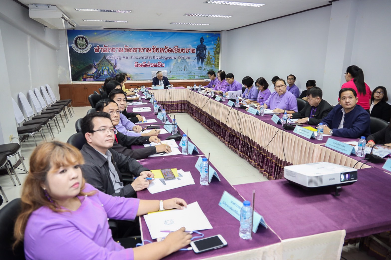 Today (February 19, 2020) at 15.00 hours, Secretariat to the Labour Minister Lt. Gen. Nuntadech Meksawat and Deputy Permanent Secretary of Labour Mrs. Thienrat Nawamawat, visited the Chiang Rai Social Security Office, and the Employment Service Center for the Disabled and Elderly, Chiang Rai Employment Office. The Secretariat to the Labour Minister chaired the meeting to give policies to agencies under the Ministry of Labour in Chiang Rai and listen to the results of agencies under the Ministry of Labour for the first quarter of 2020. Chiang Rai Provincial Labour Officer Mr. Chalermpol Niumsakul and the heads of government departments under the Ministry of Labour welcomed the visiting committee and reported the results of work under the Ministry of Labour’s mission and Labour Minister’s urgent matters. The meeting took place at the meeting room of the Chiang Rai Employment Office, 2nd floor, Ministry of Labour’s Government Center.