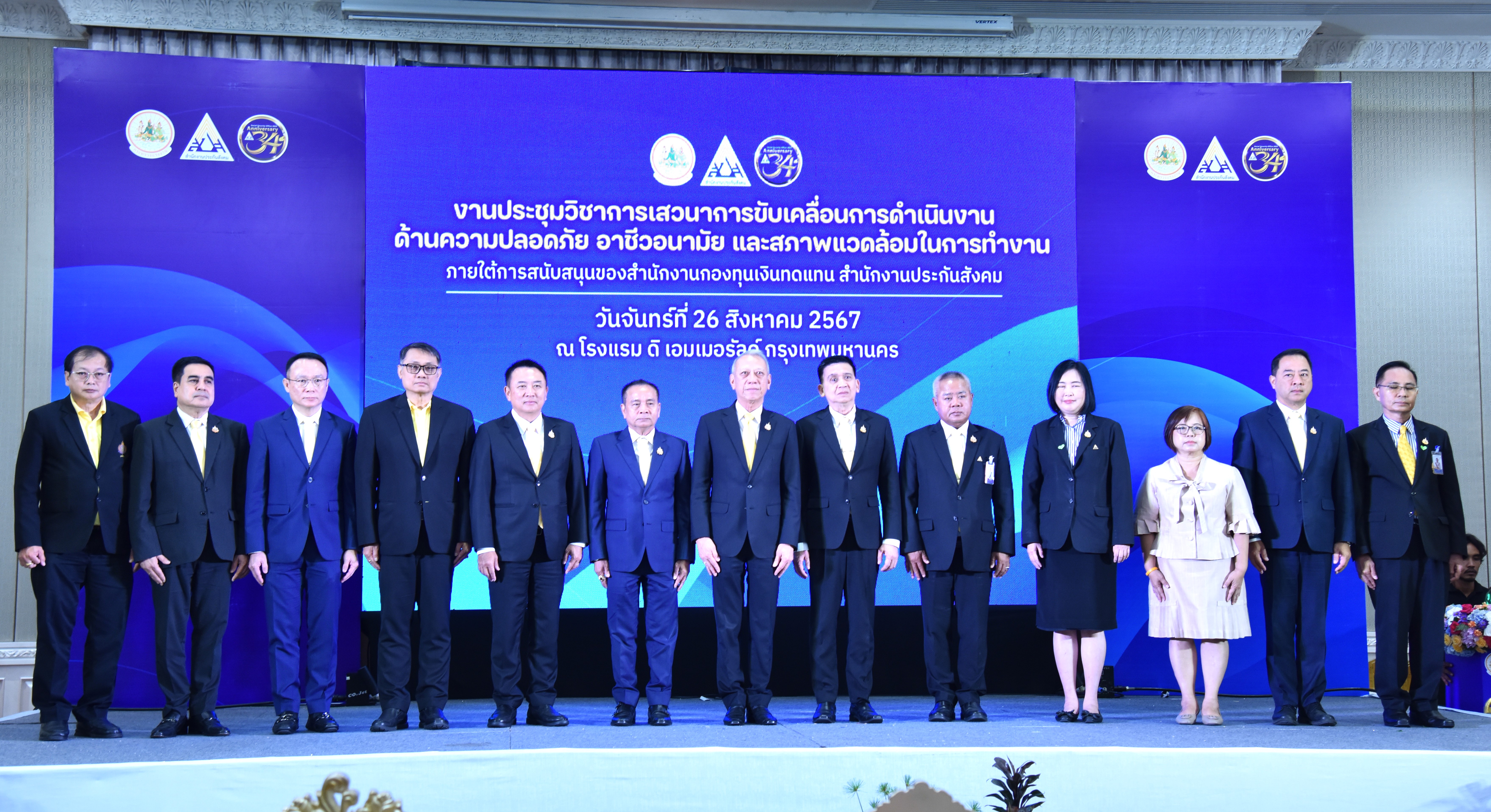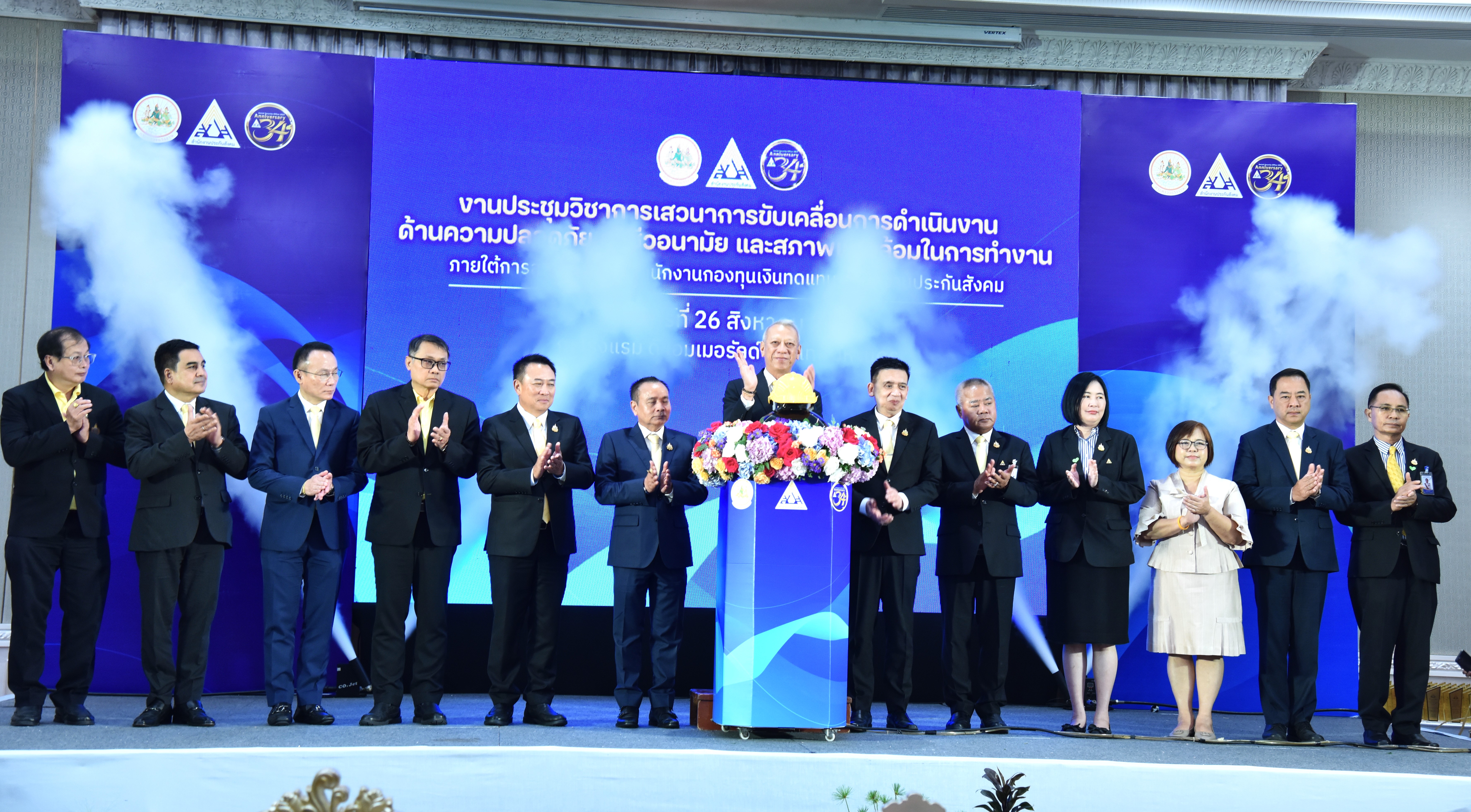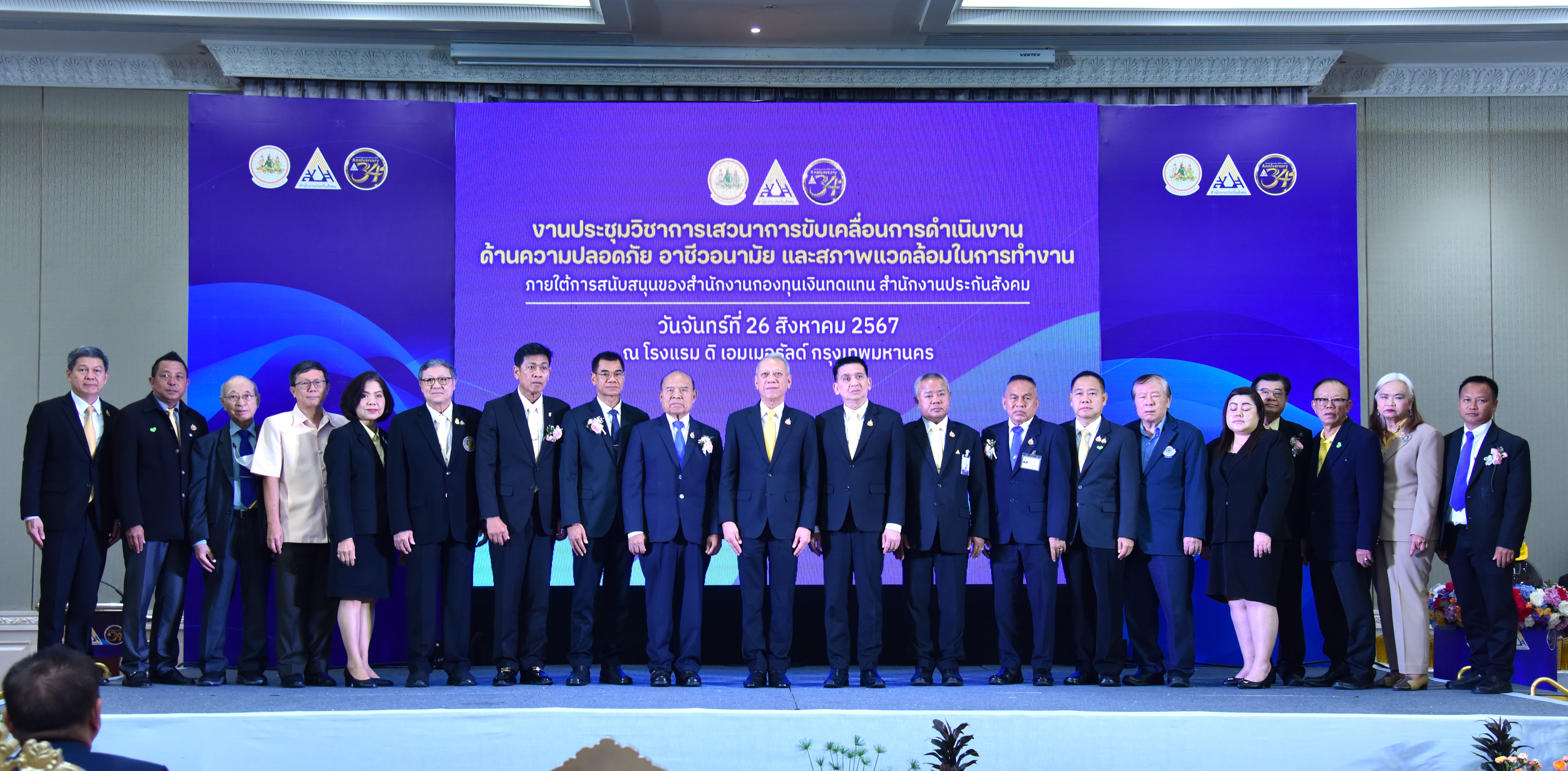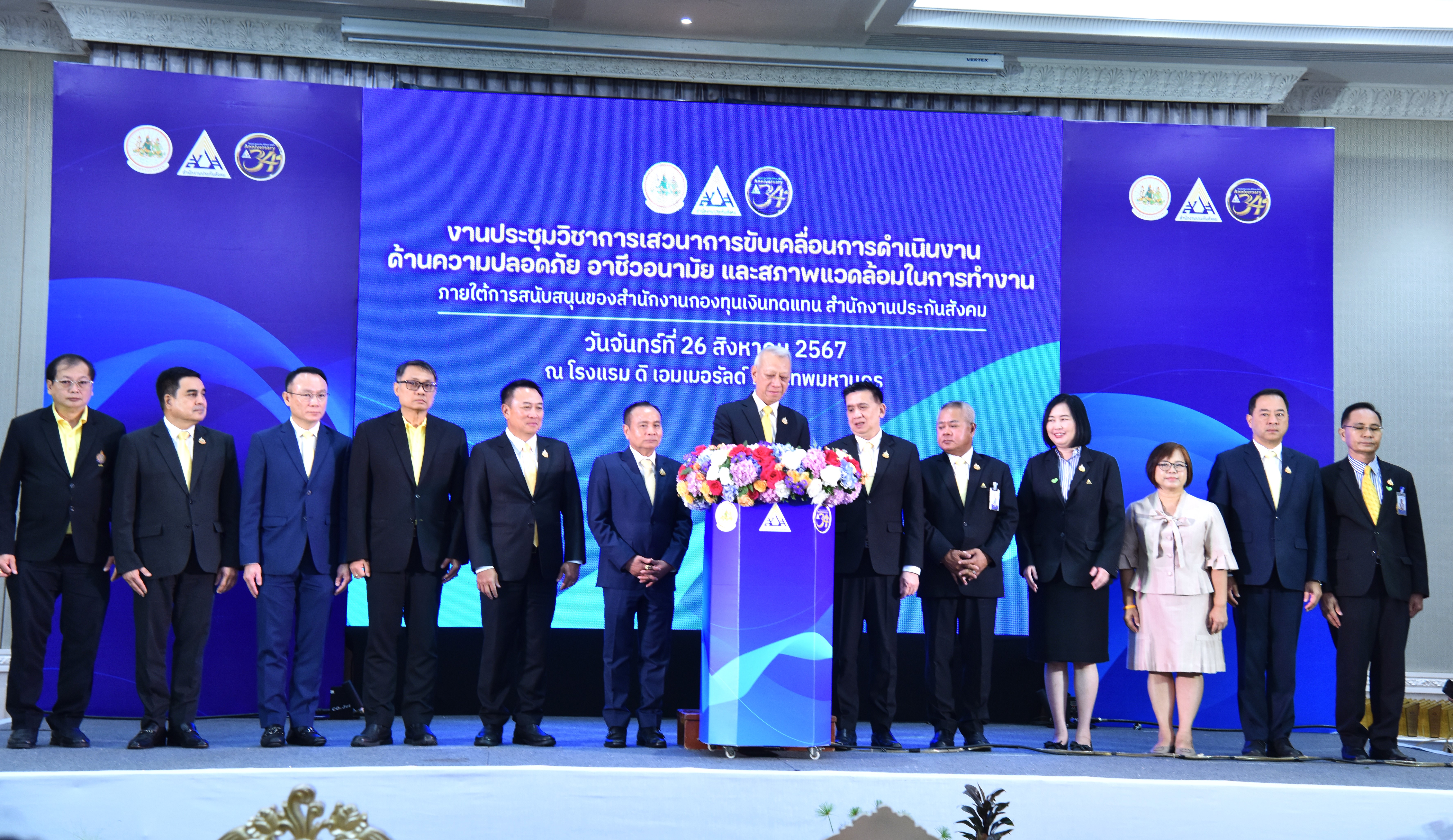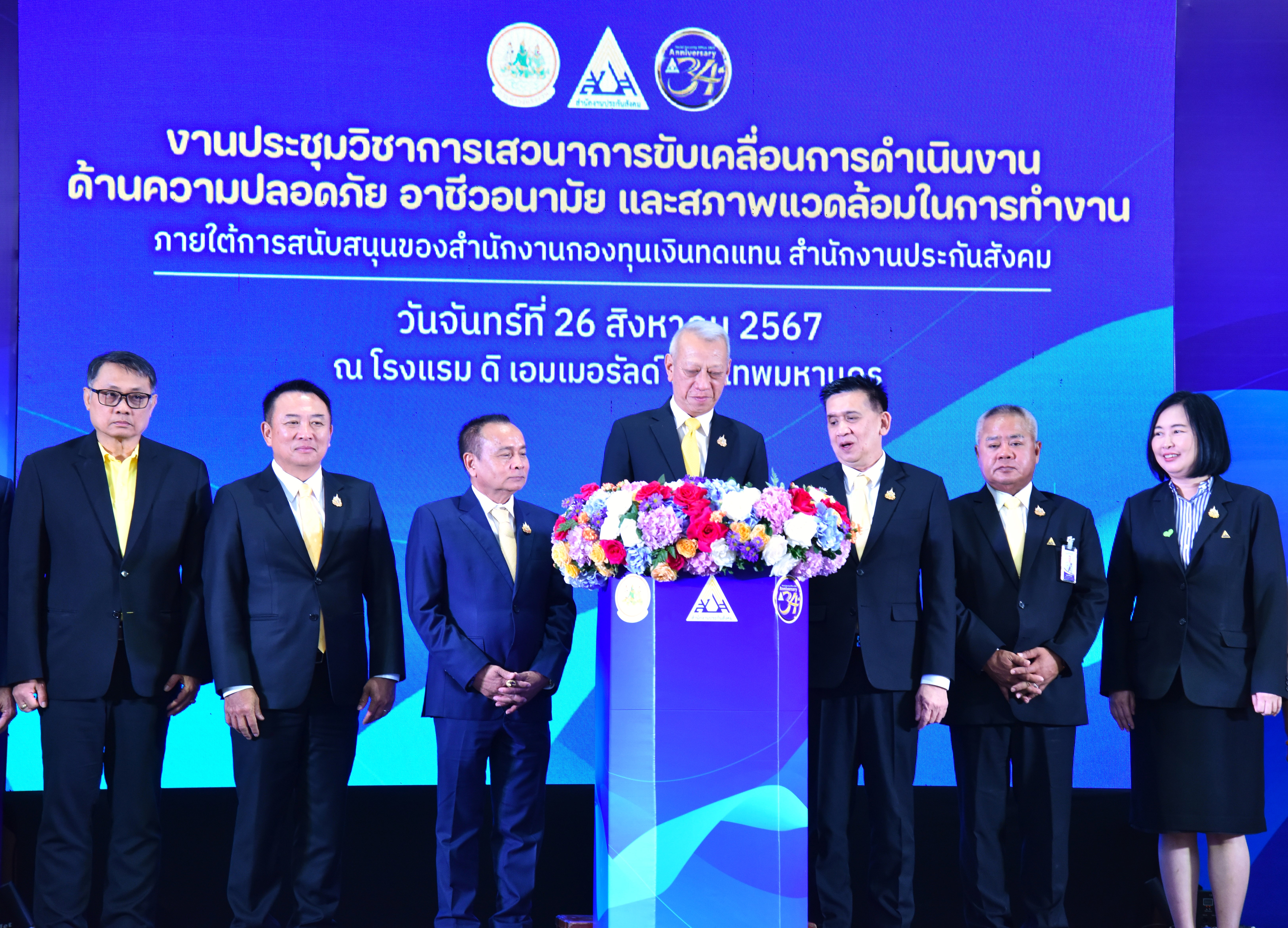 On August 26, 2024, at 10:00 a.m., Mr. Phiphat Ratchakitprakarn, Minister of Labor, presided over the opening of a seminar on “Driving Occupational Safety, Health, and Work Environment Operations” supported by the Workmen’s Compensation Fund (Central and Eastern Regions). The event was attended by Mr. Aree Krainara, Secretary to the Minister of Labor; Mr. Pairoj Chotikasathien, Permanent Secretary of the Ministry of Labor; Mr. Boonsong Thapchaiyut, Secretary-General of the Social Security Office, and other senior officials of the Ministry of Labor. The seminar took place in the Grand Ballroom on the 3rd floor of The Emerald Hotel, Din Daeng District, Bangkok.