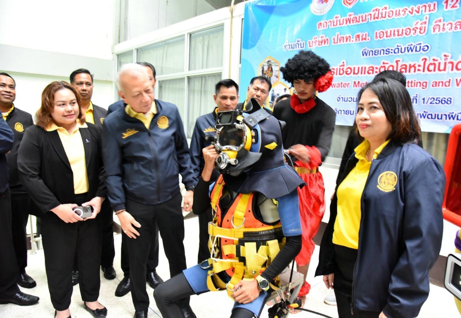 On November 9, 2024, at 3:00 p.m., Mr. Phiphat Ratchakitprakarn, Minister of Labor, presided over the award ceremony for the winners of the welding competition in the petrochemical industry and visited skills enhancement training in three courses. The courses included: 1) Underwater Metal Cutting and Welding with Electricity, in collaboration with PTTEP Energy Development Co., Ltd.; 2) Manual Metal Arc Welding of Butt-Joint Pipes to International Standards; and 3) Level 3 Home and Small Commercial Air Conditioning Technician, in collaboration with Eminent (Thailand) Co., Ltd. Executives from the Ministry of Labor also participated in the visit at the Songkhla Skills Development Institute Region 12, Mueang Songkhla District, Songkhla Province.