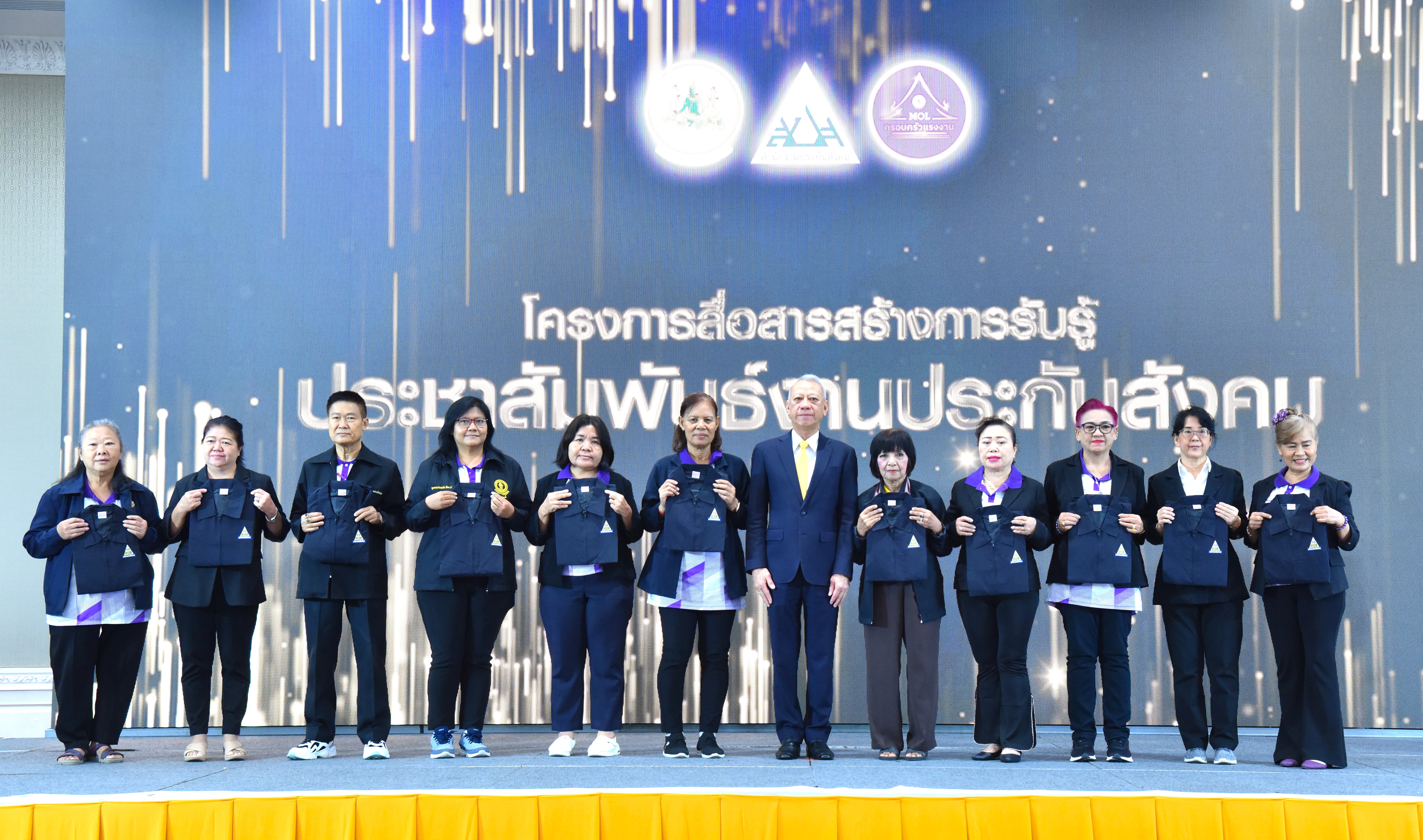Mr. Boonsong Thapchaiyut, Permanent Secretary of the Ministry of Labour stated that there are over 11 million Section 40 insured persons nationwide, with over 25,000 social security network representatives and 247,000 members of the “Baworn” network (households, temples, schools, and factories). The Ministry of Labour, through the Social Security Office, prioritizes communication and raising awareness about social security benefits and tasks to inform the public, volunteer workers, and local networks. This event is part of the Ministry’s efforts to achieve this goal.