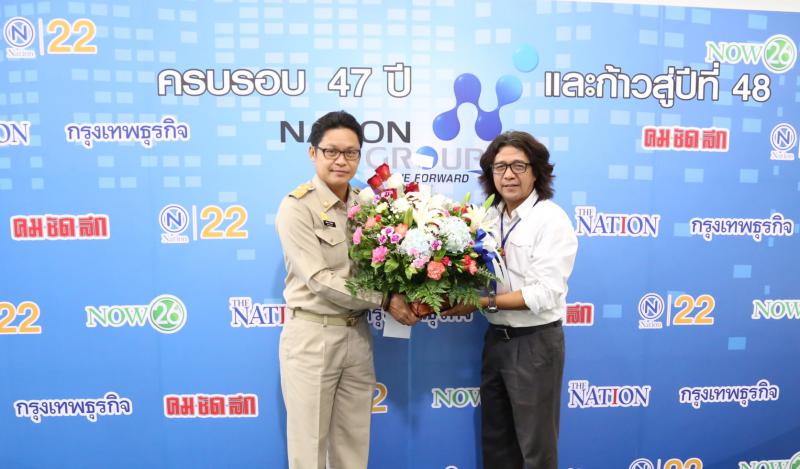 Mr. Chalermpon Niamsakul, Director of Public Relations and Public Relations Division, was the representative of Ministry of Labor to give flowers to congratulate on the 47th anniversary and step into the year 48 of the Nation newspaper on the 1st floor, National University, Bangkok.