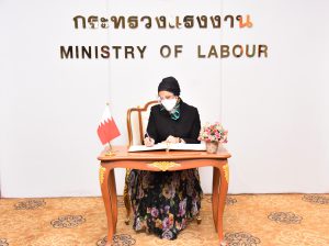 Mr. Surachai said that the Ministry of Labour is pleased that Thailand and Bahrain have maintained strong relations for over 45 years. Currently, approximately 1,000 Thai workers in Bahrain are working in the service sector, industrial sector, and commercial sector. There will be more opportunities in the future that drive the economy and align with the policy of Bahrain’s development. He said that the Ministry of Labour thanks Bahrain for taking good care of Thai workers. The Thai government and the Ministry of Labour are ready to fully cooperate and support the work of the Ambassador to strengthen labour relations between Thailand and Bahrain for the benefit of the economic and social development of both countries and to work together to overcome the COVID-19 crisis together.