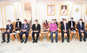 On May 17, 2022, at 10.00 hours, Labour Minister Mr. Suchart Chomklin assigned Assistant to the Labour Minister Mr. Surachai Chaitrakulthong to welcome H.E. Ms. Muna Abbas Mahmood Radhi, Ambassador Extraordinary and Plenipotentiary of the Kingdom of Bahrain to Thailand. She met with the Labour Minister to discuss labour market expansions in Bahrain, the visa facilitation for Thai workers, measures taken by Bahrain to prevent and resolve illegal labour problems, and awareness among businessmen and investors to operate in Thailand. Advisor to the Labour Minister Dr. Thongyu Kongkhan and Air Chief Marshal Fuengsak Ruangkol, Assistant to the Permanent Secretary of Labour, Mr. Samat Pattamasukon, and the Ministry of Labour’s executives joined the welcoming at the Chatumongkol Room, 6th floor, Ministry of Labour.