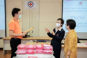 Today (April 23, 2020) at 10.00 hours, Deputy Permanent Secretary of Labour Mrs. Theanrat Nawamawat joined the Managing Director of King Pack Industrial Co., Ltd. Mr. Tawee Chulsakulsakun to donate 102,000 plastic zipper bags to the Director of the Office of the Thai Red Cross Mrs. Sunantha Sornanusin and committee at the meeting room on the 4th floor, Chalerm Buranon Building, Thai Red Cross.