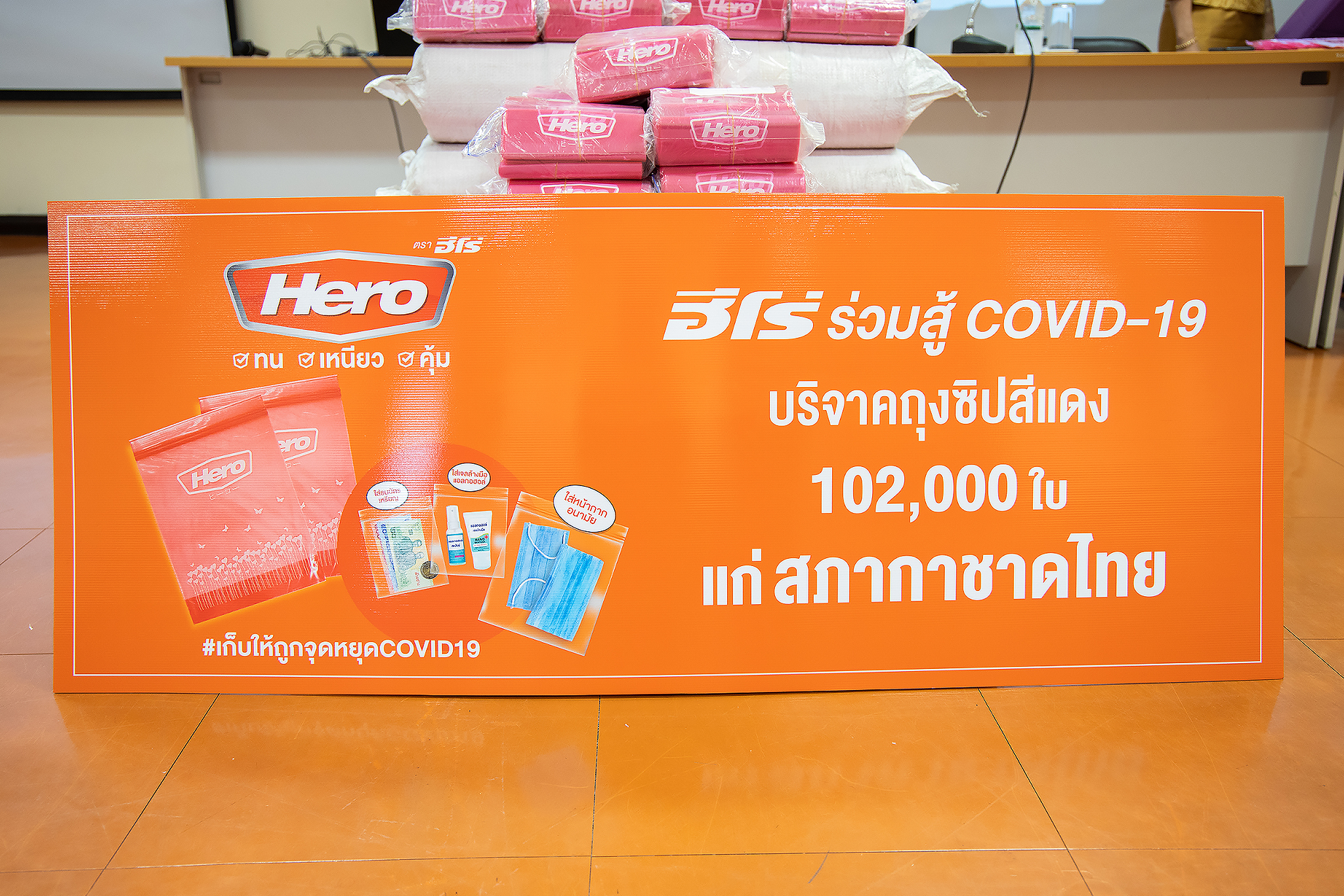 The Ministry of Labour joined HERO brand to donate 204,000 plastic zipper bags to the Thai Red Cross Society, to be distributed to the public to pack cloth masks to prevent the spread of the COVID-19 virus.