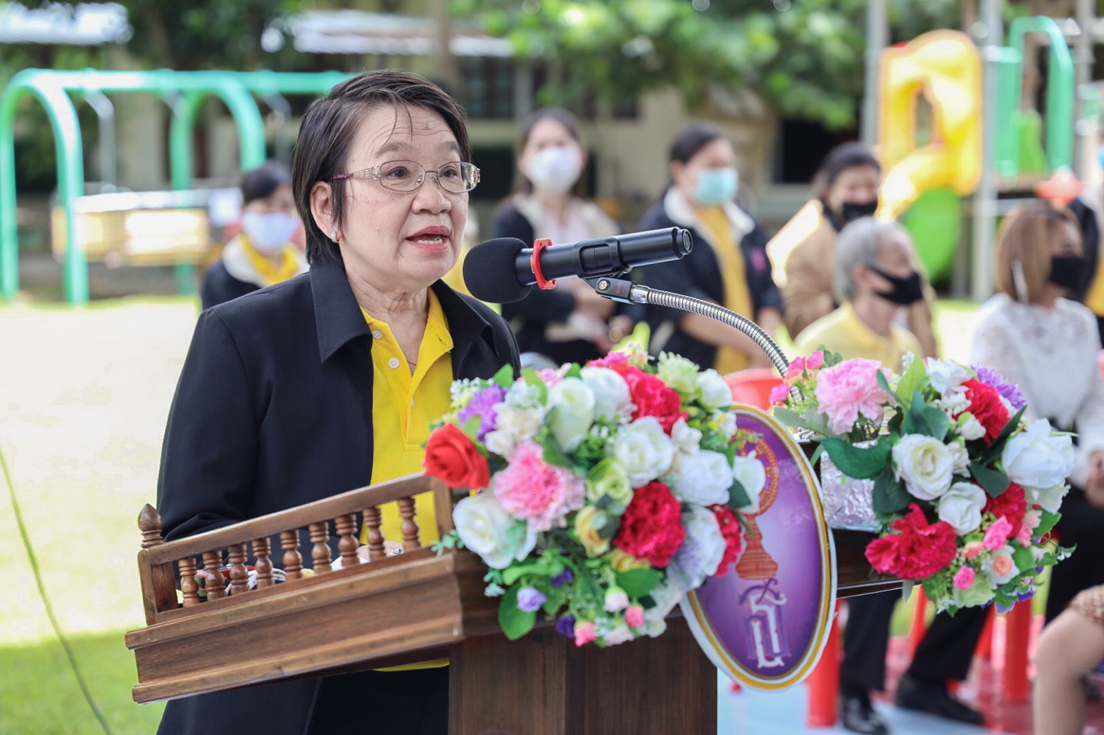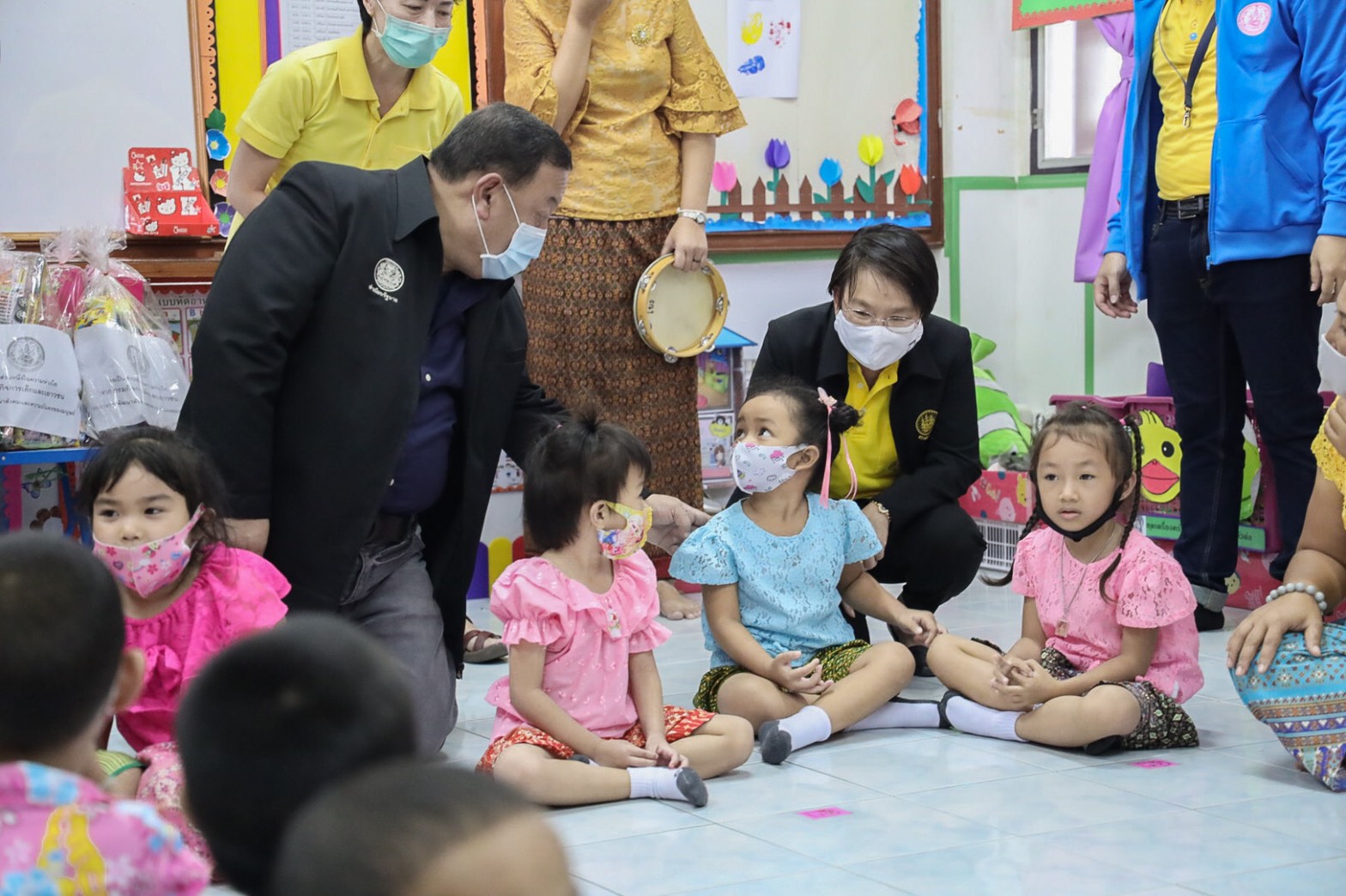 Mrs. Theanrat said further that the Sirindhorn Rajawittayalai Campus Child Center under the royal patronage is a project based on the royal initiatives of HRH Princess Maha Chakri Sirindhorn together with Phra Suthammathibadi, Assistant Abbot of Bowonniwet Vihara Temple and Director of the Sirindhorn Rajavidhaya Foundation under royal patronage. The foundation is under the management of the Department of Labour Protection and Welfare, the Ministry of Labour, in collaboration with the Sirindhorn Ratchawittayalai Foundation. There are two locations under royal patronage, which are the Sirindhorn Rajawittayalai Campus Child Center under royal patronage in Nakhon Pathom and Samut Prakarn. Both centers are open to taking care of preschool children from 2 and a half years to 6 years. Initially, the center looked after children of workers but has now opened to take care of children of the general public as well.