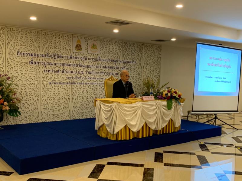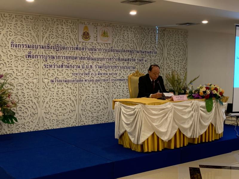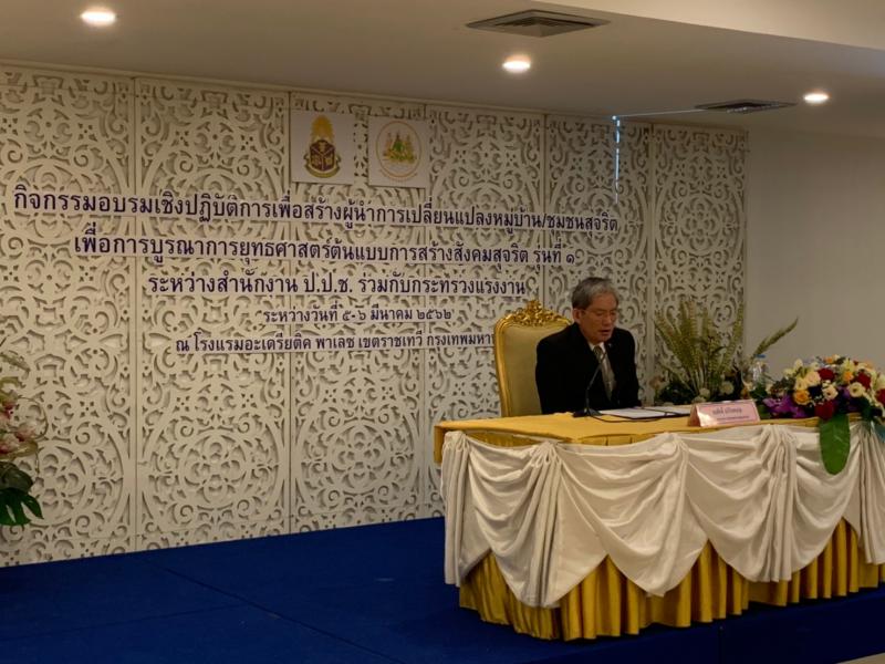 On March 5, 2019, the Ministry of Labour’s Inspector-General Mr. Somsak Apiwantanakul represented the Ministry of Labour in welcoming participants in the workshop to create village/community change leaders to integrate the strategic model on the creation of an honest society for the first batch of participants. The event took place between March 5-6, 2019, at the Adriatic Palace Hotel, Bangkok, a joint effort between the NACC Office and the Ministry of Labour. NACC Director, Mr. Narong Rathamarit gave an opening speech and NLA member and former NACC Commissioner, Mr. Klanarong Chantik spoke about current corruption in Thai society. Participants included 150 labour volunteers and public sector networks who passed the Ministry of Labour’s anti-corruption training.
