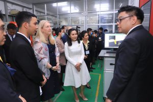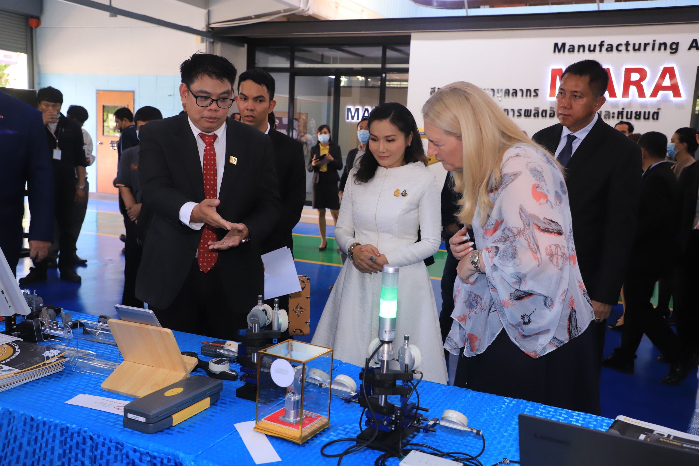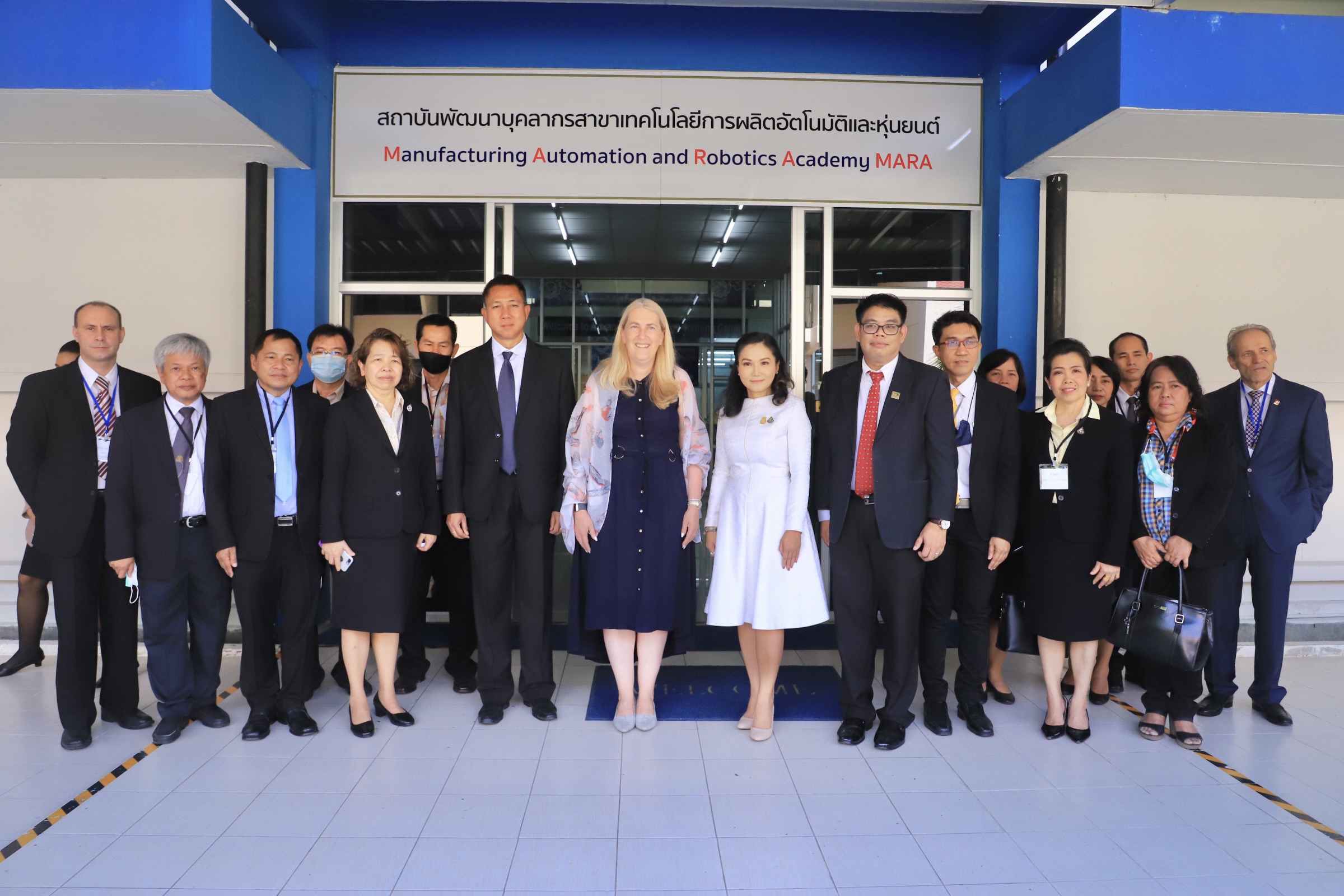 On November 25, 2020, Deputy Labour Minister Prof. Narumon Pinyosinwat commenced the demonstration activity on automation with measuring tools and robots to support and promote cooperation between the public and private sectors in skill development and promote good relations between the two countries. The occasion took place with H.E. Mrs. Helene Budliger Artieda, Ambassador of the Swiss Federation to Thailand, Mr.Pierre Hagman, Head of Delegation to the Embassy, Mr. President of the Swiss-Thai Chamber of Commerce, the Department of Skill Development’s Director-General, representatives from Max Value Technology Co., Ltd., representative of Unical Works Co., Ltd. and representatives of the Thai Subcontracting Promotion Association also participating in the event, which took place at the Manufacturing Automation and Robotics Academy (MARA) in Chonburi.