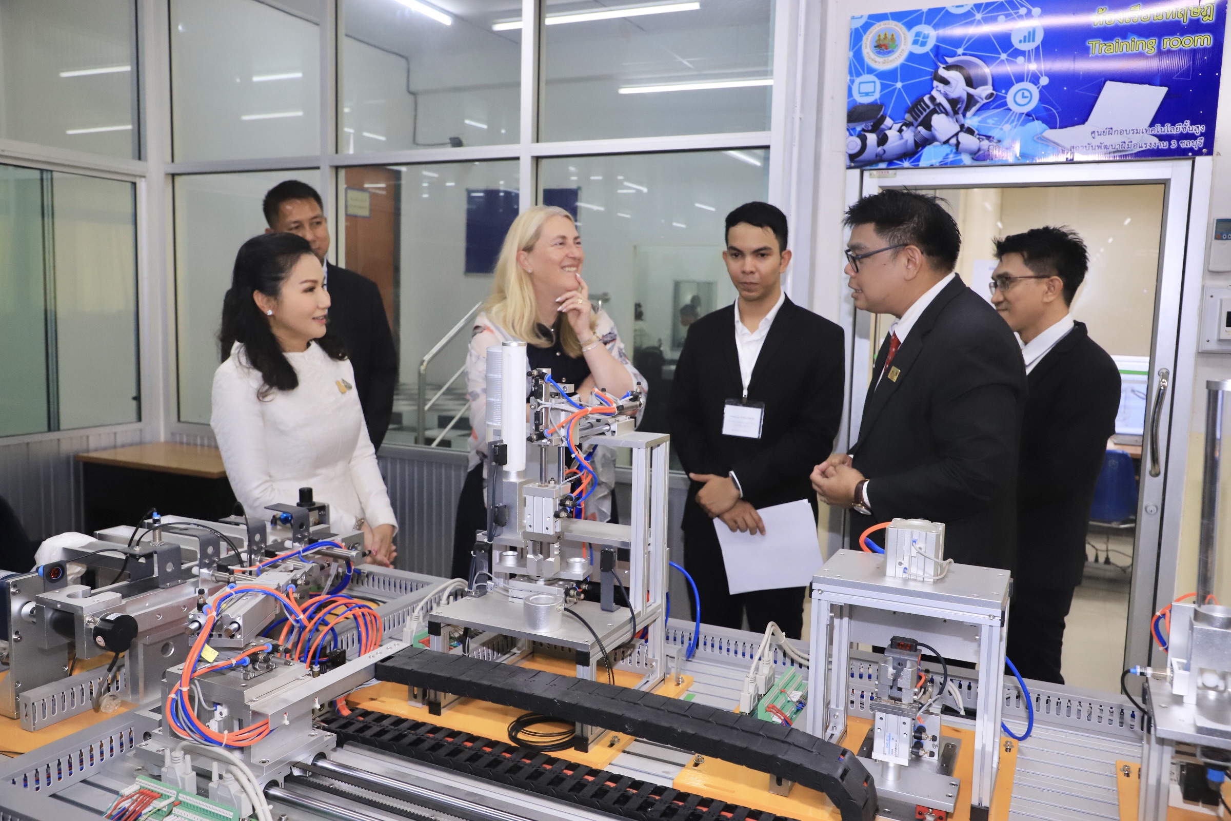 The Deputy Labour Minister and the Ambassador of the Swiss Federation in Thailand commenced a demonstration on automation with measuring tools and robots to promote cooperation between the public and private sectors and international relations.