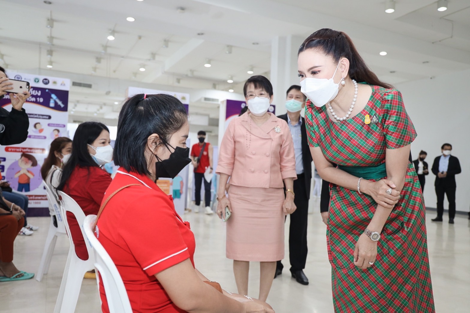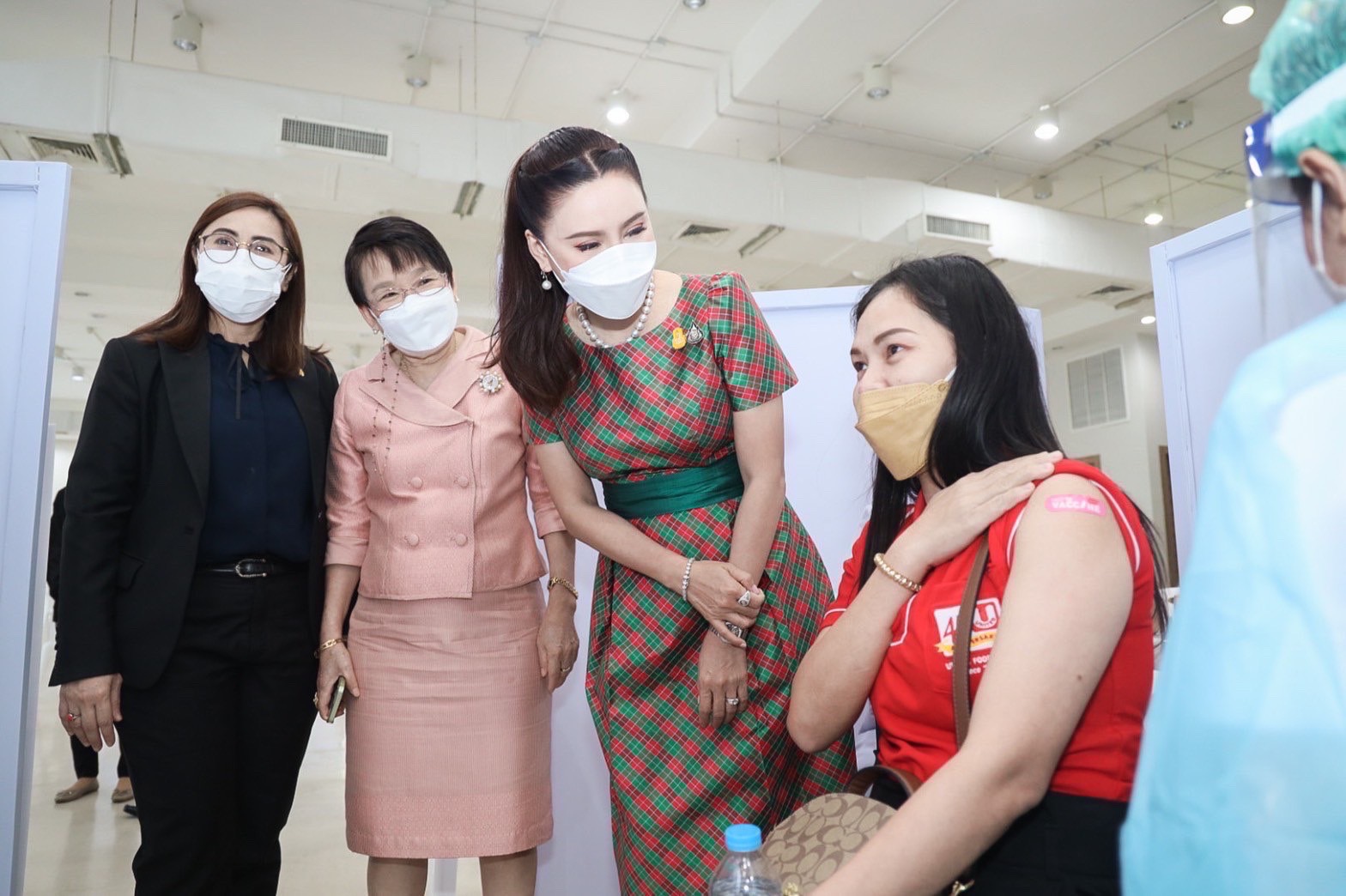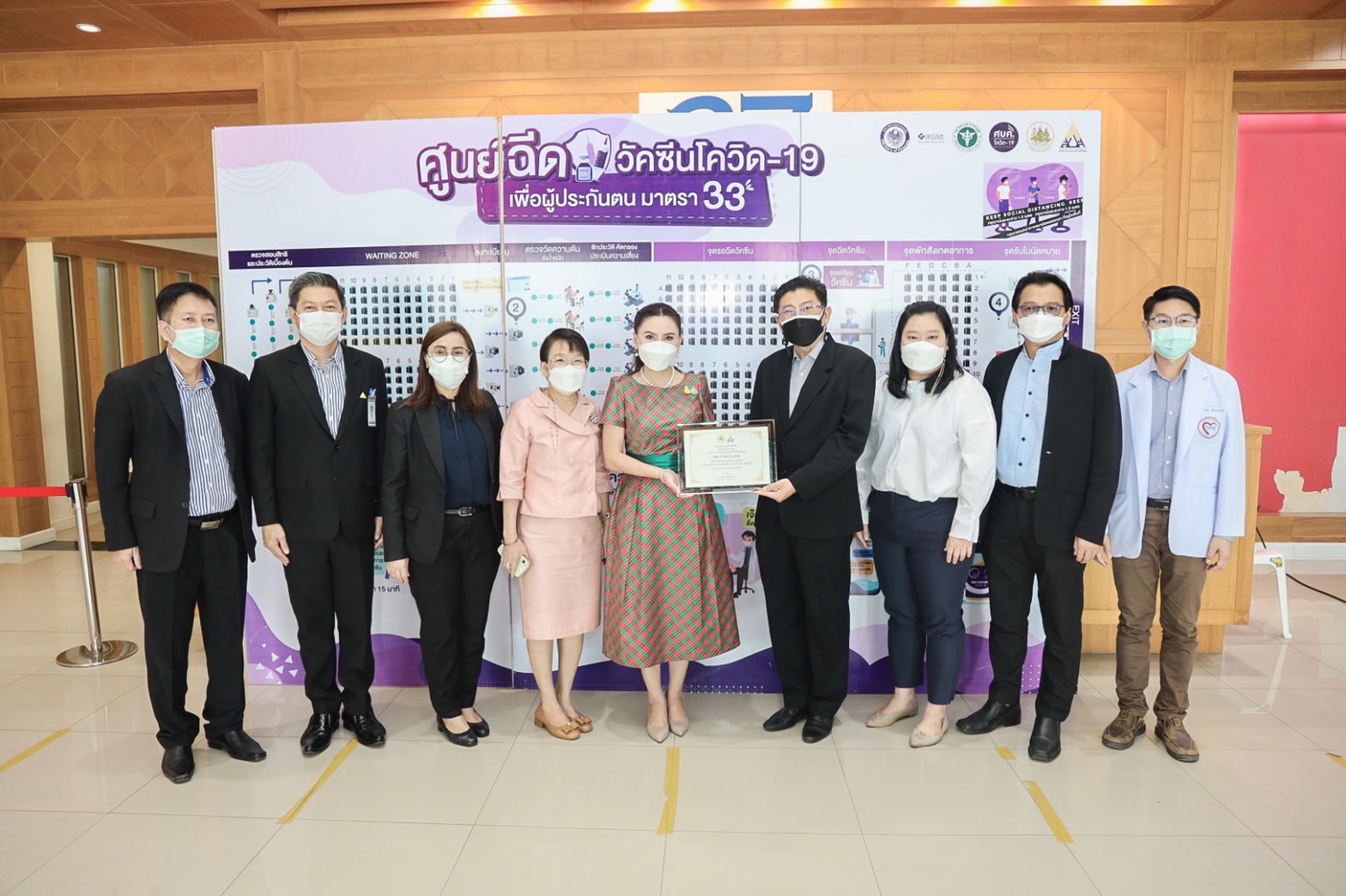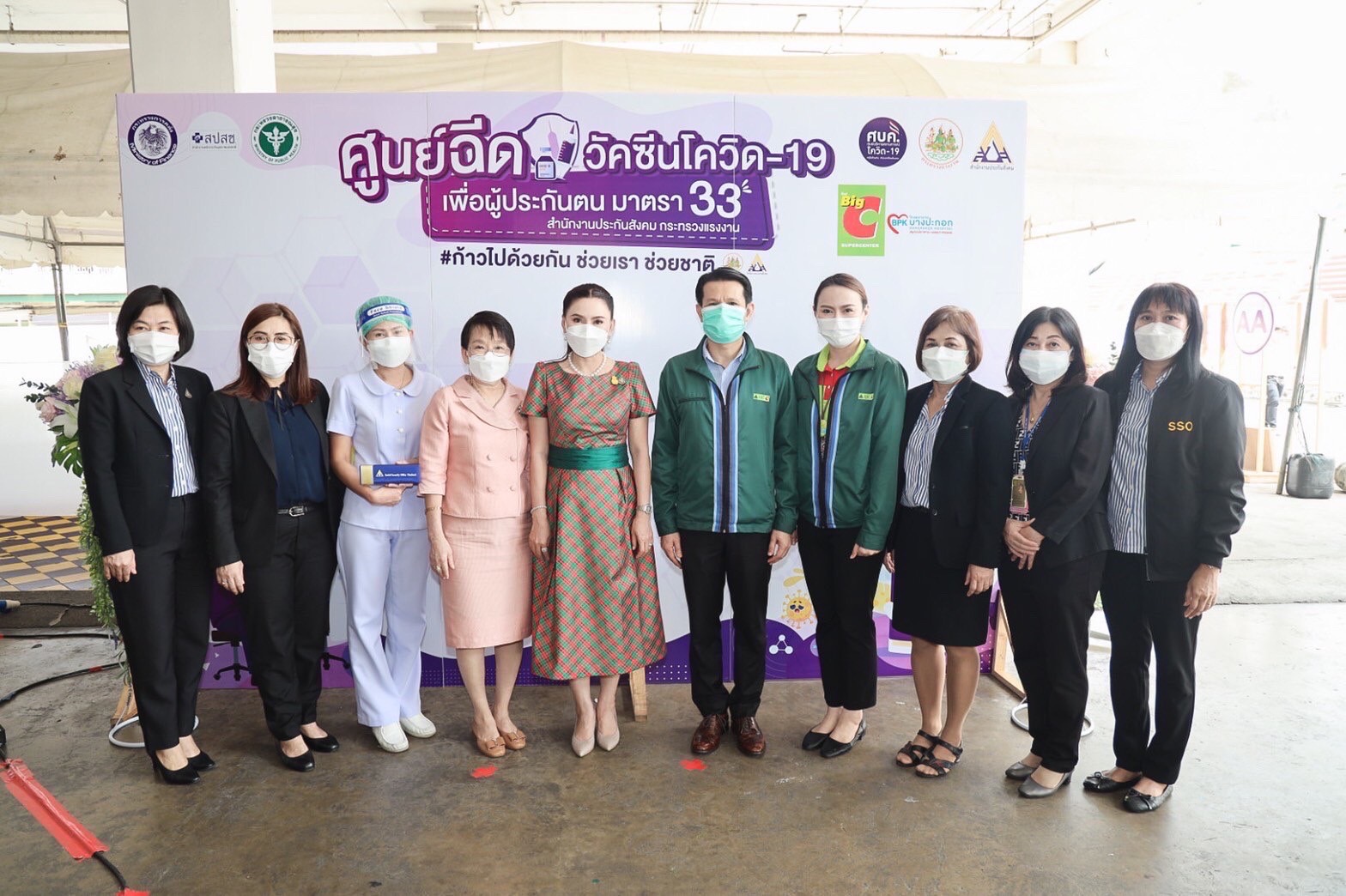“Labour Minister Mr. Suchart Chomklin assigned my team and me to visit the vaccination services for Section 33 insured persons and to present a plaque of appreciation to thank the private sector and encourage medical personnel providing COVID-19 vaccinations to Section 33 insured persons, which is one of the Ministry of Labour’s measures in prevention and treatment, following government policy to control the spread of COVID-19 and build immunity among workers for business to move forward,” concluded Mrs. Thiwalrat.