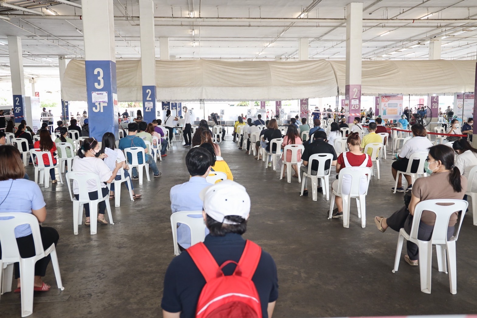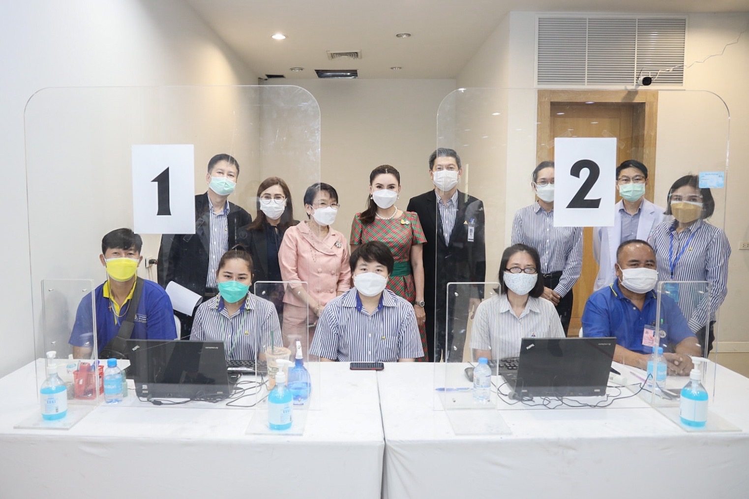 The vaccination service facility at Big C Supercenter Parking Lot, Dao Khanong Branch, is under the responsibility of the Bangkok Social Security Office Area 5. A total of 45,477 people were vaccinated with the first dose, and the facility is currently providing the second dose to insured persons. It can vaccinate 1,400 people daily. Bangpakok Samut Prakan Hospital is the medical facility providing the services.