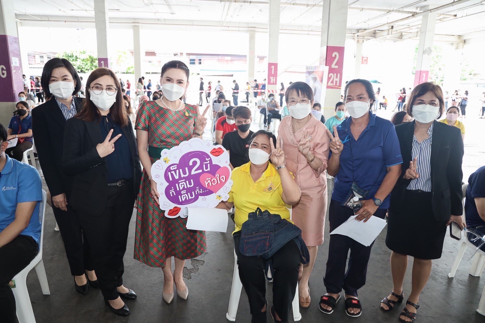 On September 6, 2021, Labour Minister Mr. Suchart Chomklin assigned the Labour Minister’s Advisor, Mrs. Thiwalrat Angkinan, to visit the area to present a certificate of appreciation to the private sector for their contributions in providing facilities and hospitals in the social security network for supporting medical personnel in the COVID-19 vaccinations to Section 33 insured persons. The Ministry of Labour’s Spokesperson (on politics), Mrs. Theanrat Nawamawat, and the Ministry of Labour’s Inspector-General, Ms. Bubpha Rueangsud, joined the occasion at 27 Engineering Co., Ltd., Bang Khun Thien District and the parking lot at Big C Dao Khanong, Thonburi District, Bangkok. Mrs. Thiwalrat said that the government under the leadership of Prime Minister and Minister of Defense General Prayuth Chan-ocha, and Deputy Prime Minister General Prawit Wongsuwan, who oversees the Ministry of Labour, is concerned about the workforce and the general public amid the COVID-19 situation, promoting vaccinations as a national agenda. The Labour Minister assigned the Social Security Office to work with the Ministry of Interior, the Bangkok Metropolitan Administration, the Ministry of Public Health by the National Health Security Office (NHSO), the Ministry of Finance by Krung Thai Bank, and public and private social security networked hospitals to provide COVID-19 vaccinations to insured persons. The initiative aims to control the outbreak’s spread from spreading to a wide area in factories and establishments.
