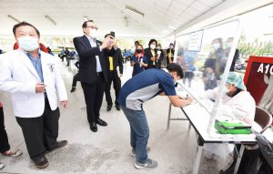 On January 29, 2021, Labour Minister Mr. Suchart Chomklin assigned Assistant to the Labour Minister Mr. Surachai Chaitrakulthong to visit Rayong to monitor progress on the proactive Covid-19 screening in workplaces for insured persons under Section 33, following the Labour Minister’s policy. The Labour Minister’s Assistant said that the