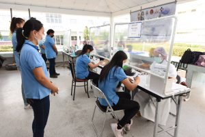 Mr. Surachai continued that the proactive Covid-19 screening in the workplace follows the Labour Minister’s policy to prevent and control infectious diseases from spreading to communities, places of work, or major tourist attractions, including restaurants, stores, and shops. This will also alleviate the Ministry of Public Health’s workload in monitoring and investigating diseases, simultaneously boosting the confidence among investors, private companies, tourists, and the public, to have confidence in traveling around Rayong safely and free from Covid-19. There are proactive Covid-19 screening measures in all dimensions. “The proactive Covid-19 screening today has received good cooperation from workplaces, which is considered to be an integration of collaboration between the Rayong Social Security Office and hospitals in the network, providing Covid-19 screening for 530 insured persons under Section 30. If the infection is detected, the insured person will enter the treatment process as determined by the Ministry of Public Health,” concluded Mr. Surachai.
