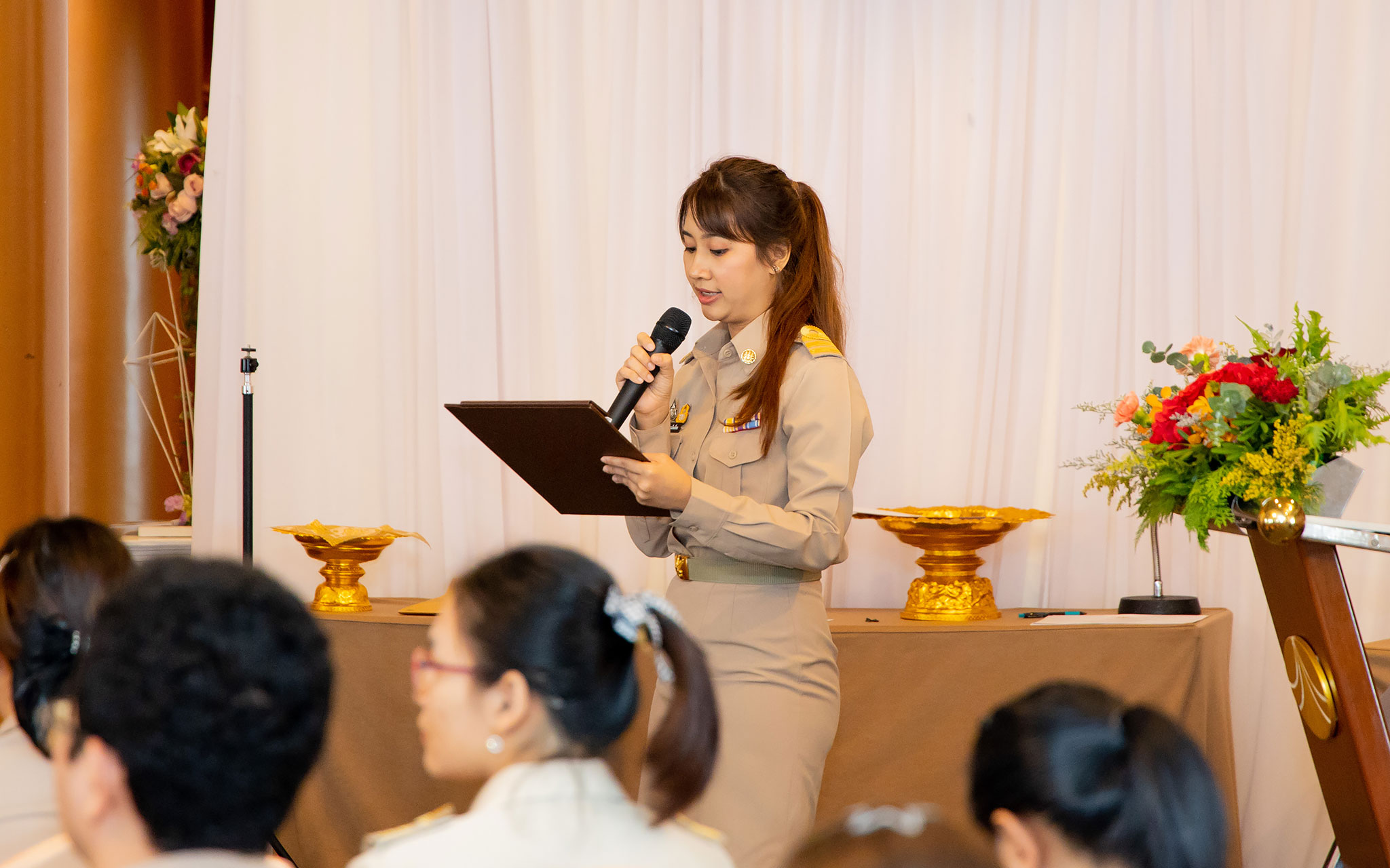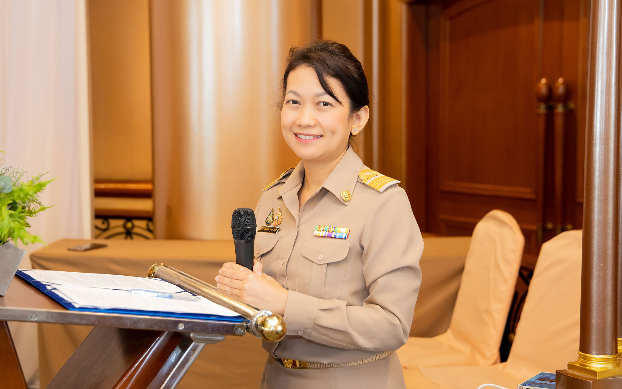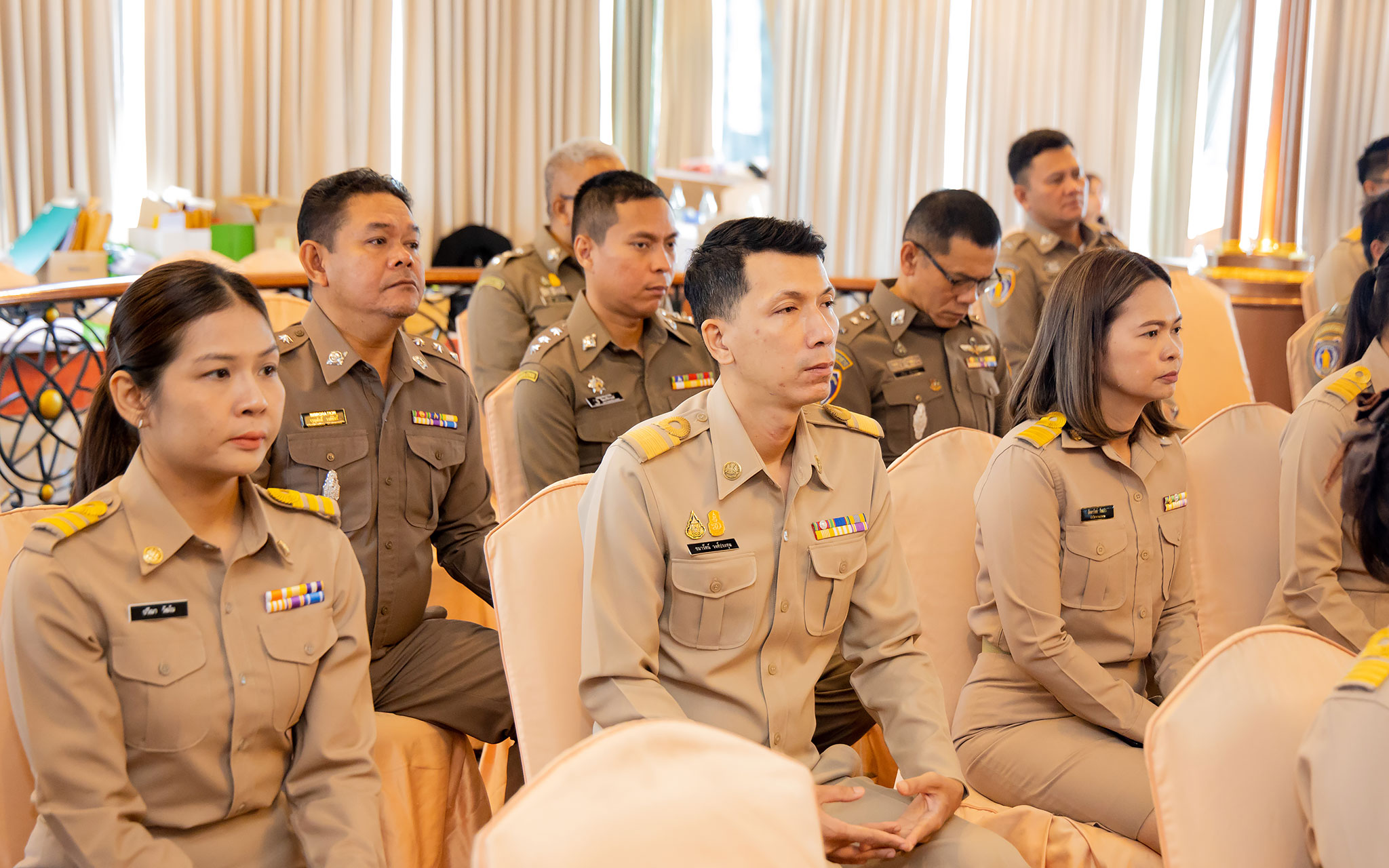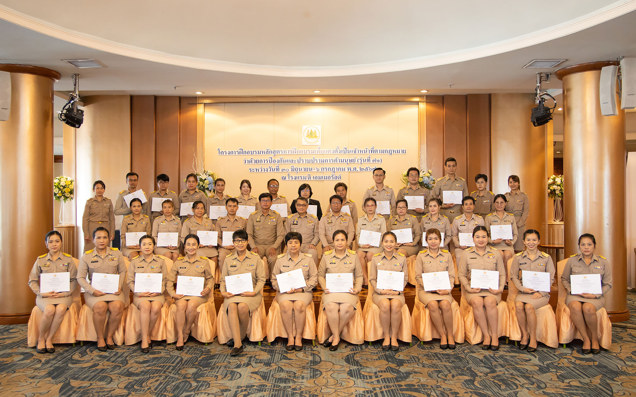 On July 6, 2024, at 10.30 hours, the Permanent Secretary of Labour, Mr. Pairoj Chotikasathien, assigned the Deputy Permanent Secretary of Labour, Lieutenant Saroj Komkhai, to chair the closing of the training program for the training course to appoint officials in accordance with the law on the prevention and suppression of human trafficking in the 2024 fiscal year, along with presenting certificates to the trainees. The event aims to equip participants with knowledge and understanding of policies to prevent and suppress human trafficking and forced labour or services and to assist victims of human trafficking and forced labour or services in accordance with legal and international principles. It also strives to provide participants with the qualifications according to the Ministerial Regulations specifying the qualifications for persons to be appointed as officials under the Prevention and Suppression of Human Trafficking Act B.E. 2551 and its amendments. The Director of the Office of the Secretariat of the Labour Trafficking Prevention Command Center, Ms. Sopana Boon-Long, reported on the results of the training. Senior executives of the Ministry of Labour, along with the trainees, joined in the welcome at The Emerald Hotel, Ratchadaphisek Road, Din Daeng District, Bangkok.