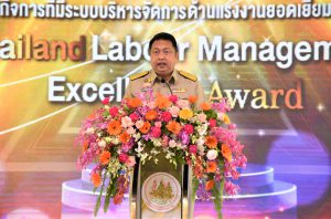 Labour Minister Mr. Suchart Chomklin gave a speech after presiding over the Thailand Labour Management Excellence Award 2020 on Monday, September 21, 2020, at the Swissotel Bangkok Ratchada Hotel, Huay Kwang, Bangkok. He said that the Ministry of Labour has an important policy to push and raise the level of labour management in the workplace to meet the standards that aim for decent work, by having social responsibility on labour that is in line with international labour standards. This is one of the key conditions of the world trade arena today, which will result in the stability of workers to have a better quality of life, building investor confidence. The awarding of the Thailand Labour Management Excellence Award 2020 is awarded to establishments that are committed to creating excellent labour management systems in accordance with the organization’s standards in three areas, including labour relations and welfare, occupational safety, health and working environment, and Thai labour standards. The Ministry of Labour requested a royal trophy from Her Royal Highness Princess Maha Chakri Sirindhorn for 3 awards, divided into large, medium, and small-sized organizations. The award will honour the organizations’ efforts and the shared pride of employers and employees, for realizing the importance of contributing to the quality of life for workers and creating a sense of social responsibility for the workplace. The awarded organizations will be a model for others, for the further development of the organization.