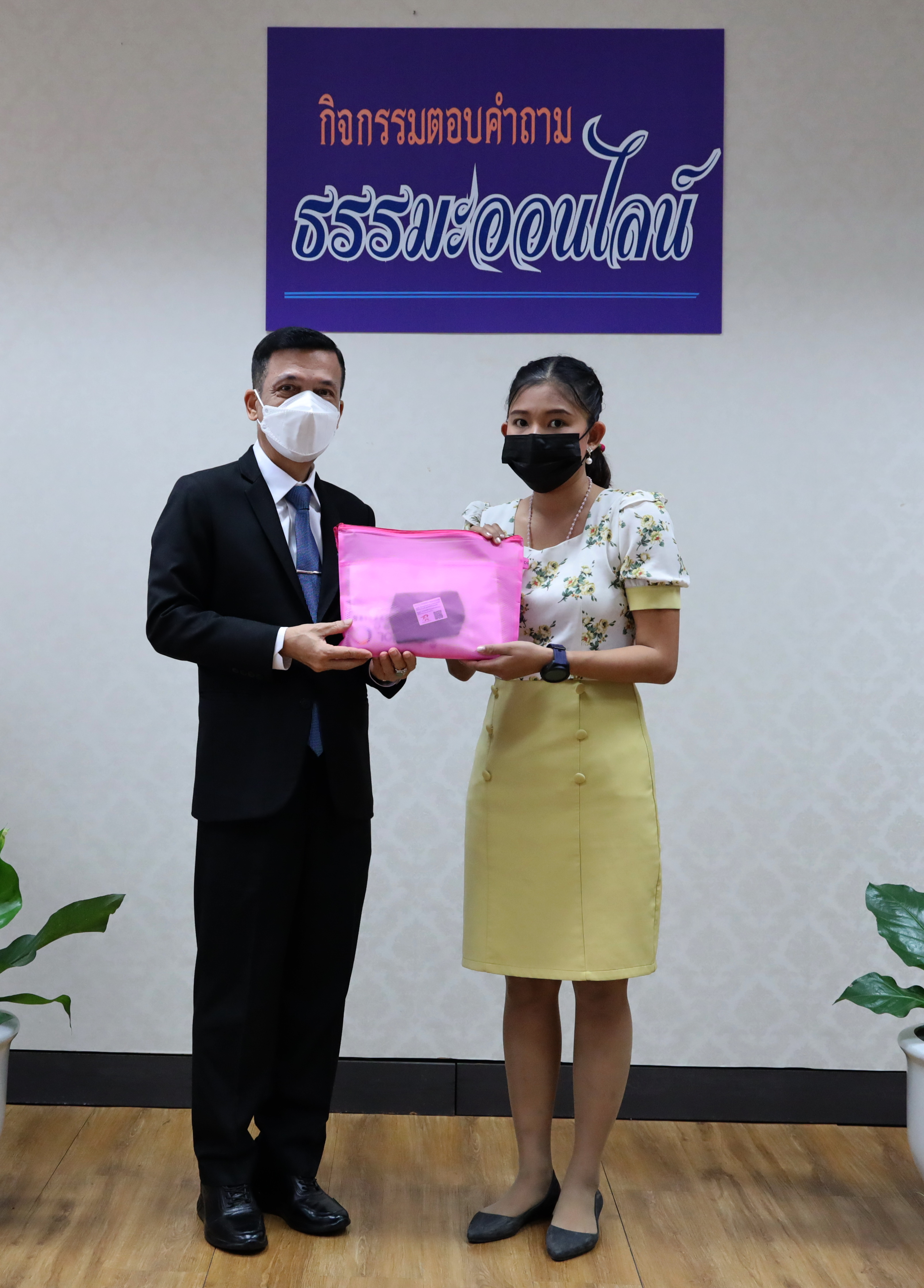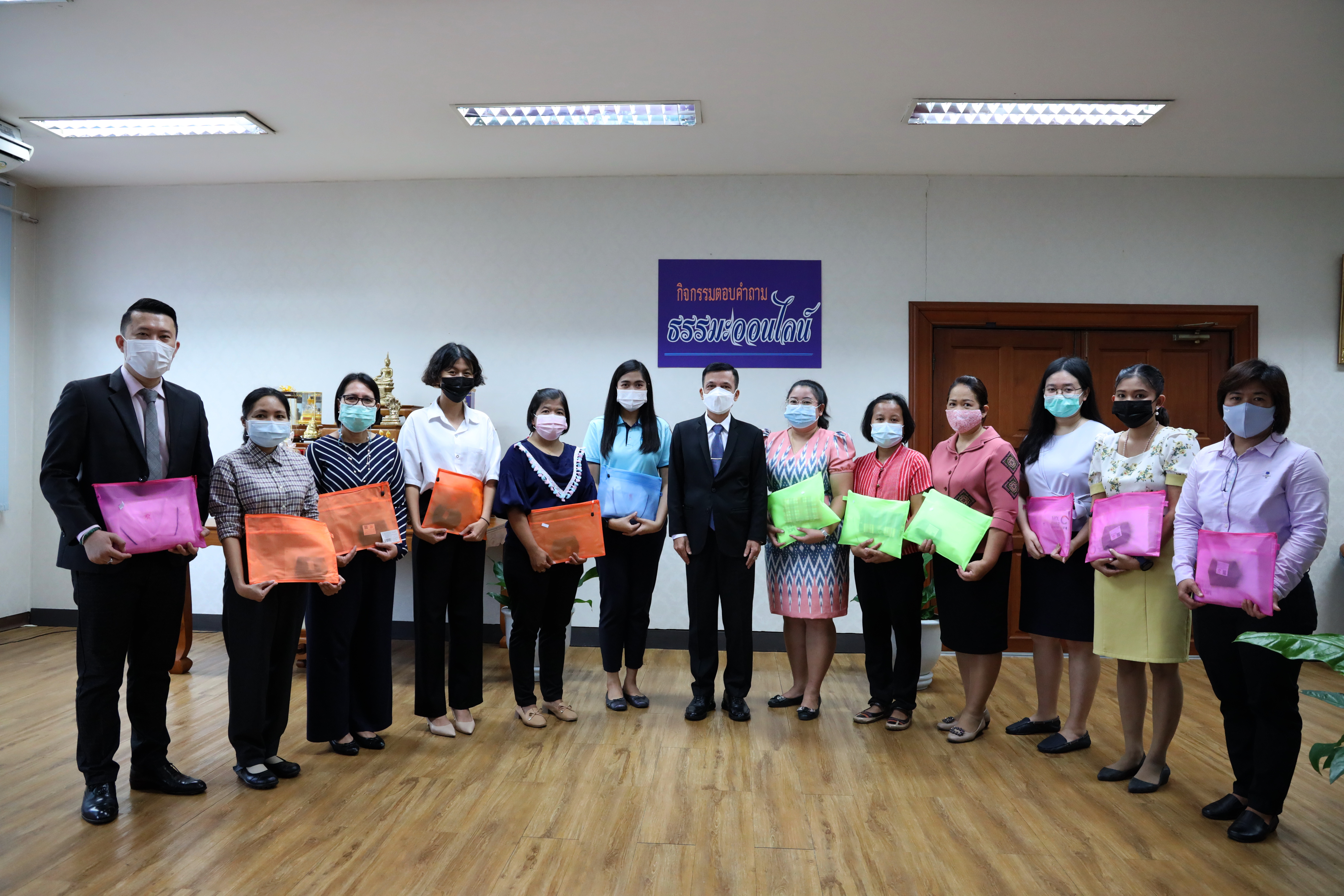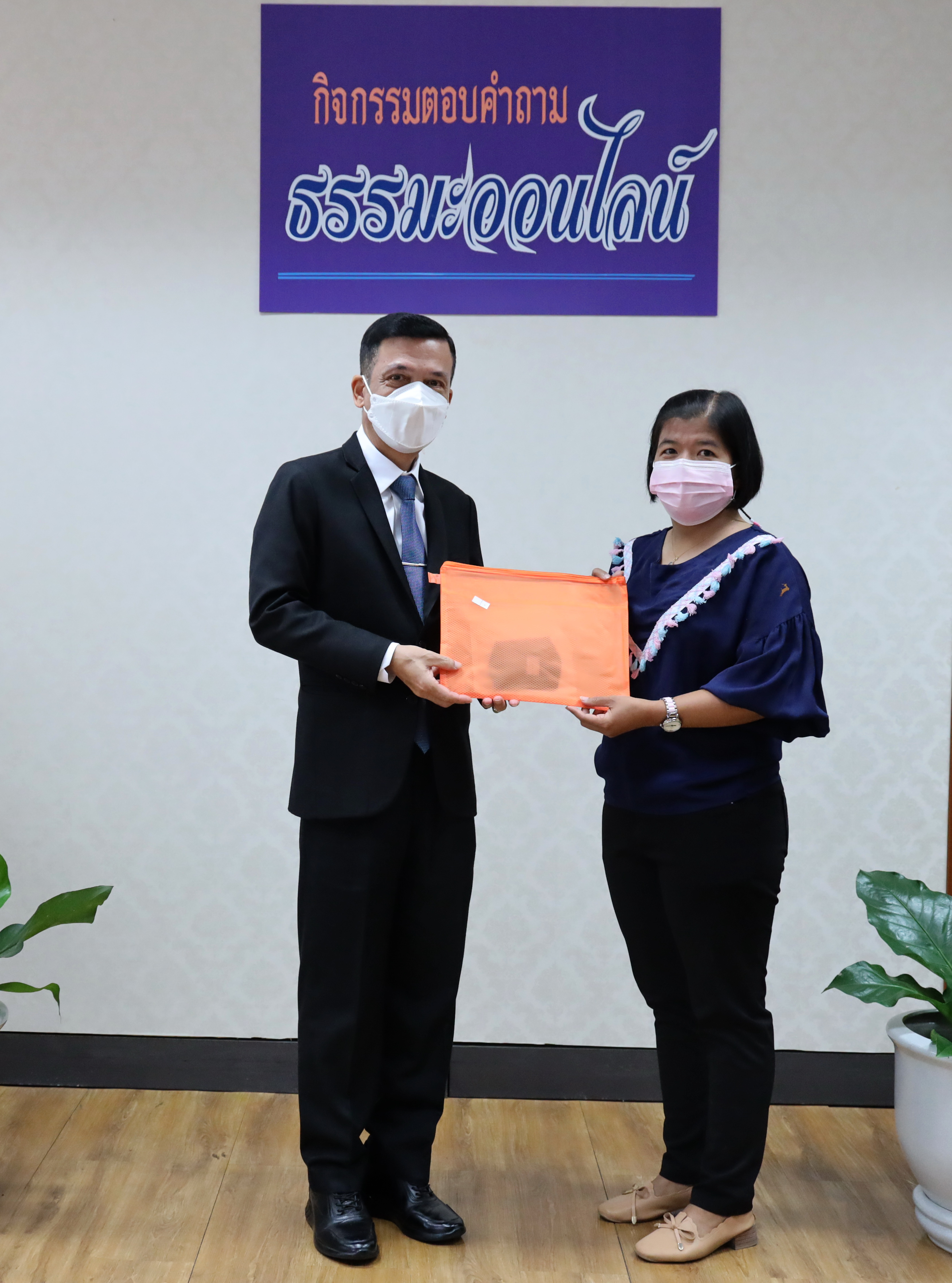 On March 2, 2021, at 09.00 hours, Deputy Permanent Secretary of Labour Mr. Niyom Songkaew presided over the online Dhamma quiz award ceremony to promote morality and ethics on Makha Bucha Day 2021. The occasion took place at the Deputy Permanent Secretary of Labour’s Office (Mr. Niyom Songkaew), 7th floor, Ministry of Labour. A total of108 people participated in this activity.