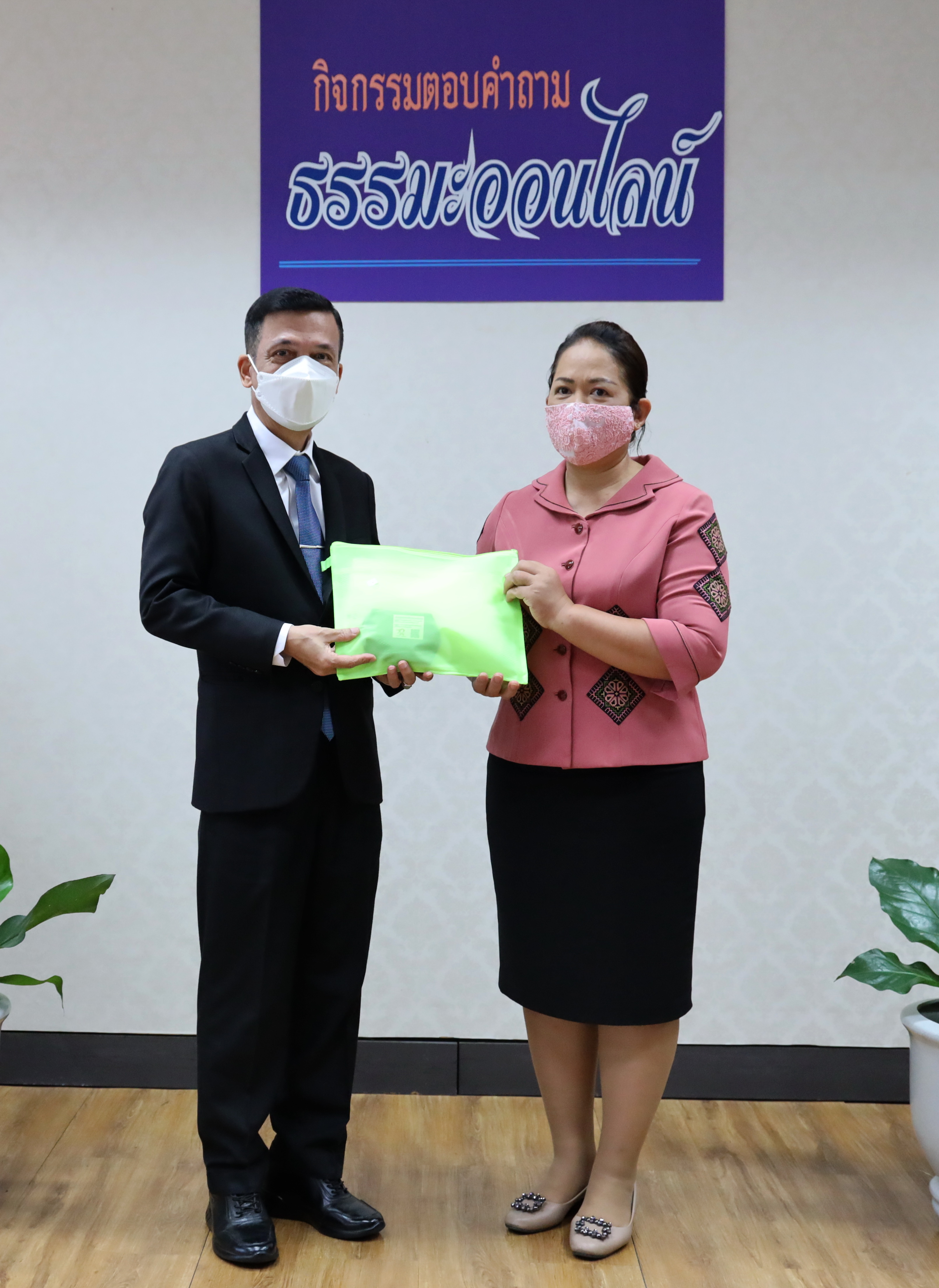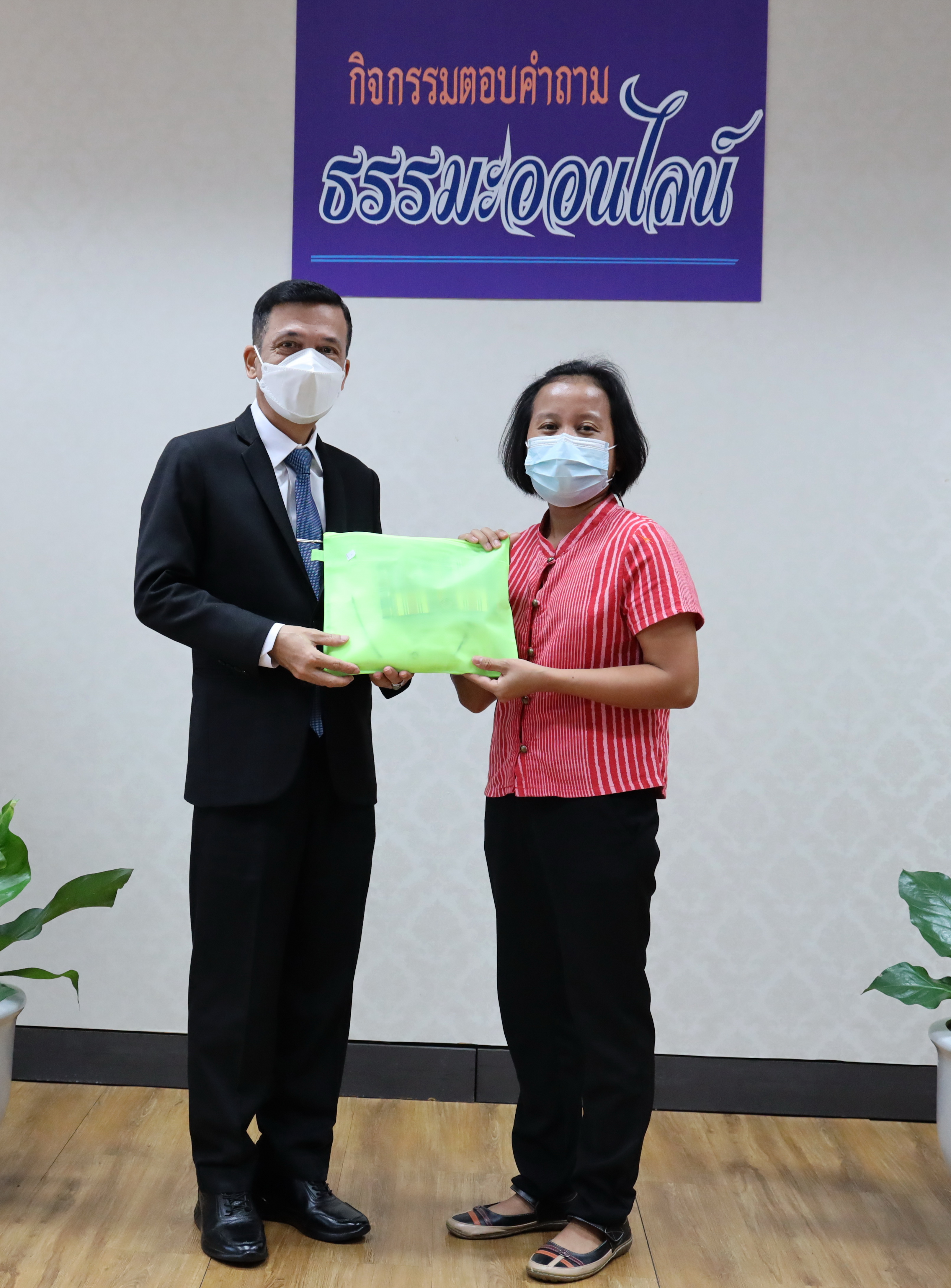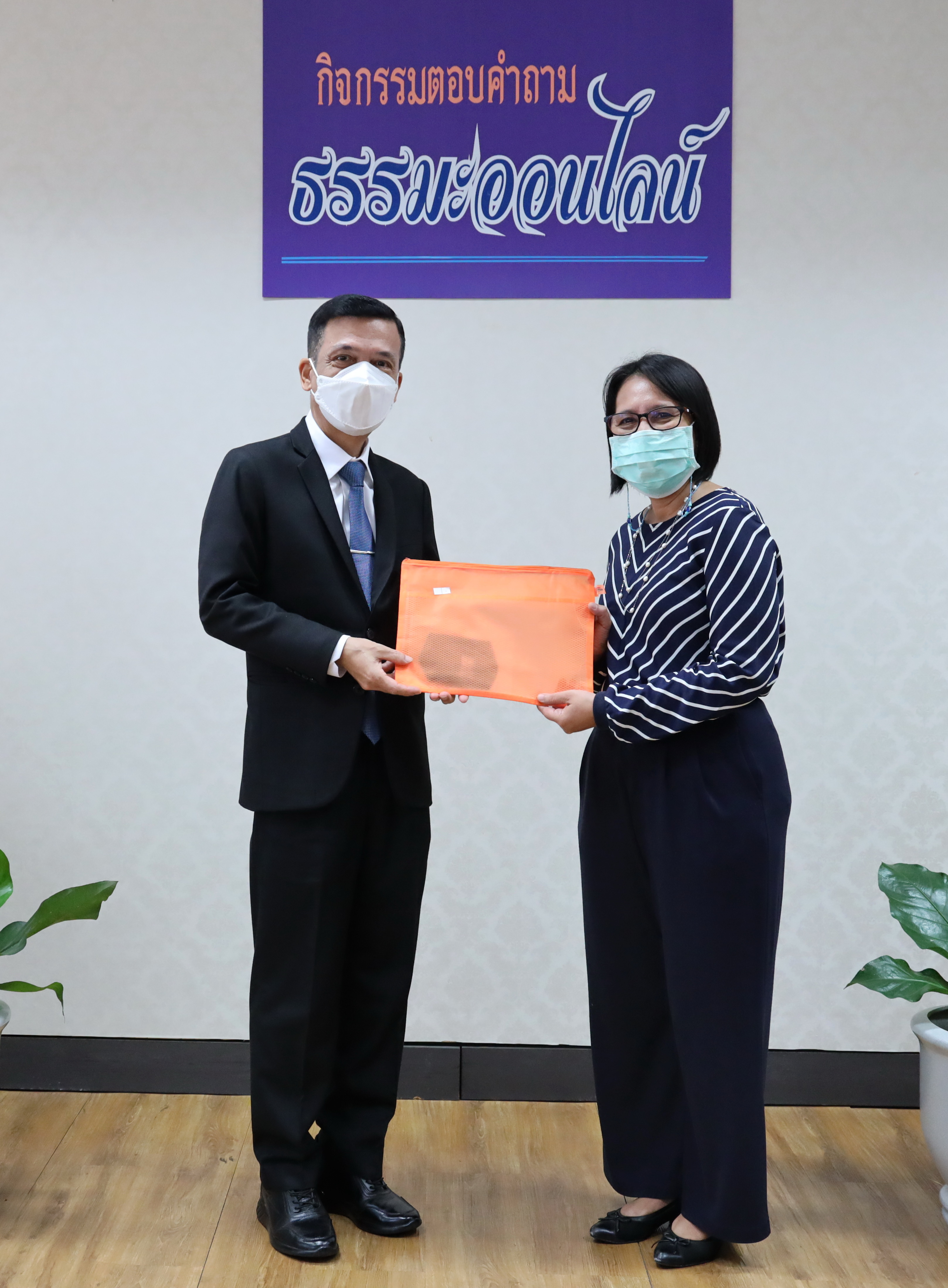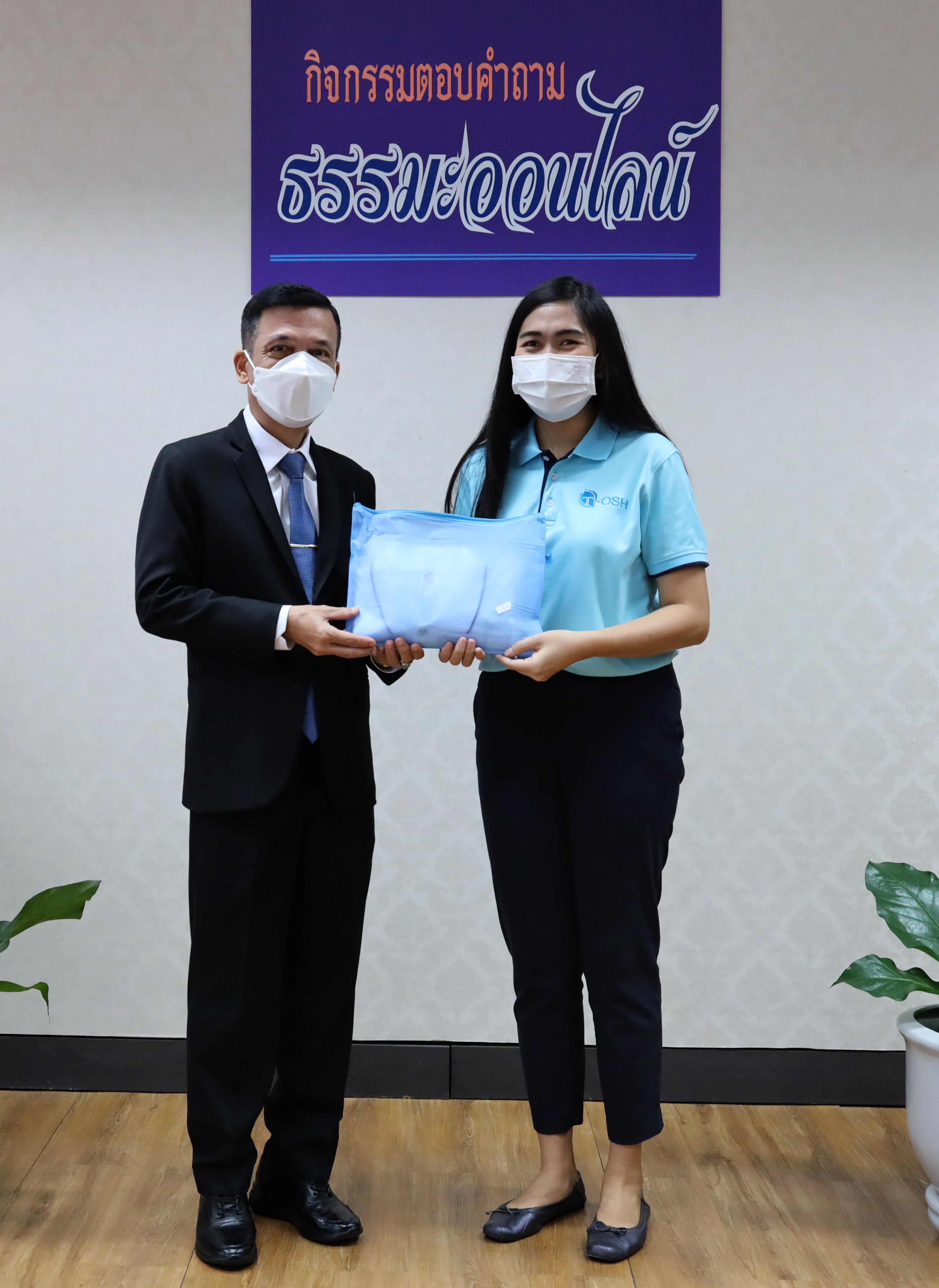 On March 2, 2021, at 09.00 hours, Deputy Permanent Secretary of Labour Mr. Niyom Songkaew presided over the online Dhamma quiz award ceremony to promote morality and ethics on Makha Bucha Day 2021. The occasion took place at the Deputy Permanent Secretary of Labour’s Office (Mr. Niyom Songkaew), 7th floor, Ministry of Labour. A total of108 people participated in this activity.